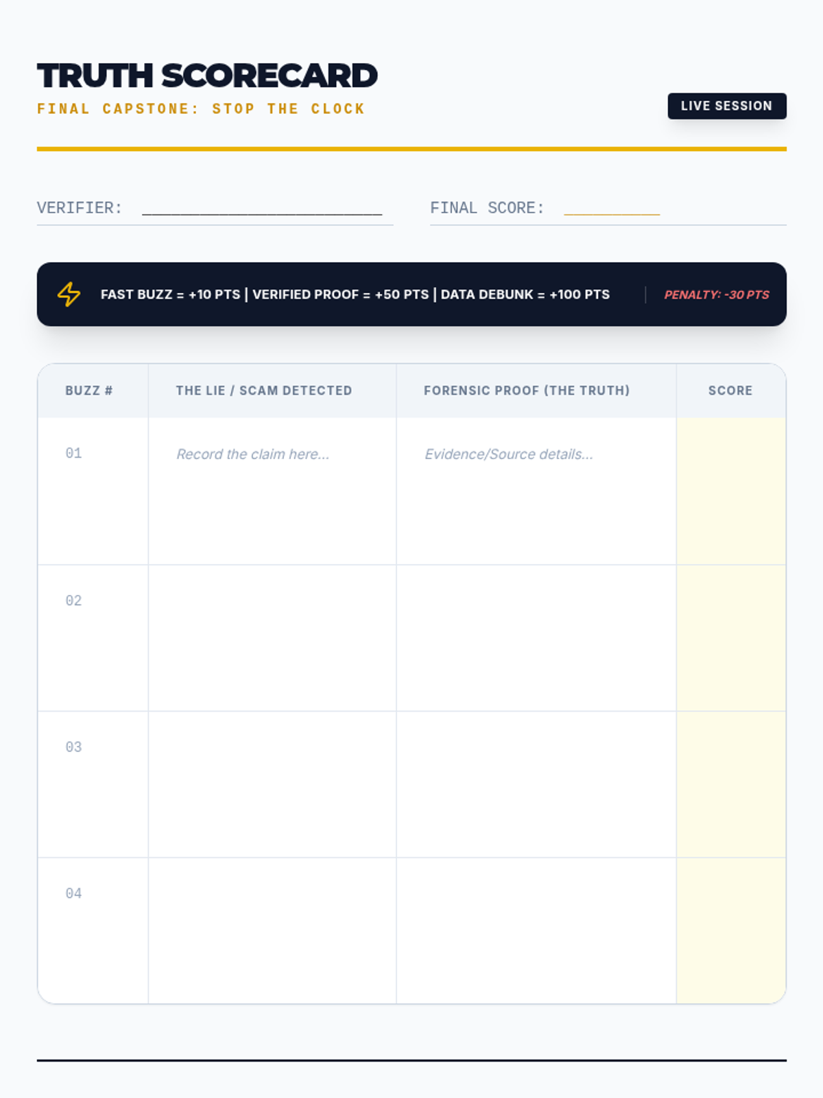 A high-intensity 11th-grade ELA sequence focused on digital verification, fact-checking, and real-time research skills for debate and public speaking. Students learn to navigate misinformation, analyze manipulated data, and verify claims under pressure using professional digital tools.