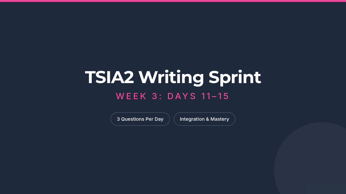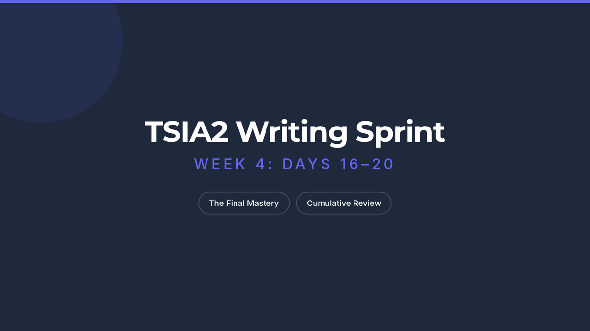A comprehensive 20-day intensive review for the TSIA2 Writing exam, covering punctuation, grammar, organizational revision, and sentence combining with daily drills and detailed explanations.