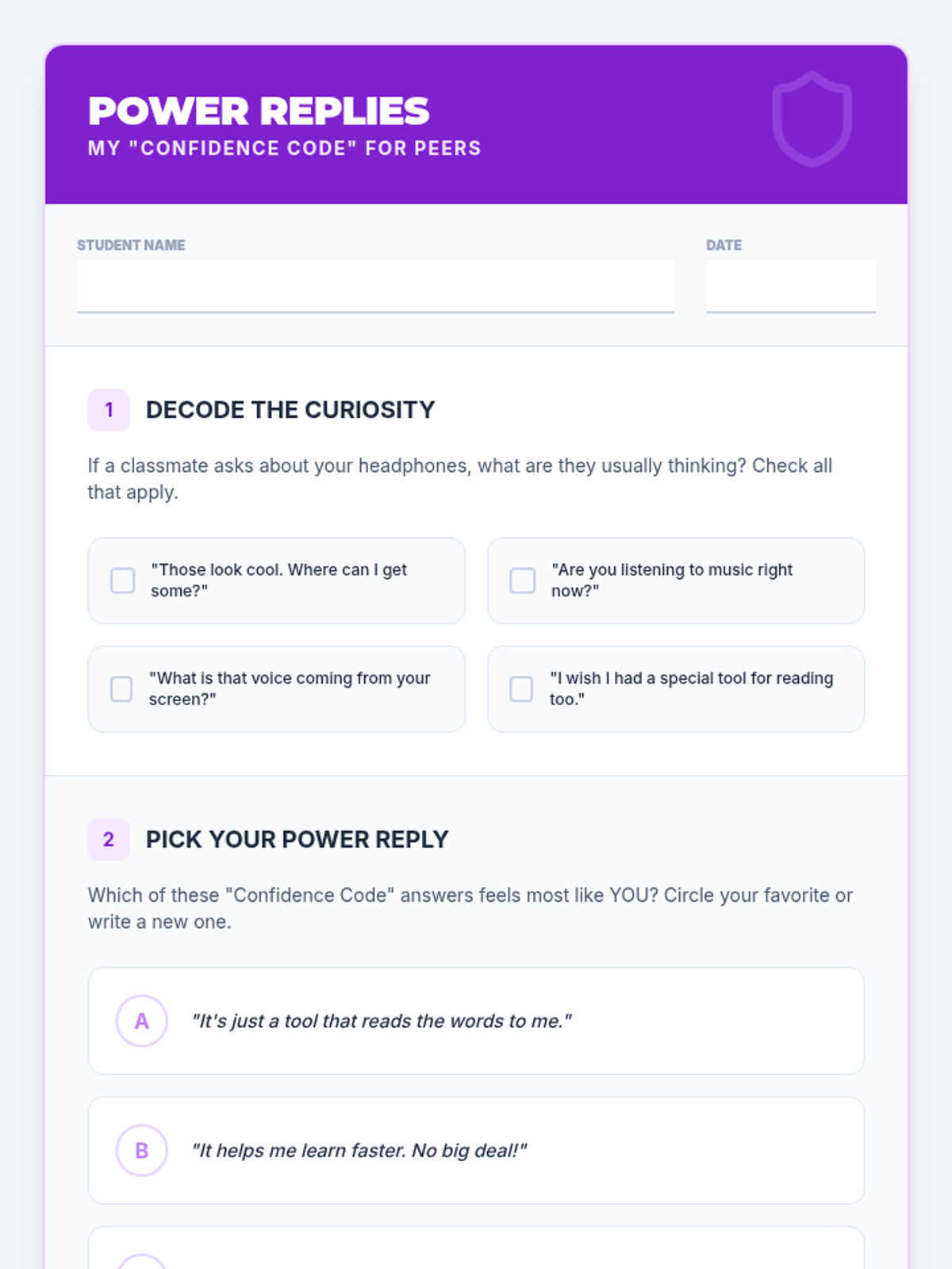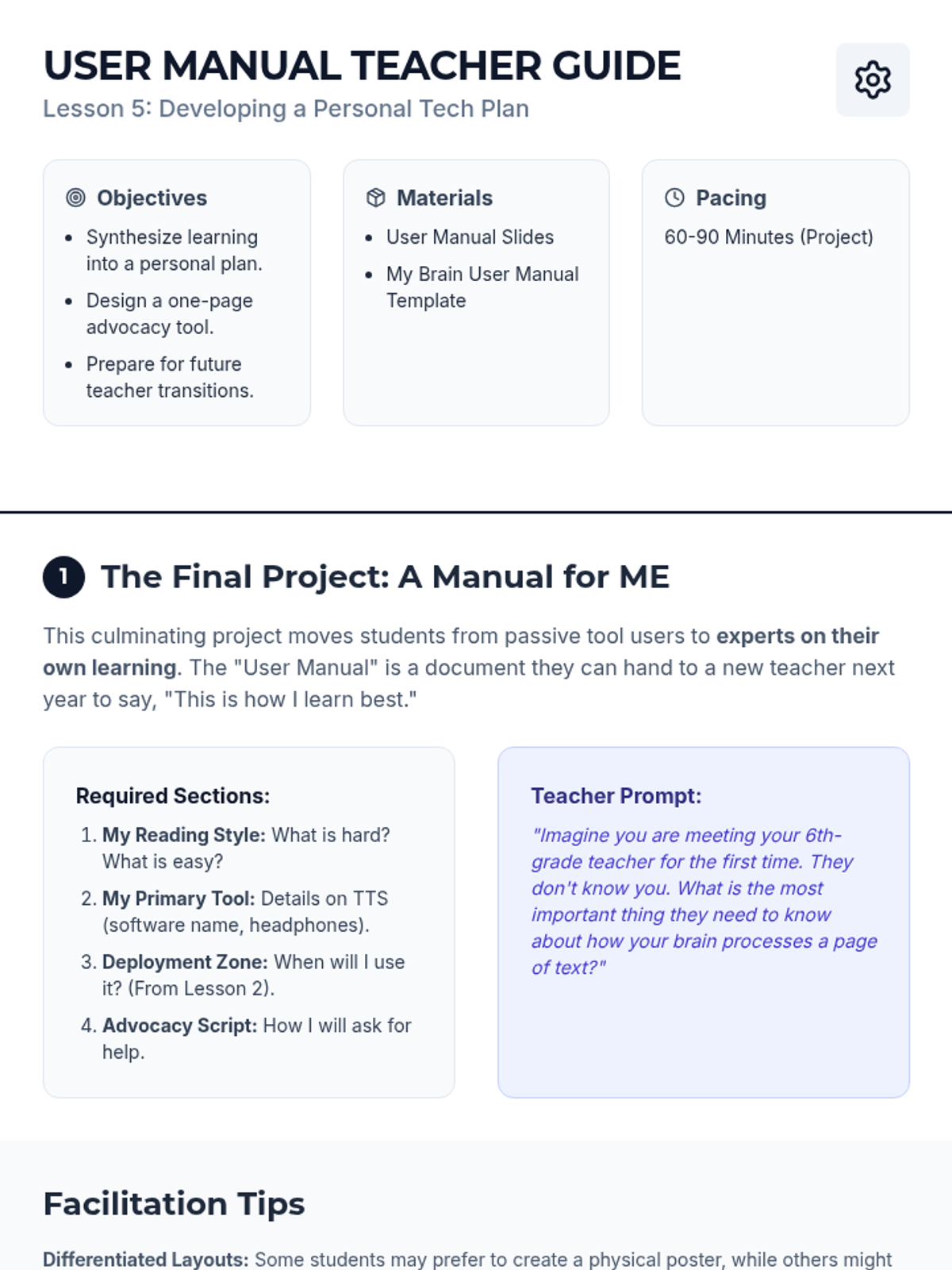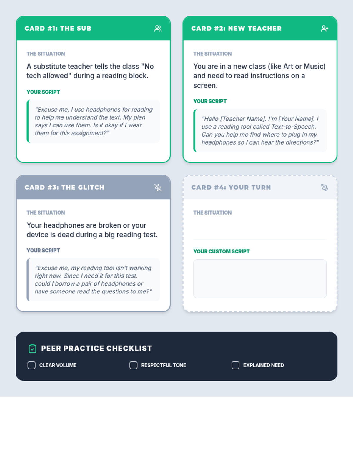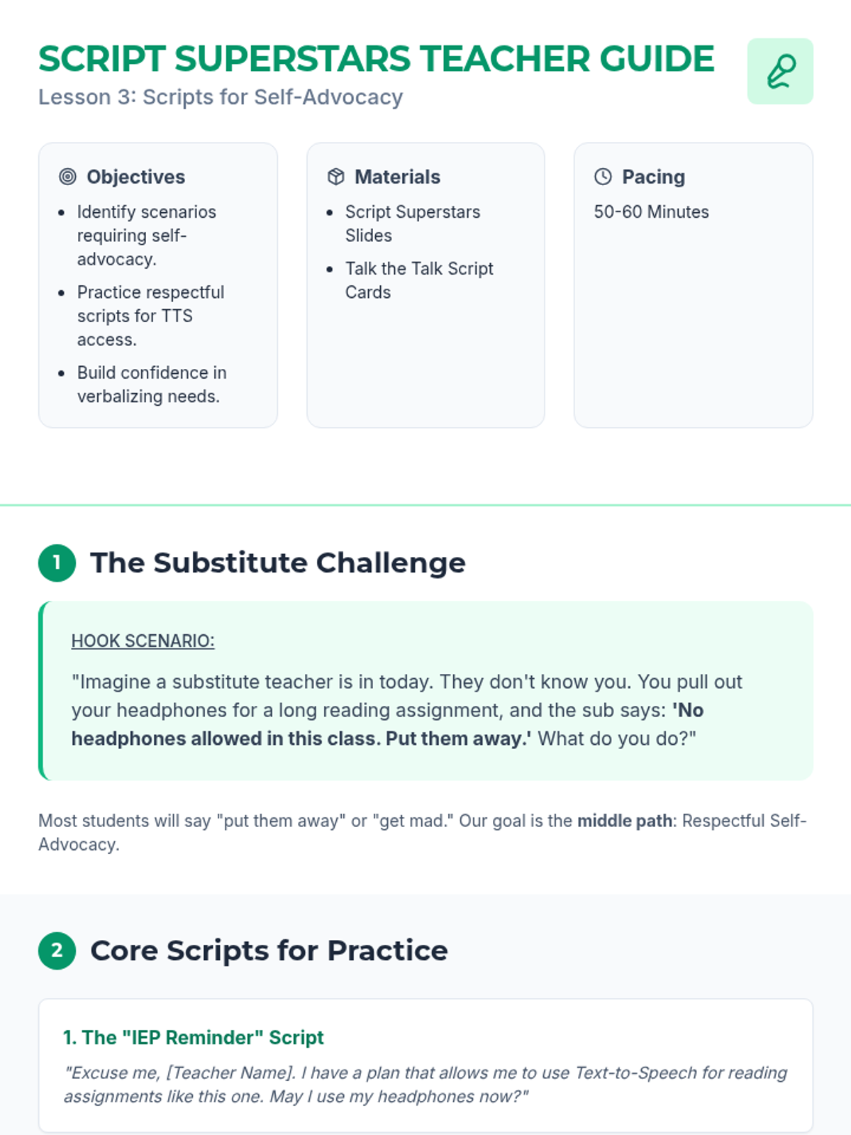 This sequence empowers 5th-grade students to understand, use, and advocate for Text-to-Speech (TTS) as a vital learning tool. It focuses on the distinction between fairness and sameness, identifying specific tasks where TTS is most effective, and building the social-emotional confidence to communicate needs to teachers and peers.