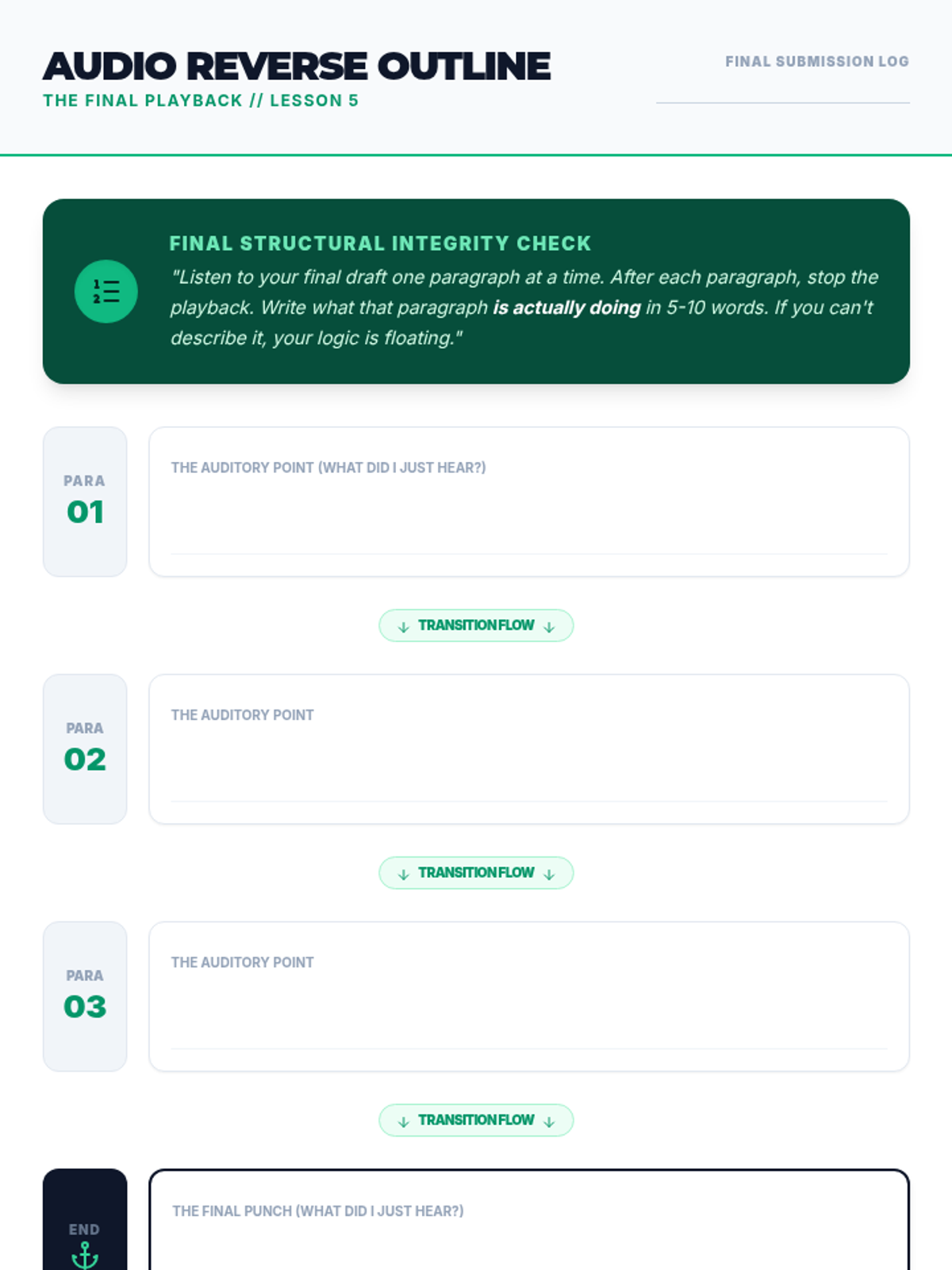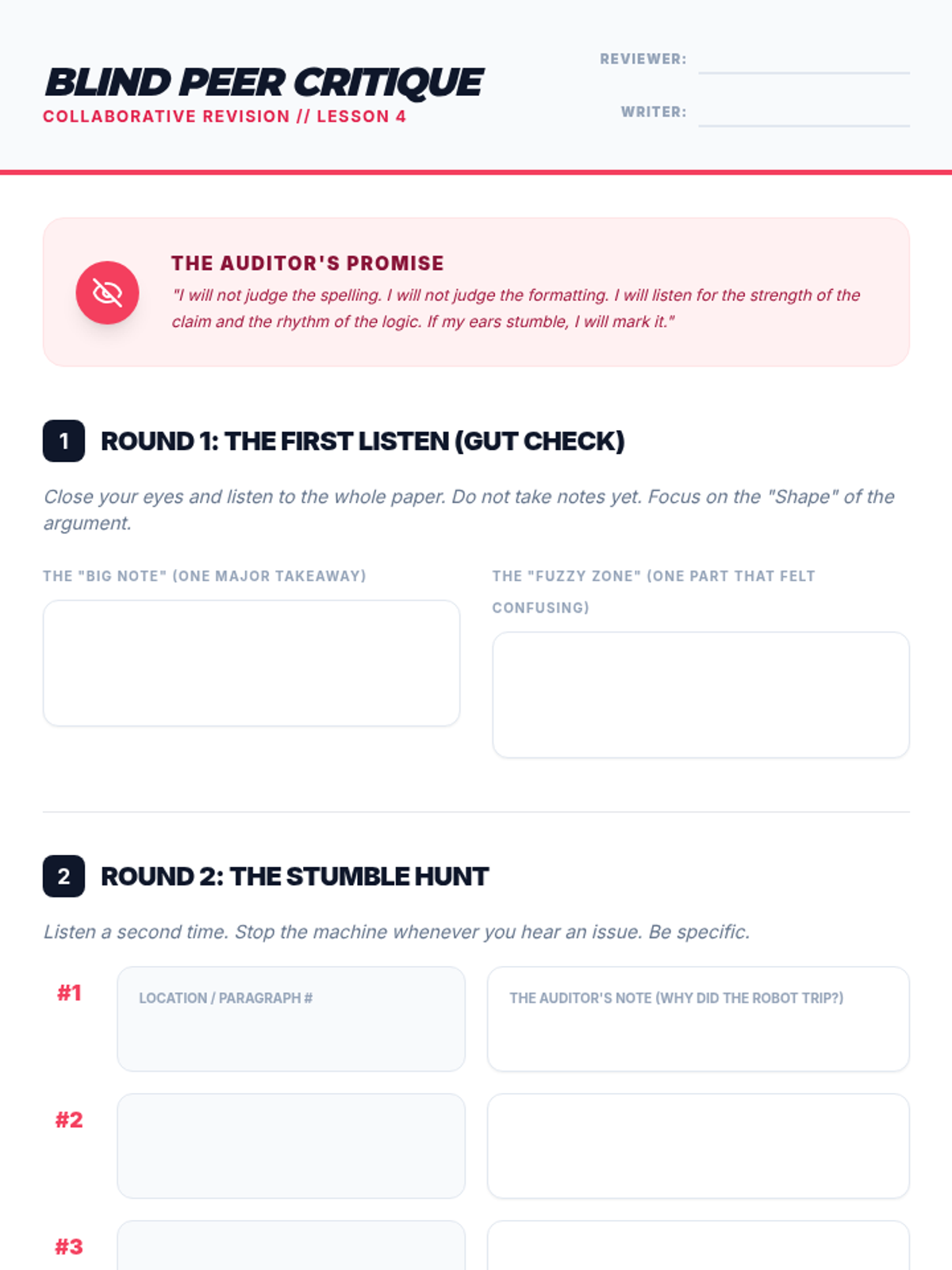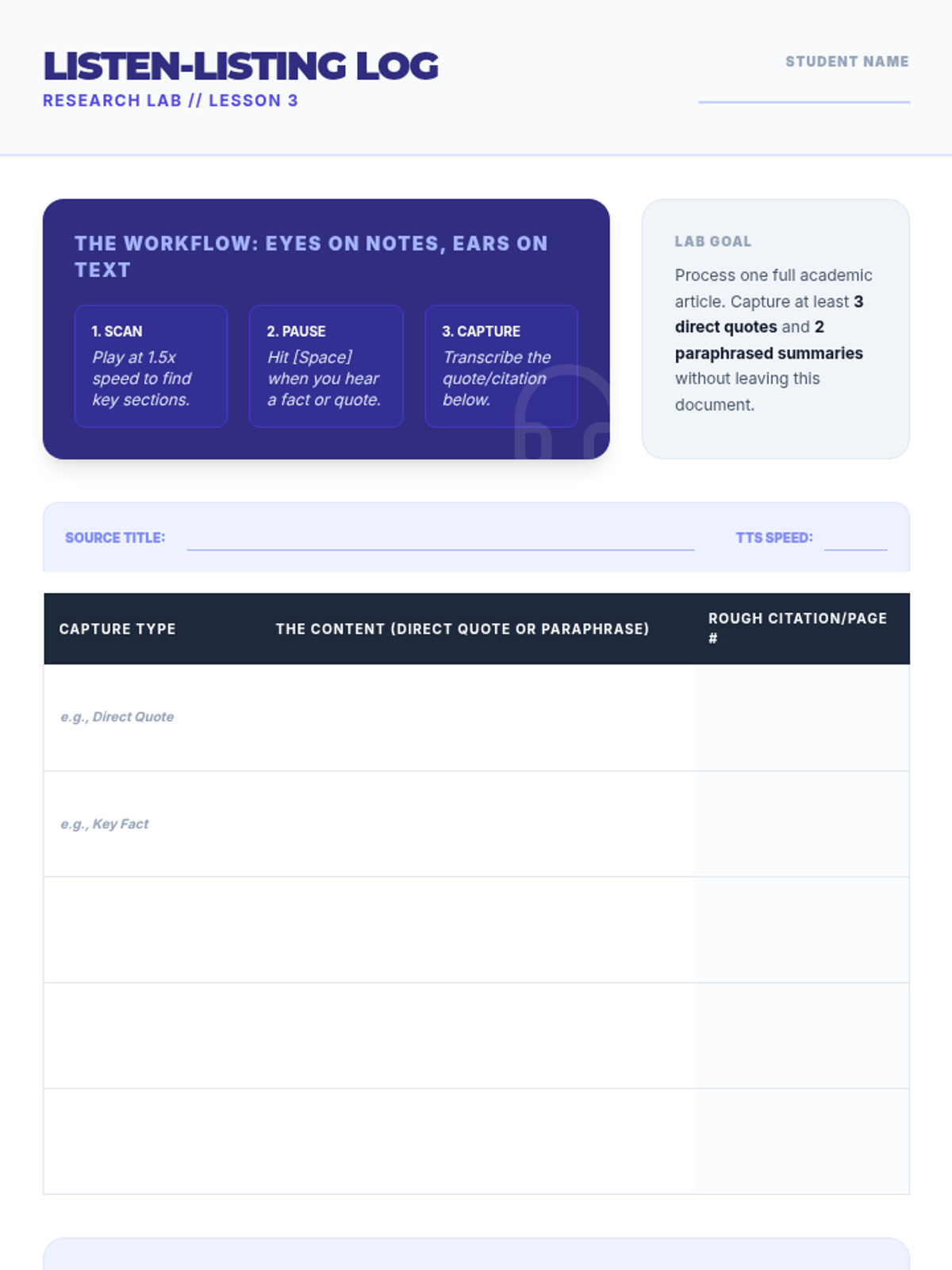 A 12th-grade sequence exploring the transformative power of Text-to-Speech (TTS) as a tool for writing revision, rhetorical analysis, and research management. Students move from basic error detection to analyzing the rhythm of their own persuasive prose.