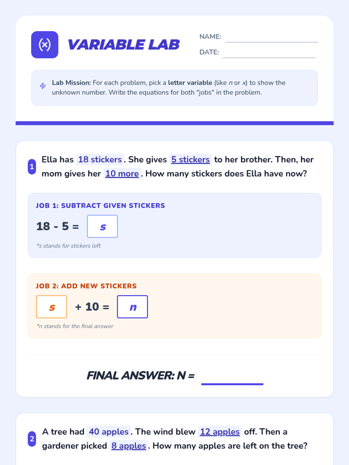 A comprehensive unit focusing on mastering multi-step word problems using a structured problem-solving routine. Students learn to break down complex problems involving whole numbers, fractions, and decimals using 'blueprint' thinking.