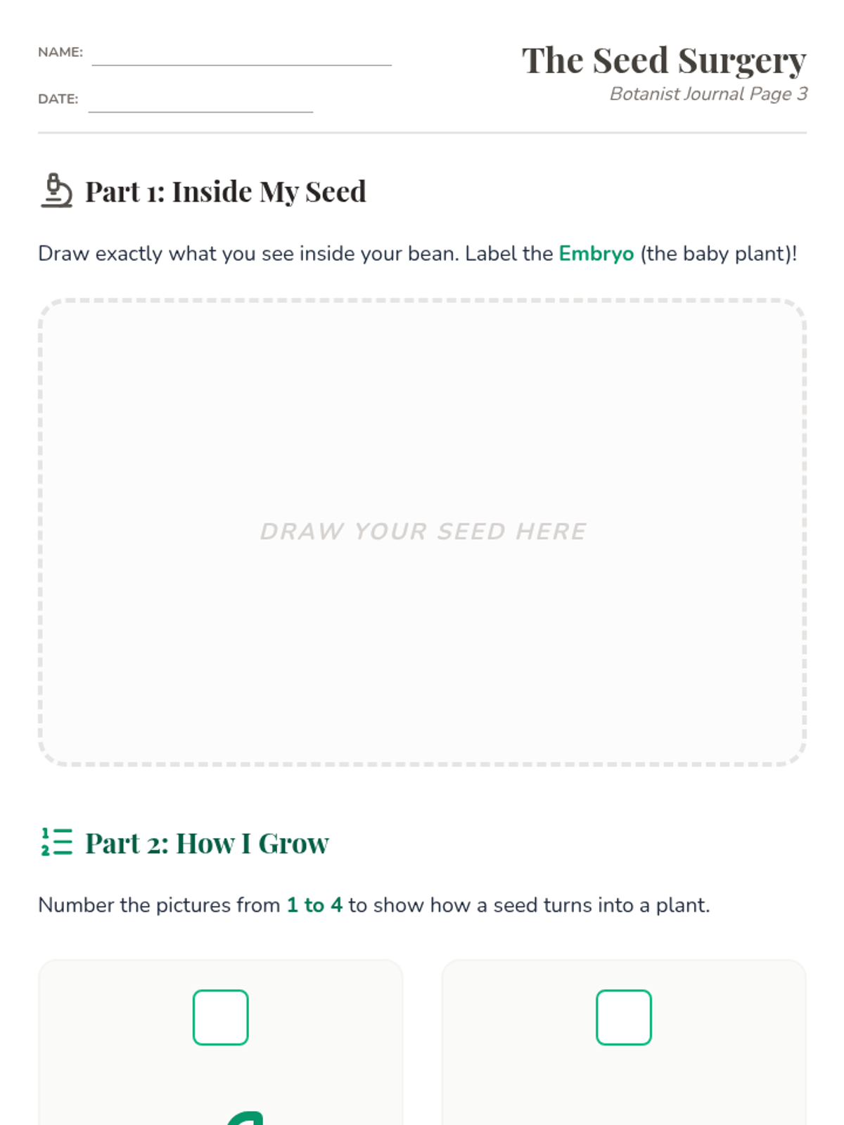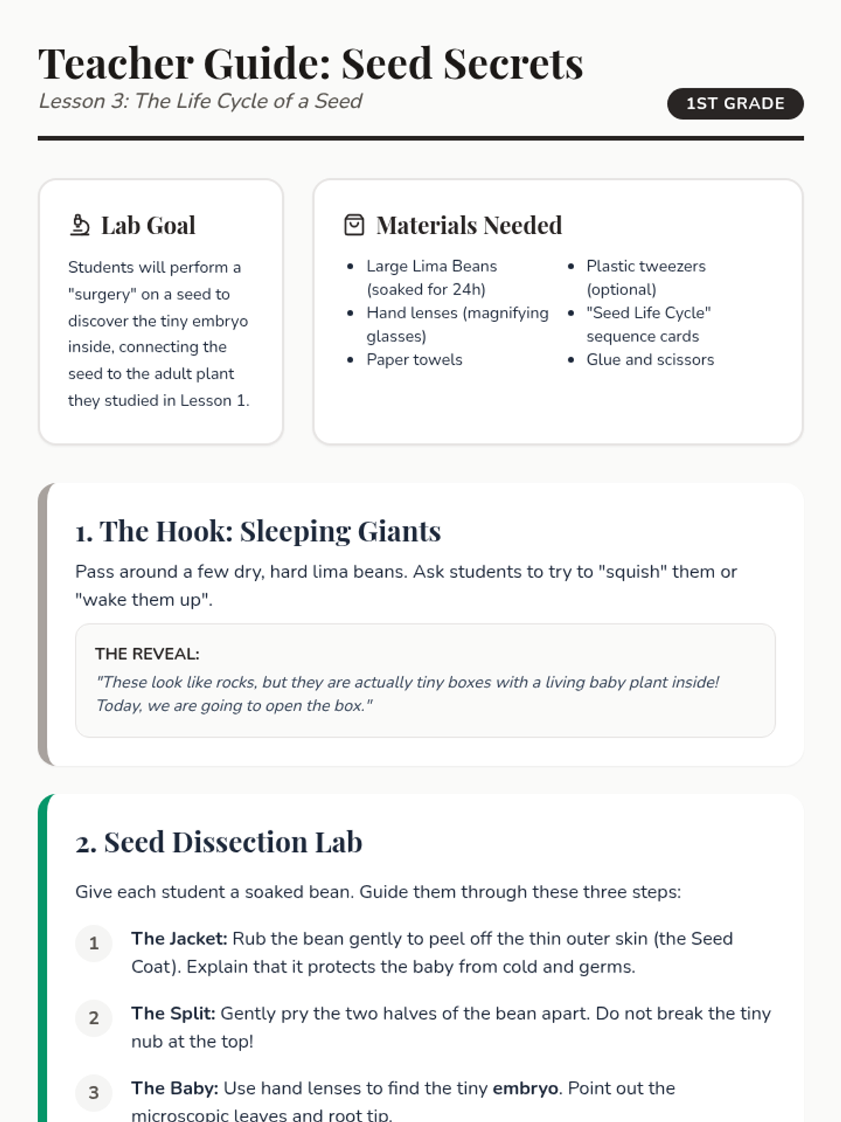 This project-based sequence explores plant anatomy and survival needs through hands-on dissection, experimentation, and observation. Students take on the role of 'Little Botanists' to understand how roots, stems, leaves, and flowers work together to sustain life.