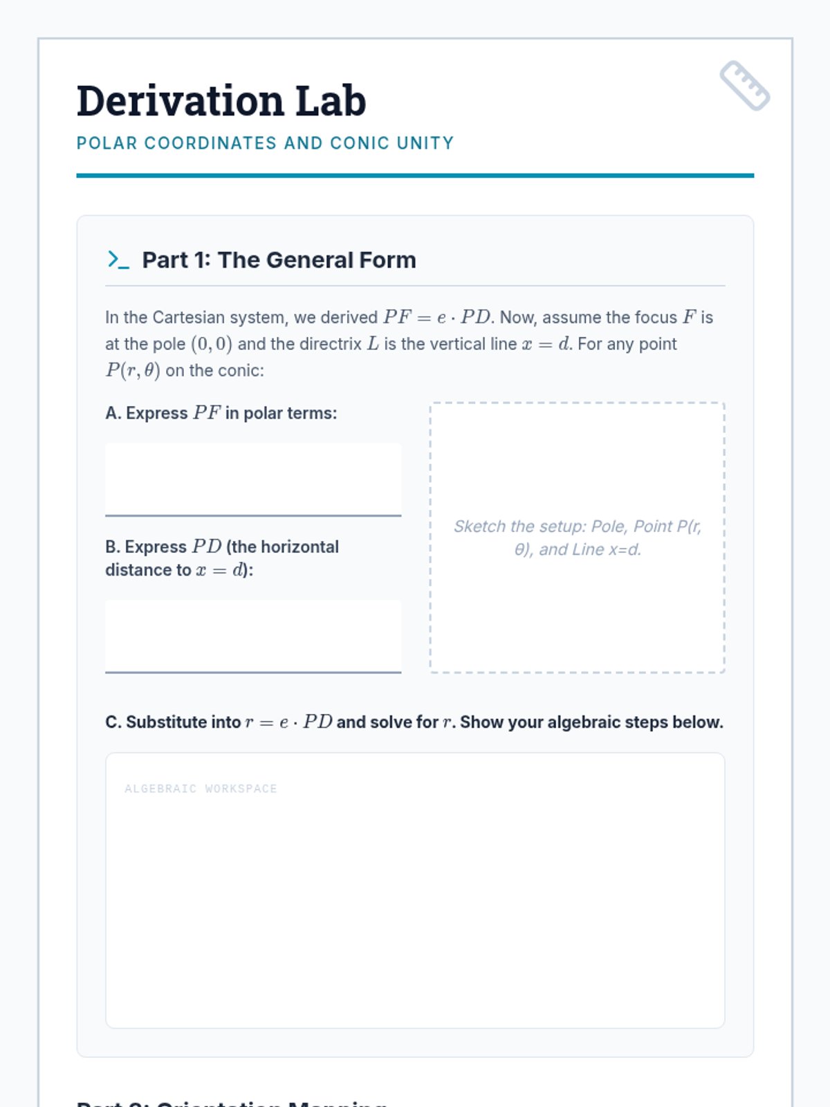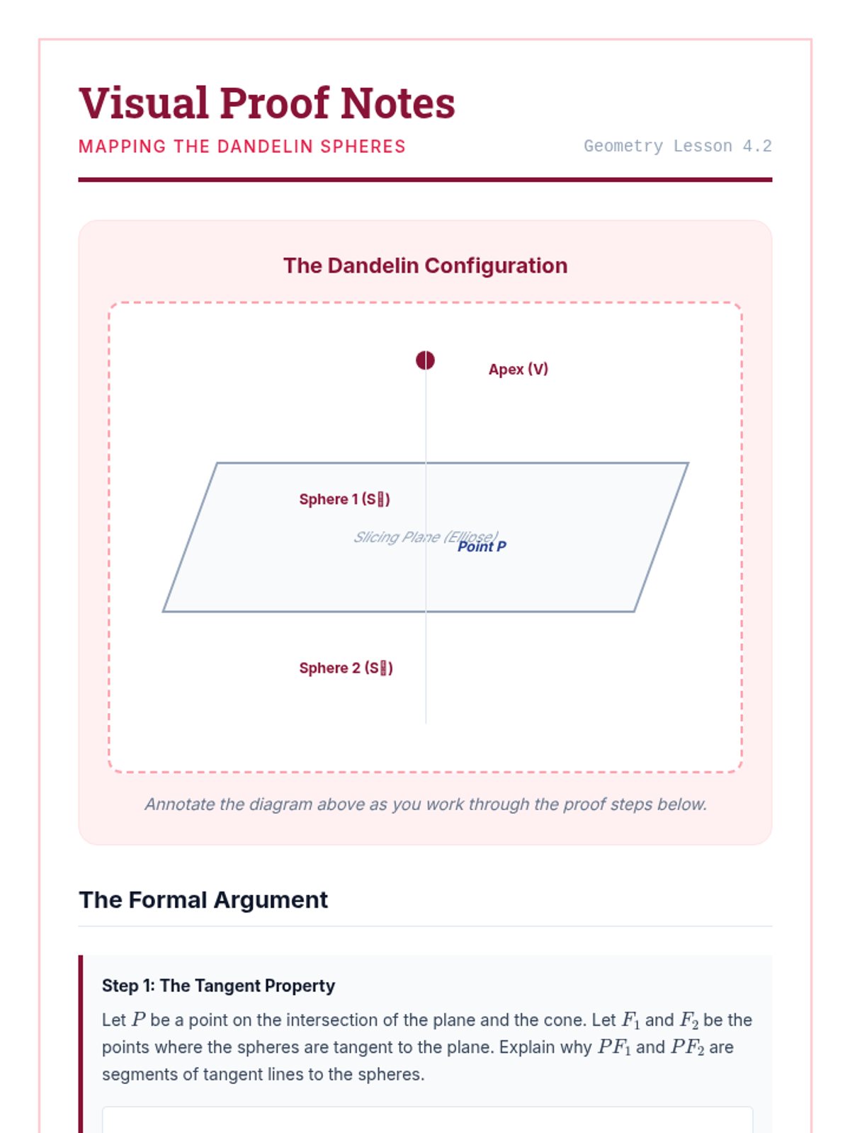 A rigorous undergraduate-level exploration of conic sections unified through the eccentricity parameter and polar coordinate systems. Students transition from traditional Cartesian definitions to a singular focus-directrix approach, concluding with the elegant 3D proof of Dandelin Spheres.