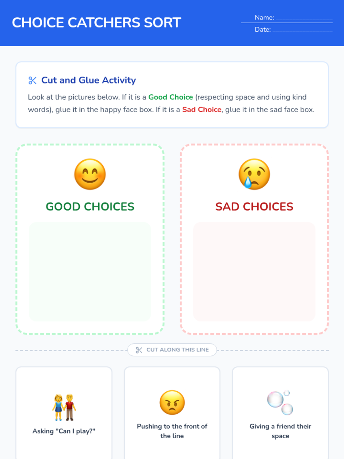A two-day social skills unit for Kindergarten students focusing on personal boundaries, kind communication, turn-taking, and managing schedule changes before a school break.