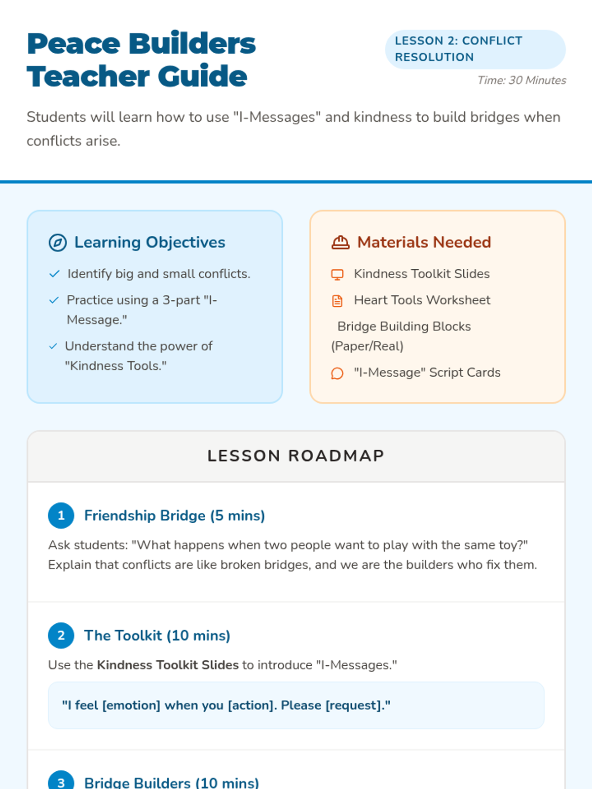 A collection of three SEL lessons for 1st grade focusing on growth mindset, conflict resolution, and personal space.