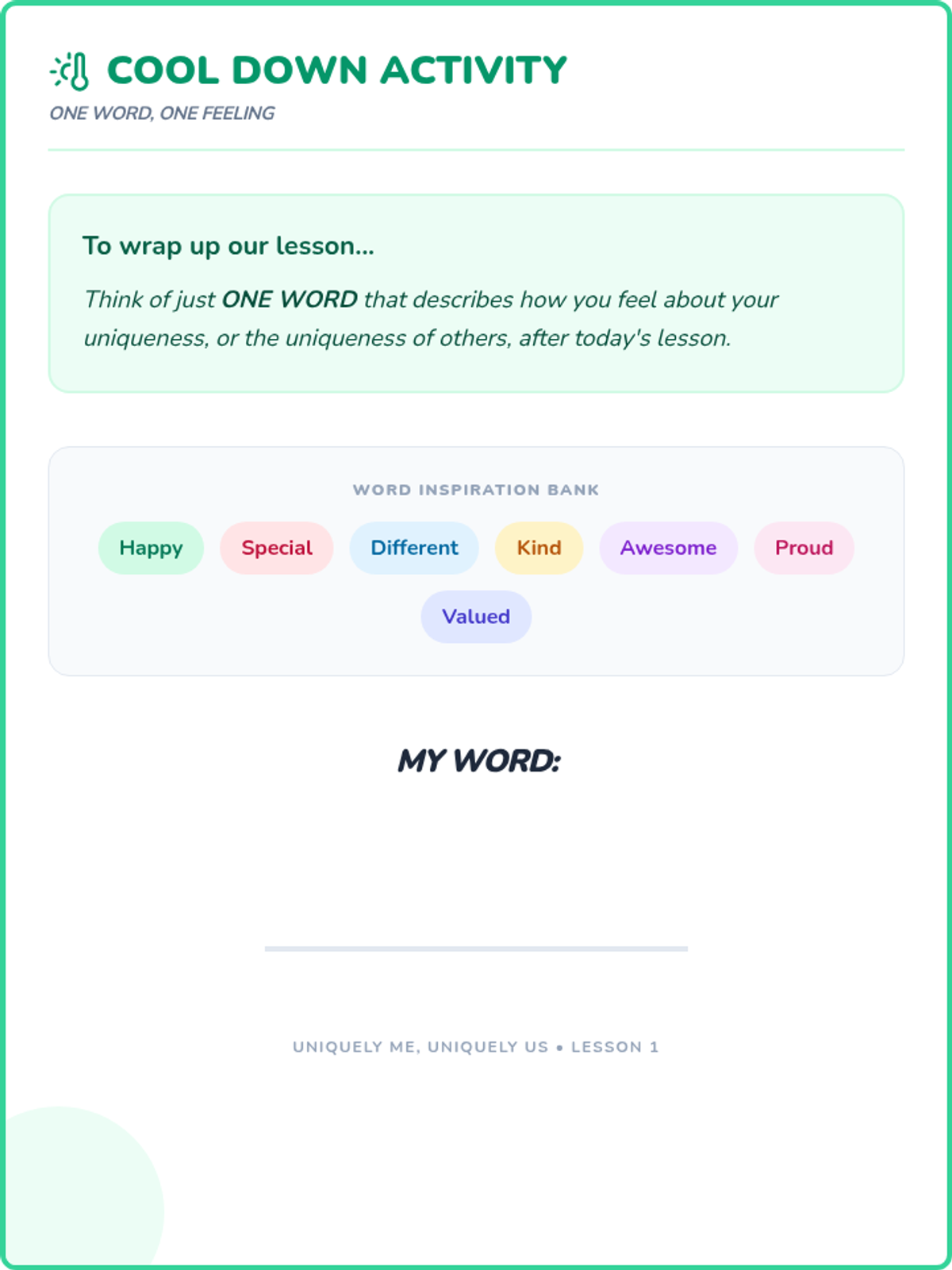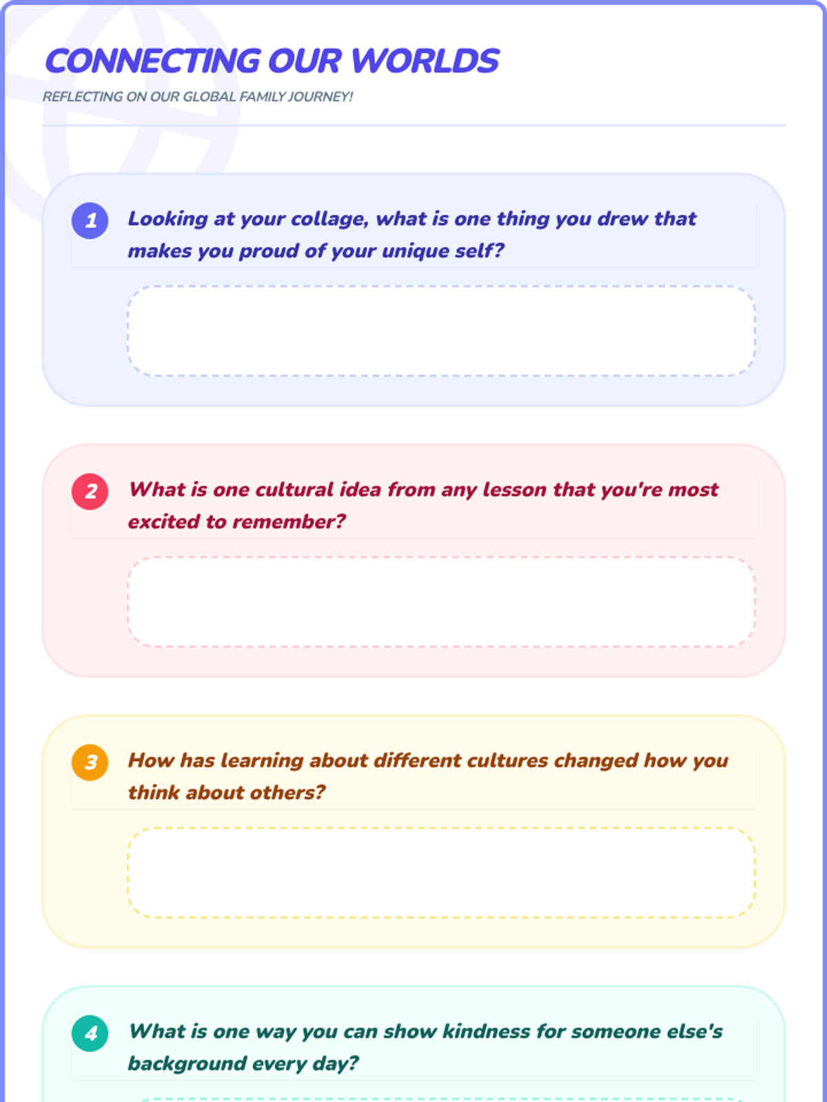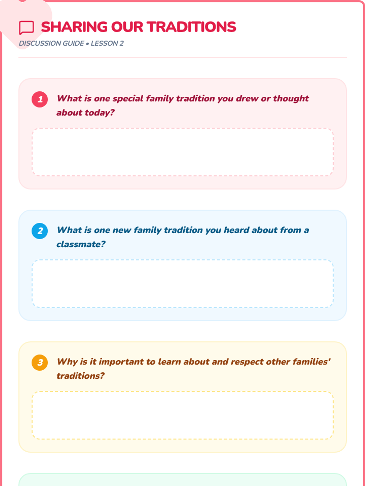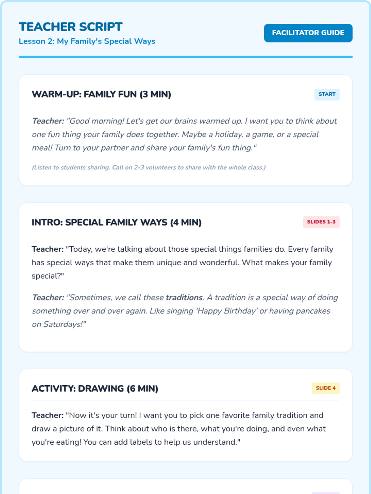 A sequence of 20-minute lessons for second-grade girls to explore culture, diversity, and uniqueness through interactive activities, discussions, and creative projects.
