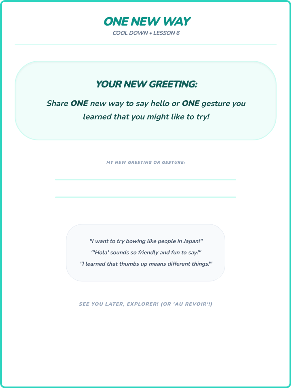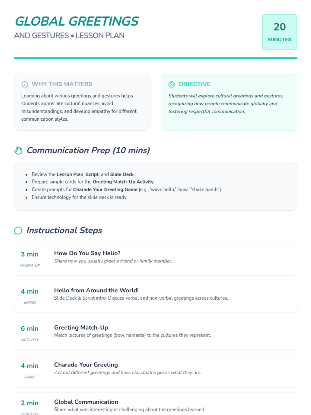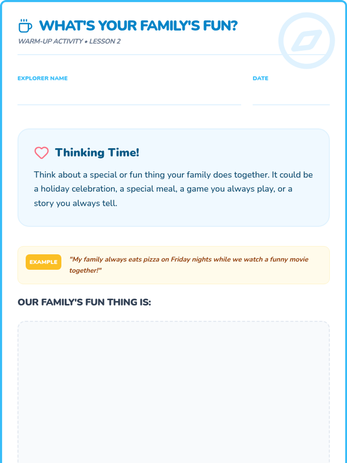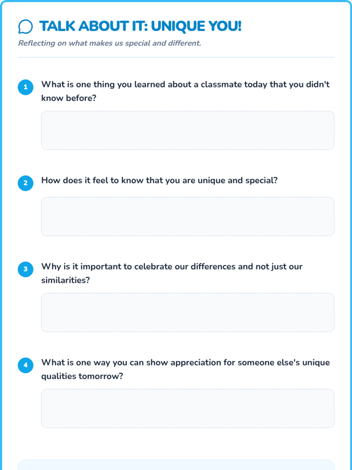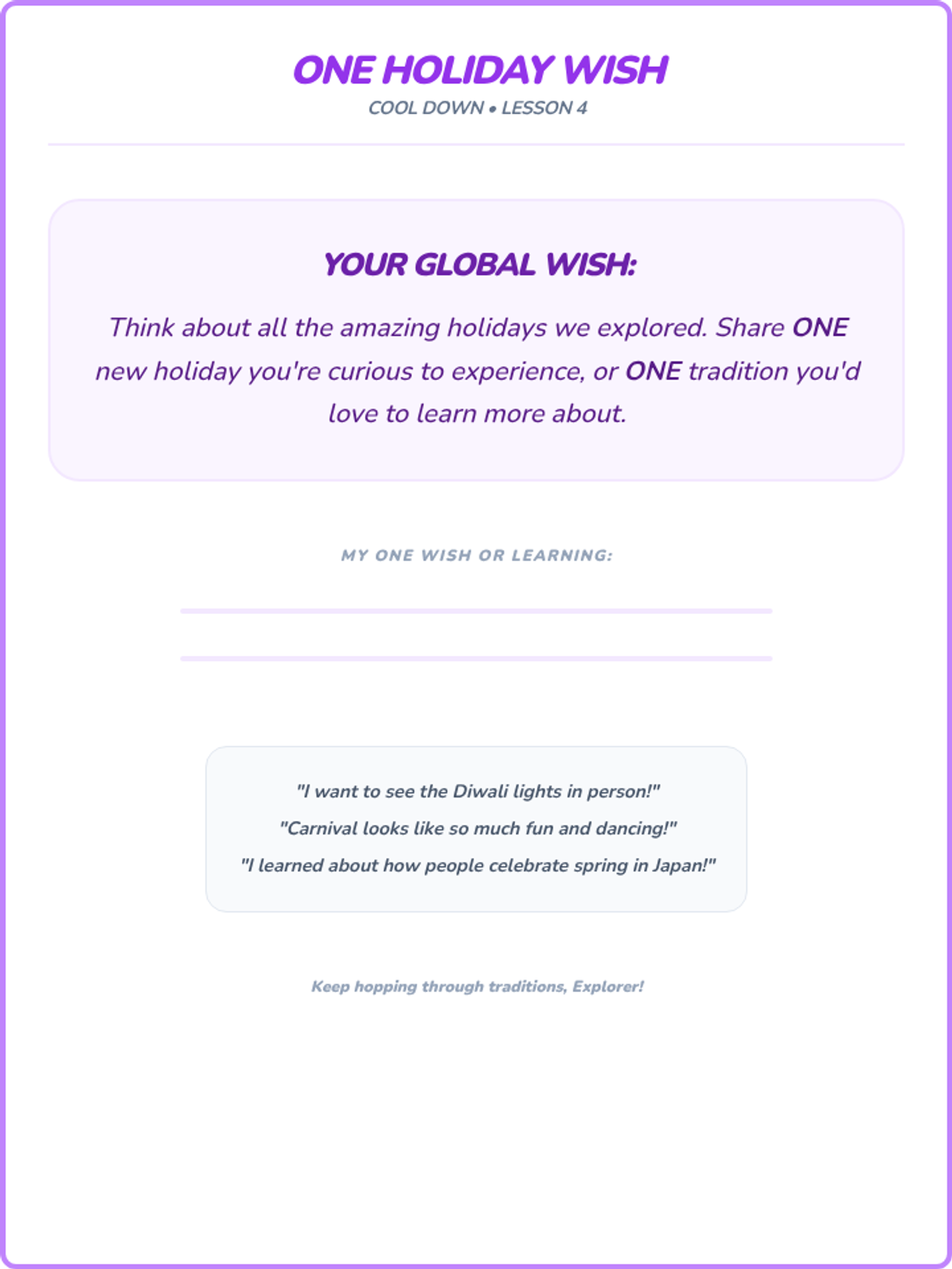 A sequence of 20-minute lessons for second-grade girls to explore culture, diversity, and uniqueness through interactive activities, discussions, and creative projects.