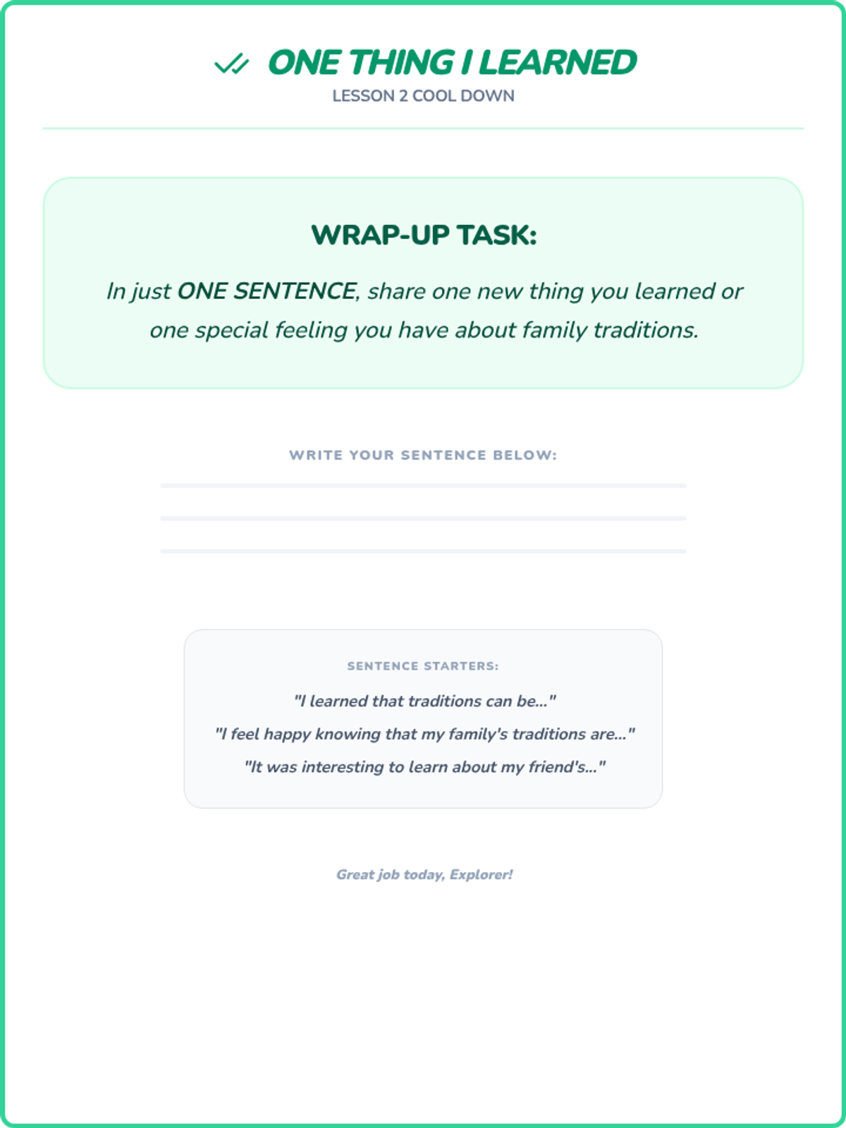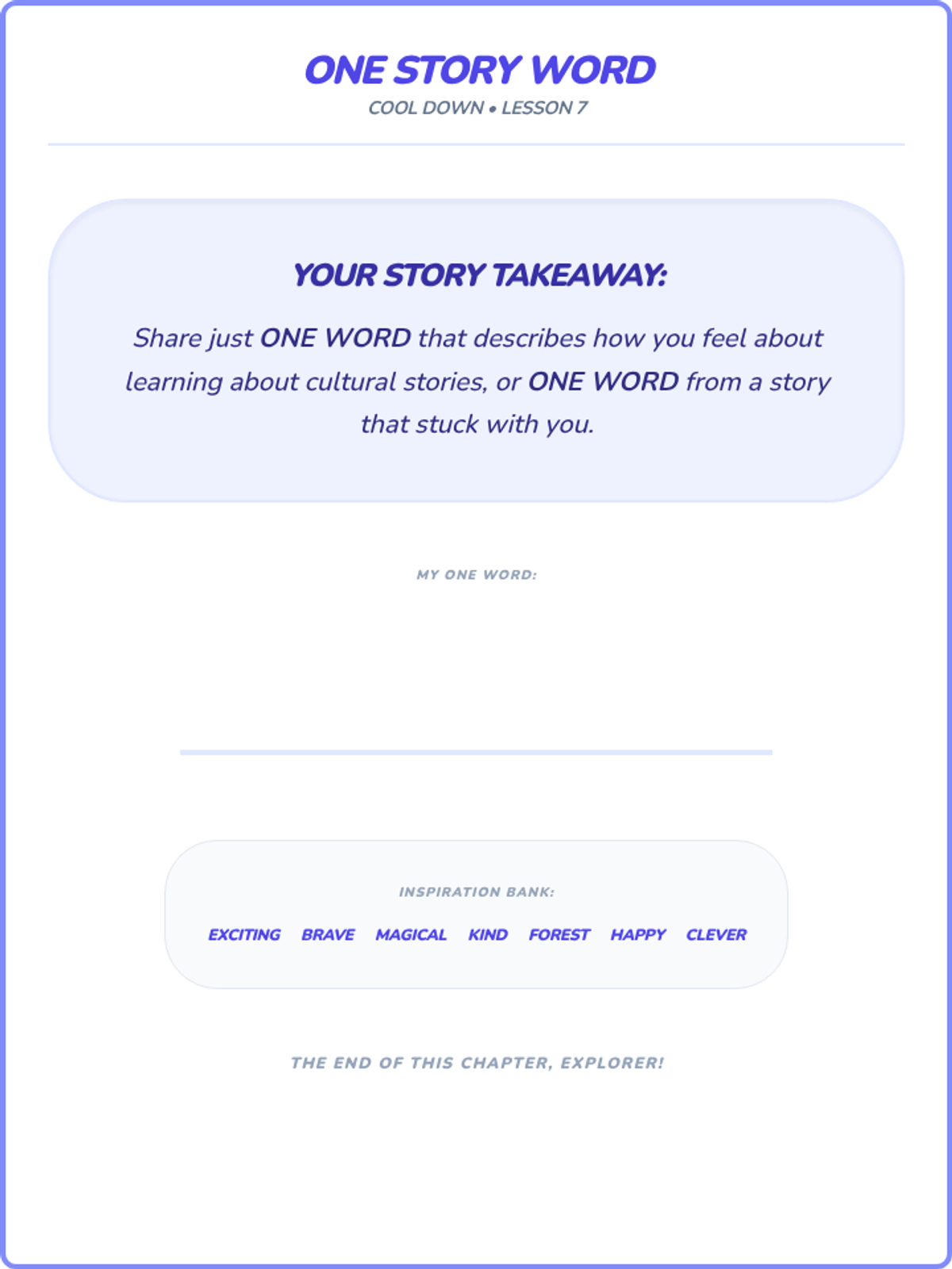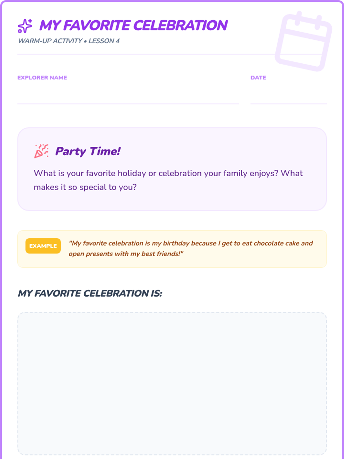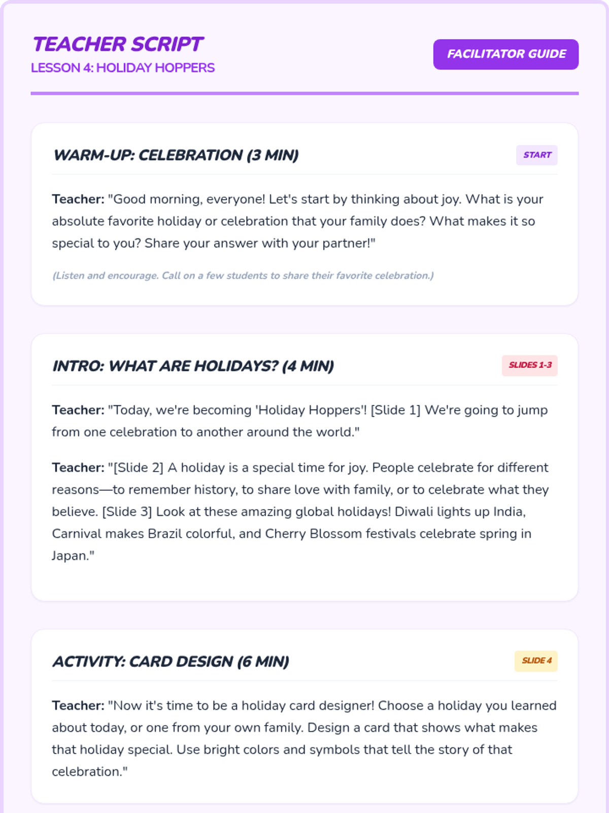A sequence of 20-minute lessons for second-grade girls to explore culture, diversity, and uniqueness through interactive activities, discussions, and creative projects.