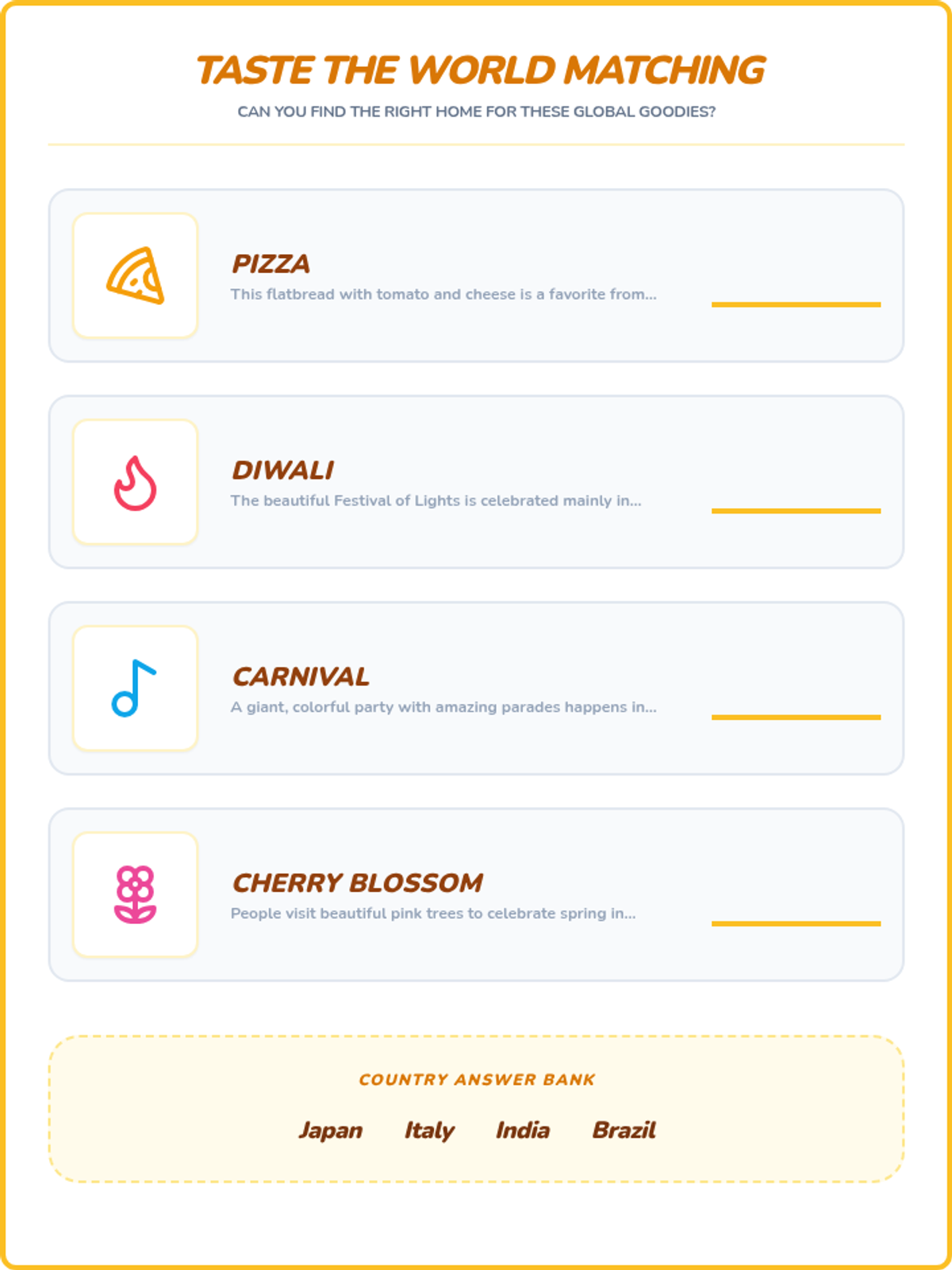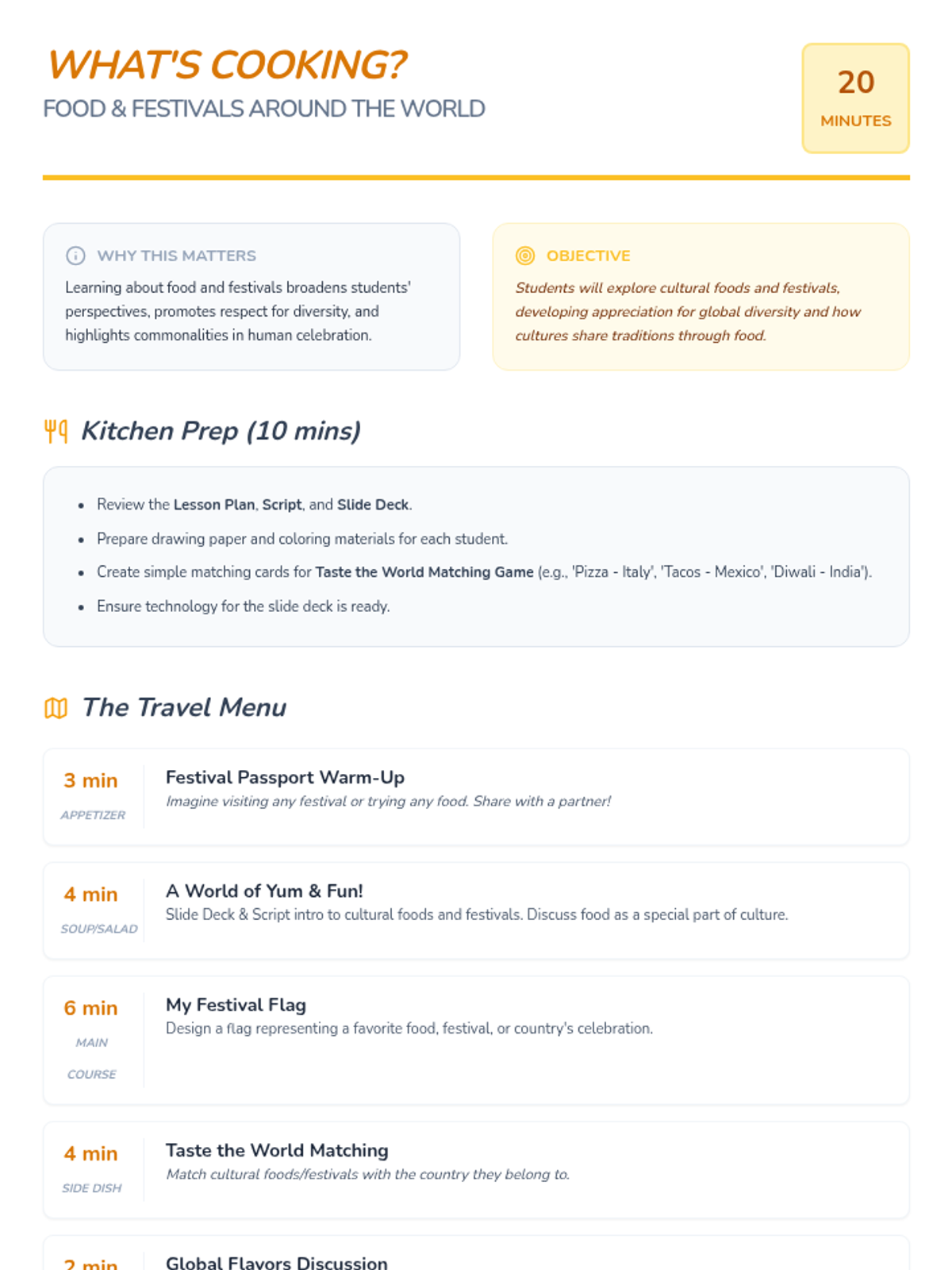 What's Cooking Food and Festivals Around the World