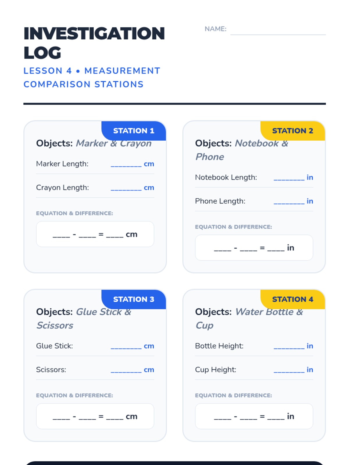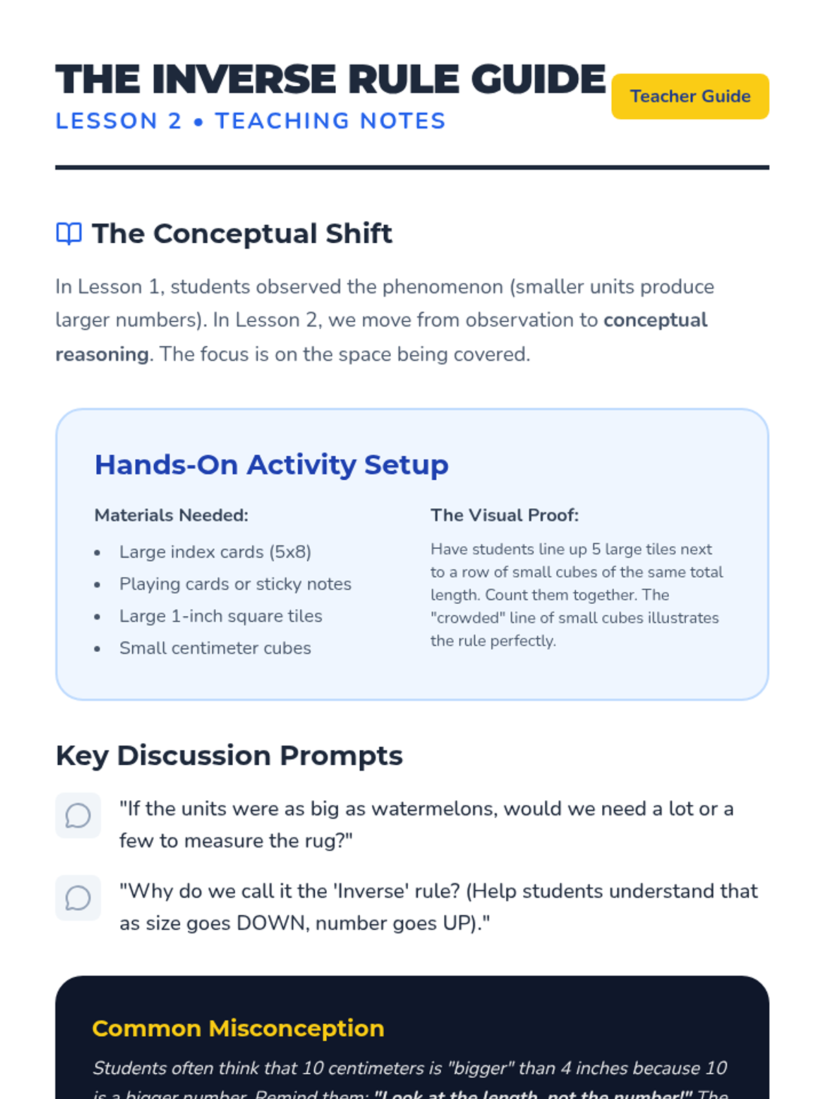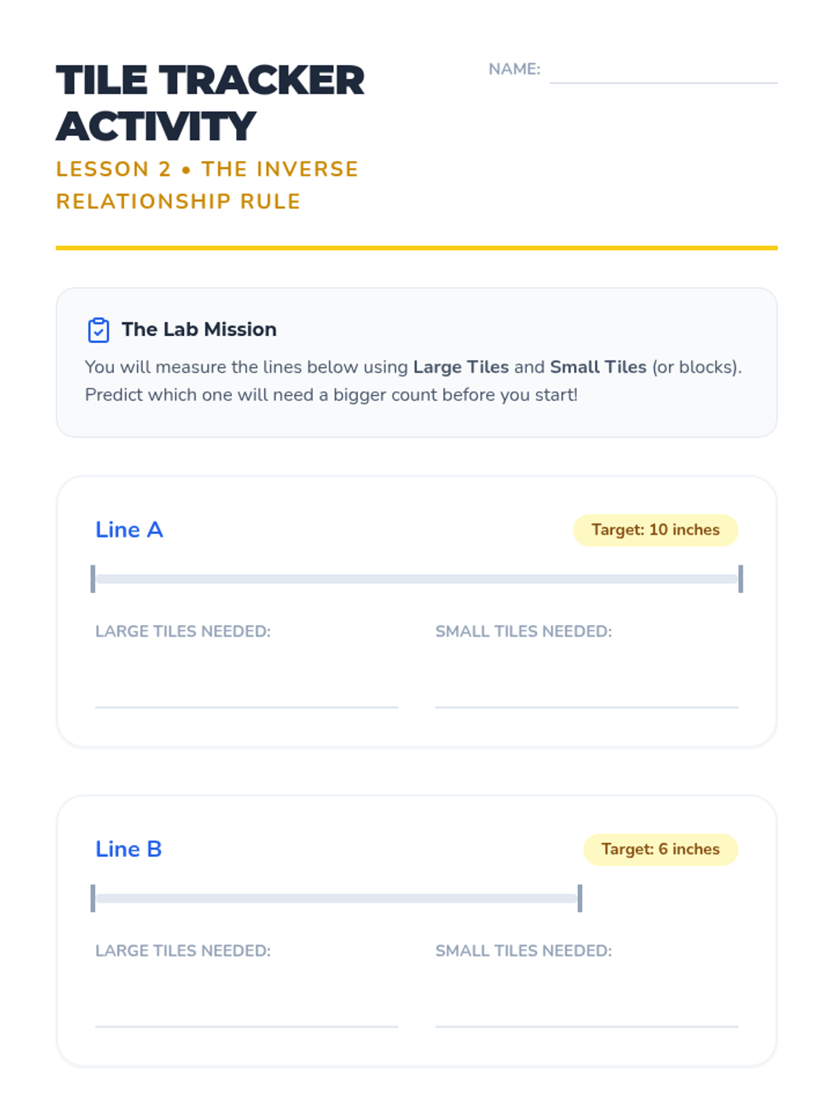 An advanced 2nd-grade sequence focusing on the inverse relationship between unit size and count, and calculating differences in length between objects using standard units. Students will engage in inquiry-based measuring, manipulative explorations, and a design project to master these complex measurement concepts.