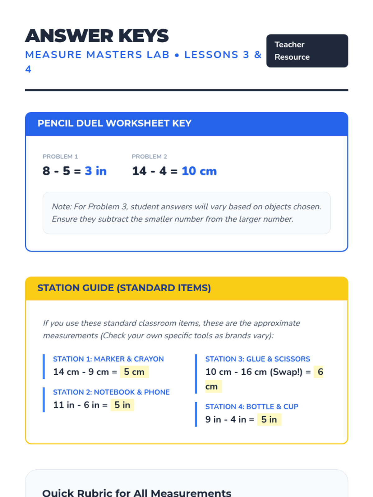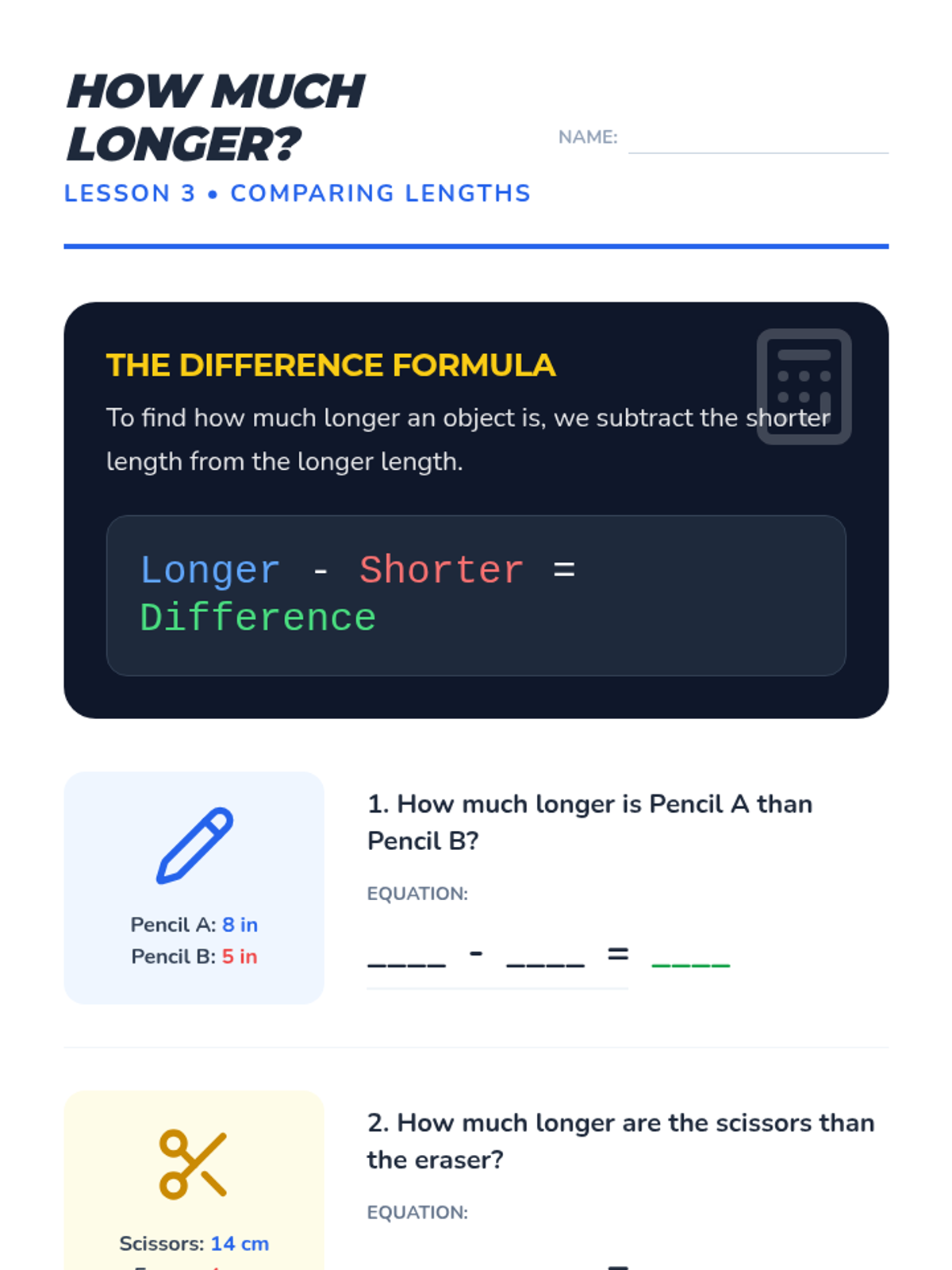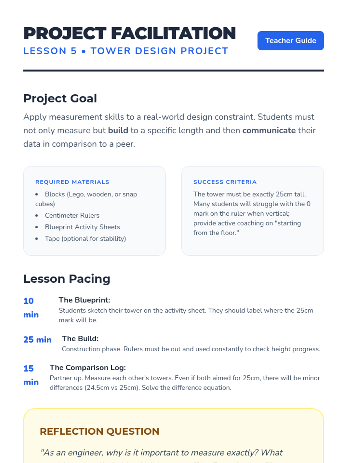 An advanced 2nd-grade sequence focusing on the inverse relationship between unit size and count, and calculating differences in length between objects using standard units. Students will engage in inquiry-based measuring, manipulative explorations, and a design project to master these complex measurement concepts.