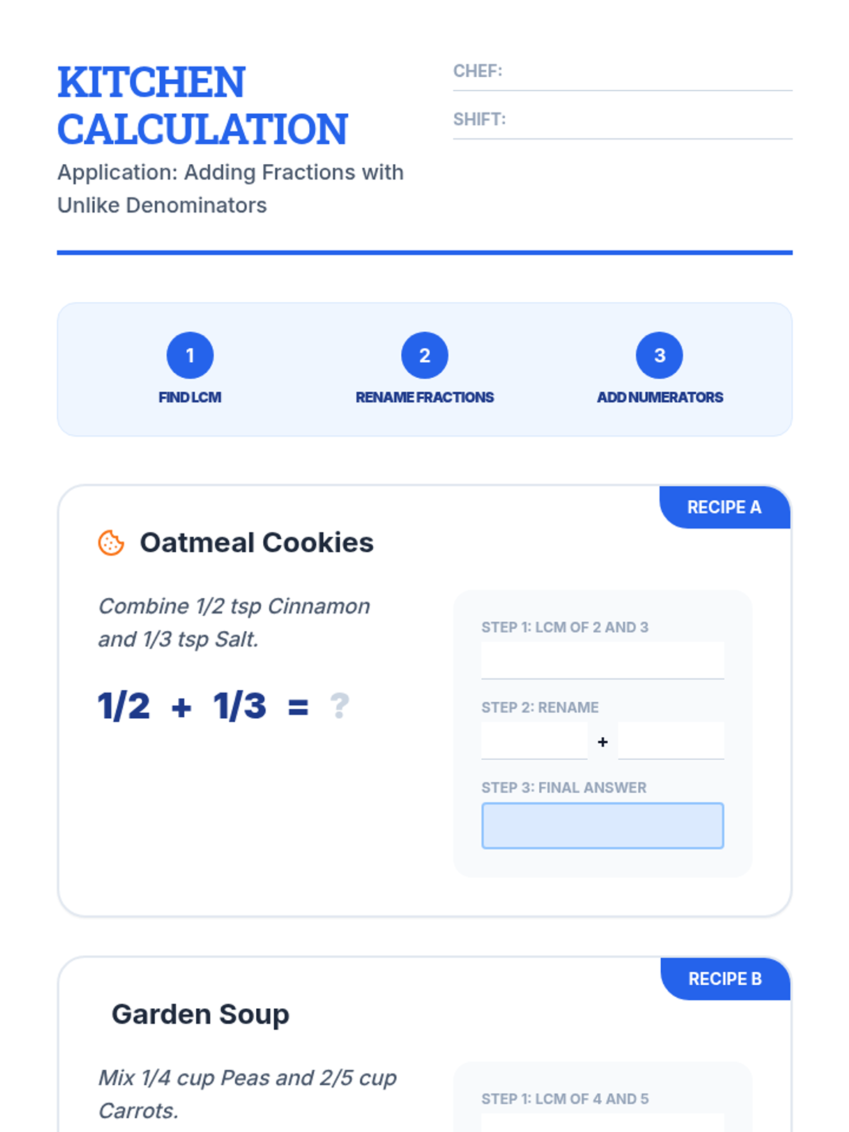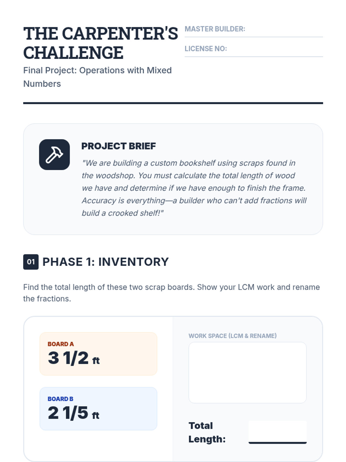This inquiry-based sequence teaches 4th-grade students to add and subtract fractions with unlike denominators by finding the Least Common Multiple (LCM), creating equivalent fractions, and simplifying results. Students use visual models and real-world scenarios, like carpentry and cooking, to master these complex operations.