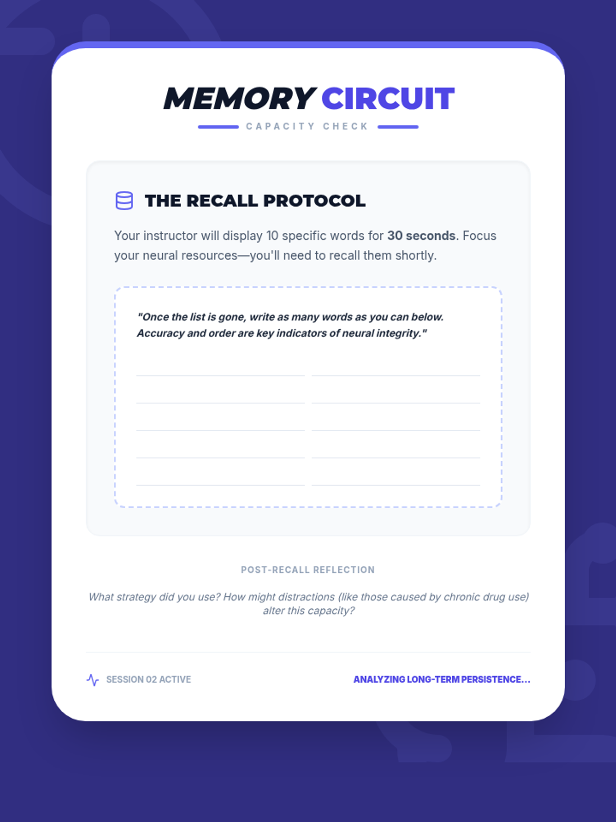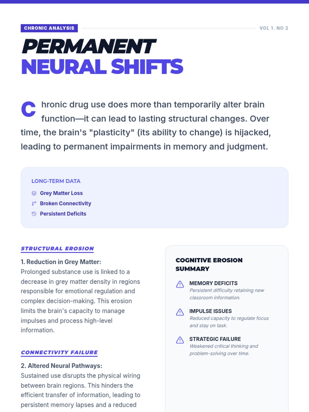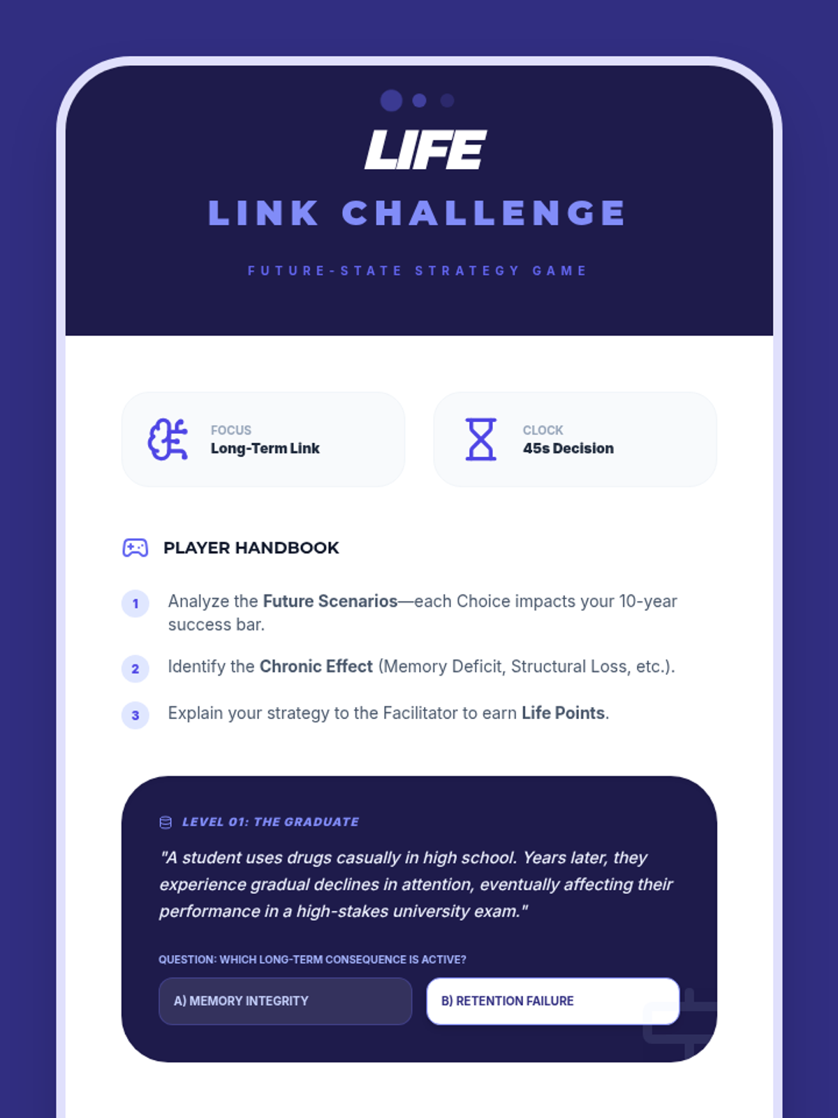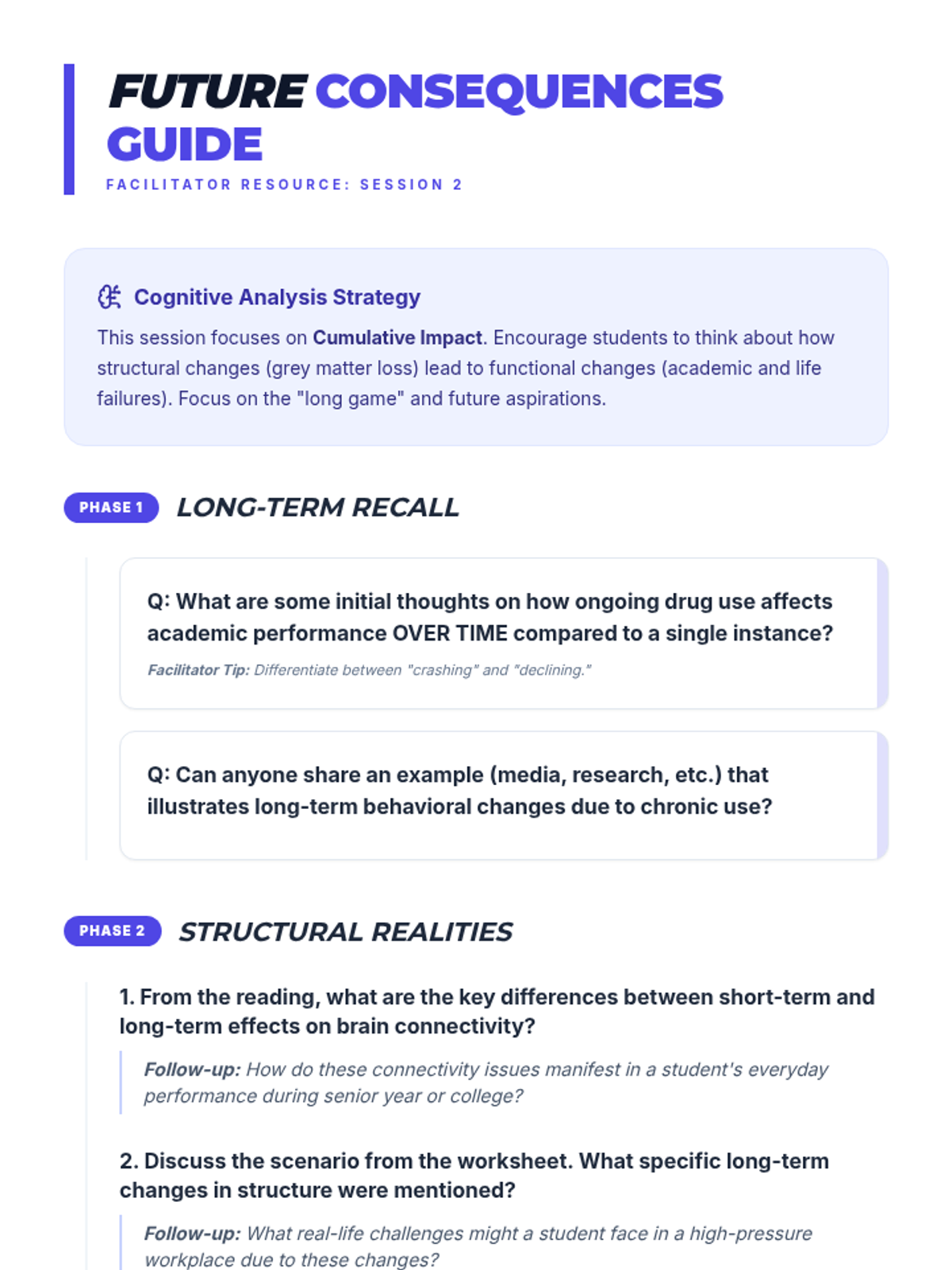 A two-session high school health sequence exploring the immediate and long-term neurobiological impacts of drug use on learning, memory, and decision-making.