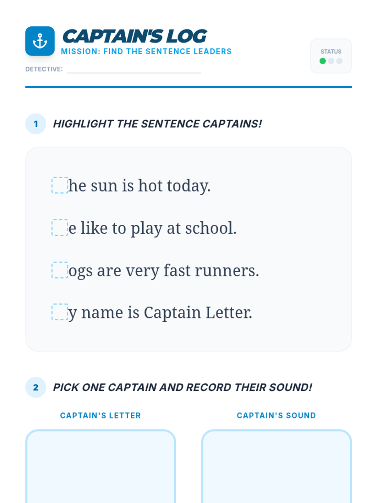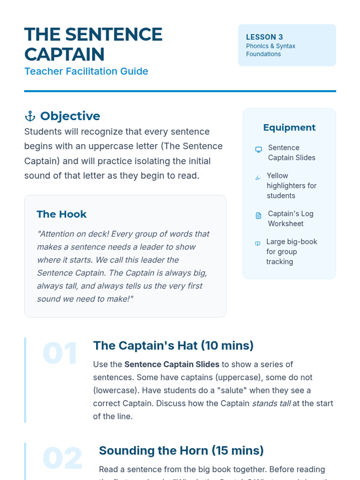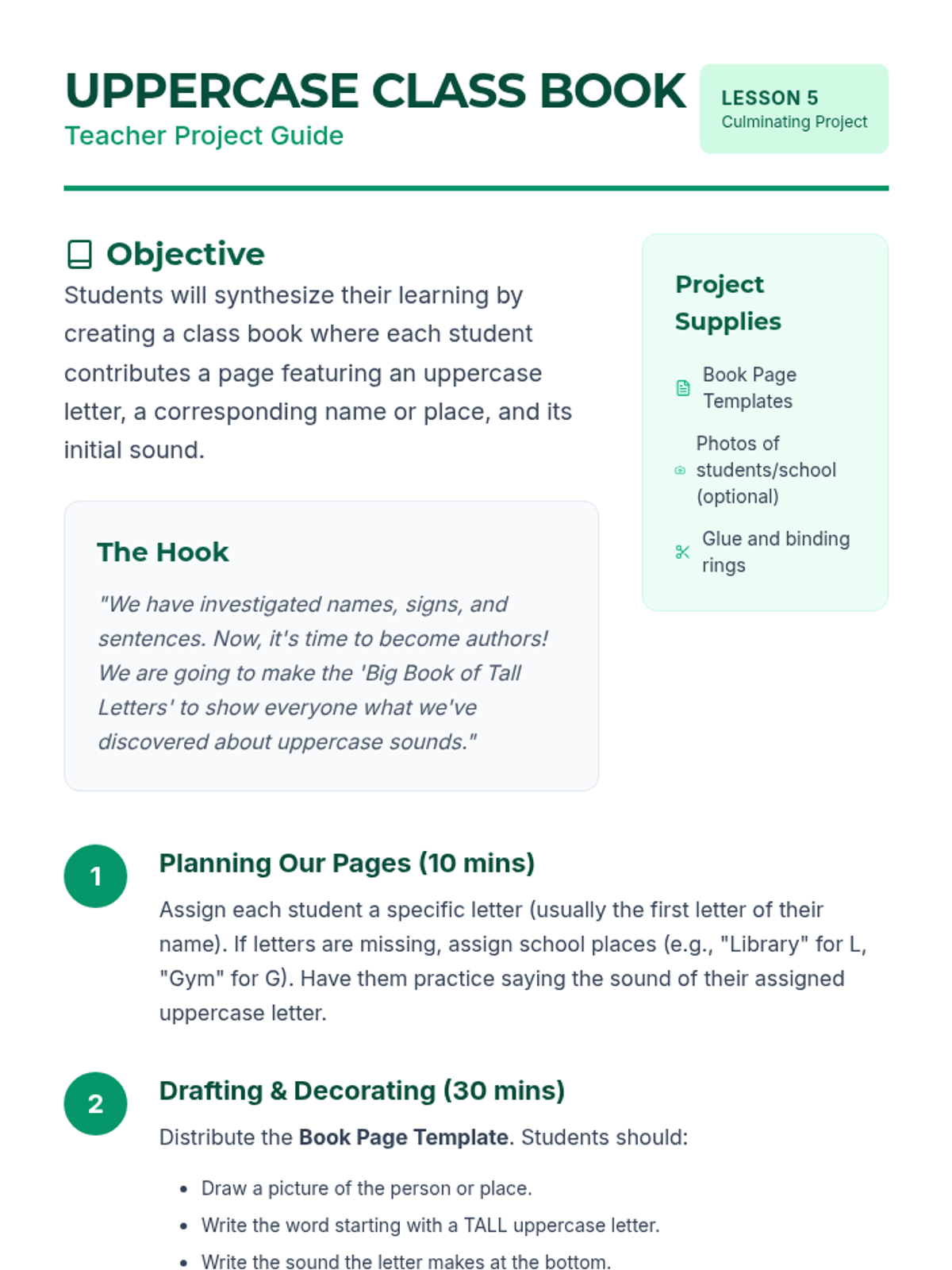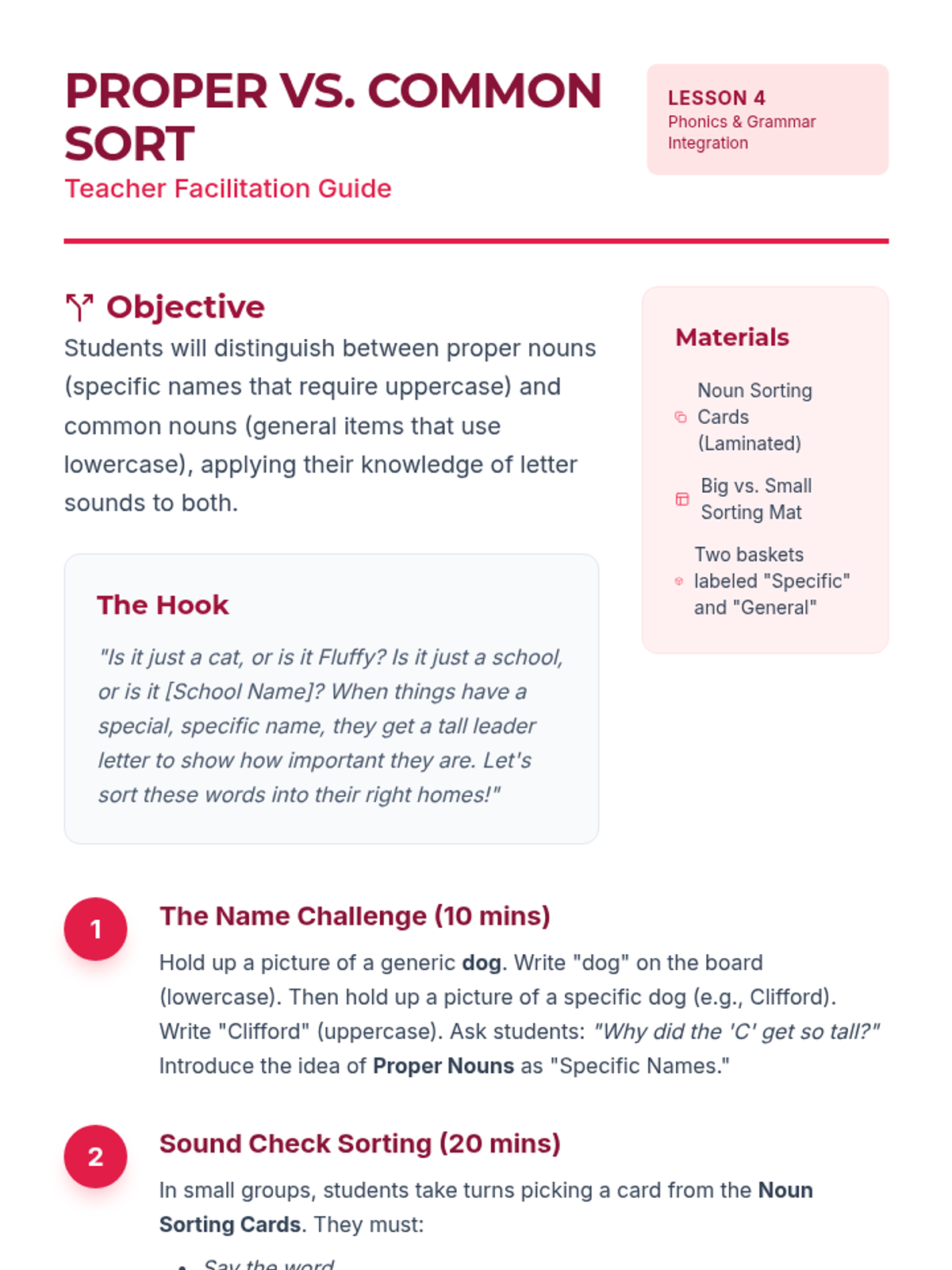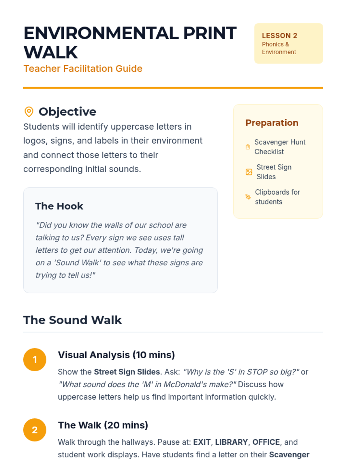 This inquiry-based sequence explores uppercase letters within the context of names, environmental print, and sentence structure. Students act as 'Letter Detectives' to discover the roles of capital letters and their corresponding sounds in real-world texts.