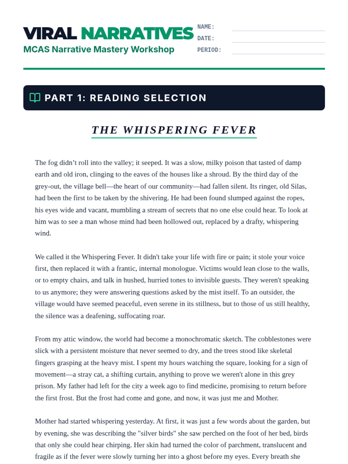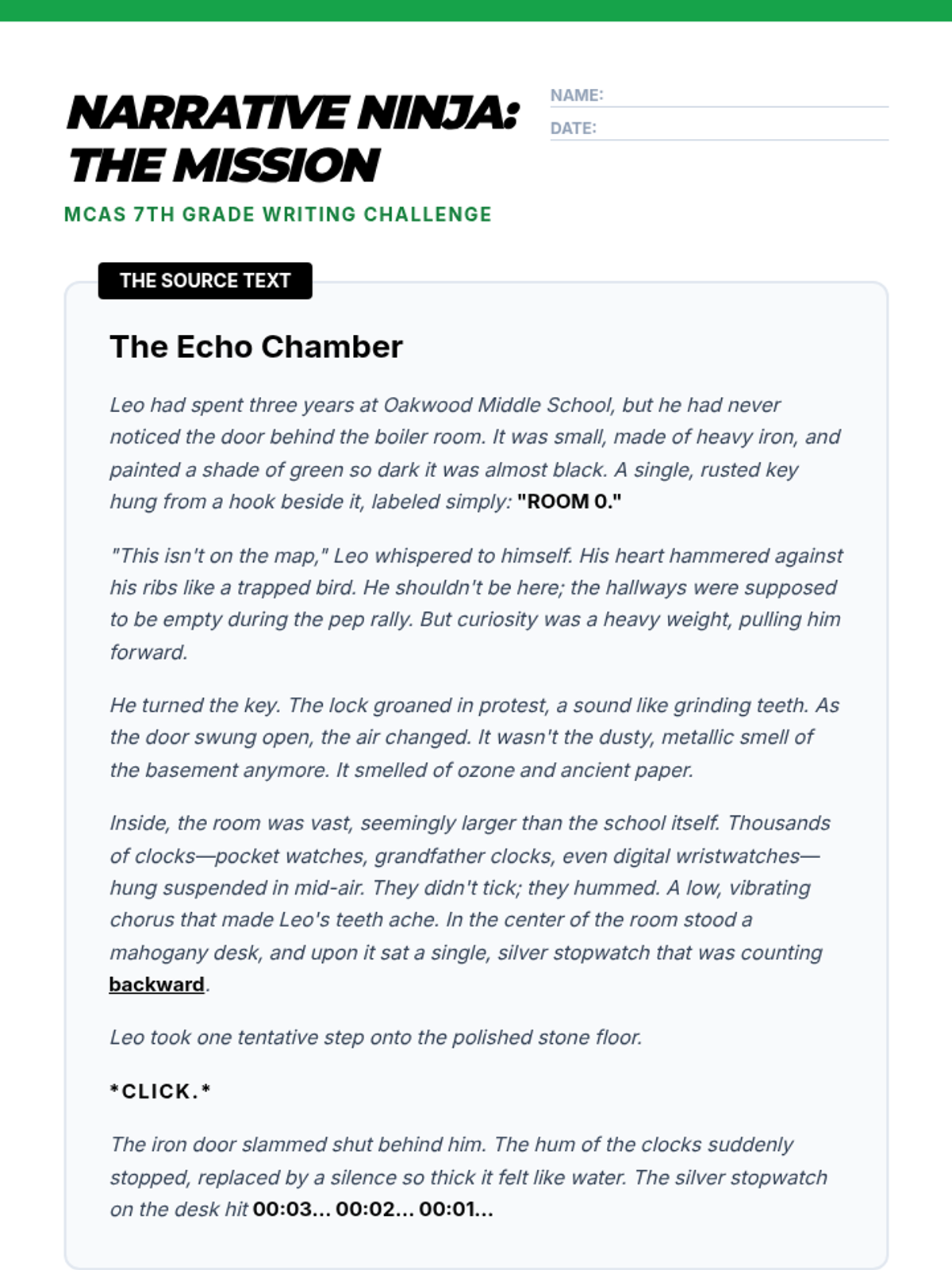 A focused preparation sequence for the 7th Grade Massachusetts MCAS ELA exam, specifically targeting the narrative response category.