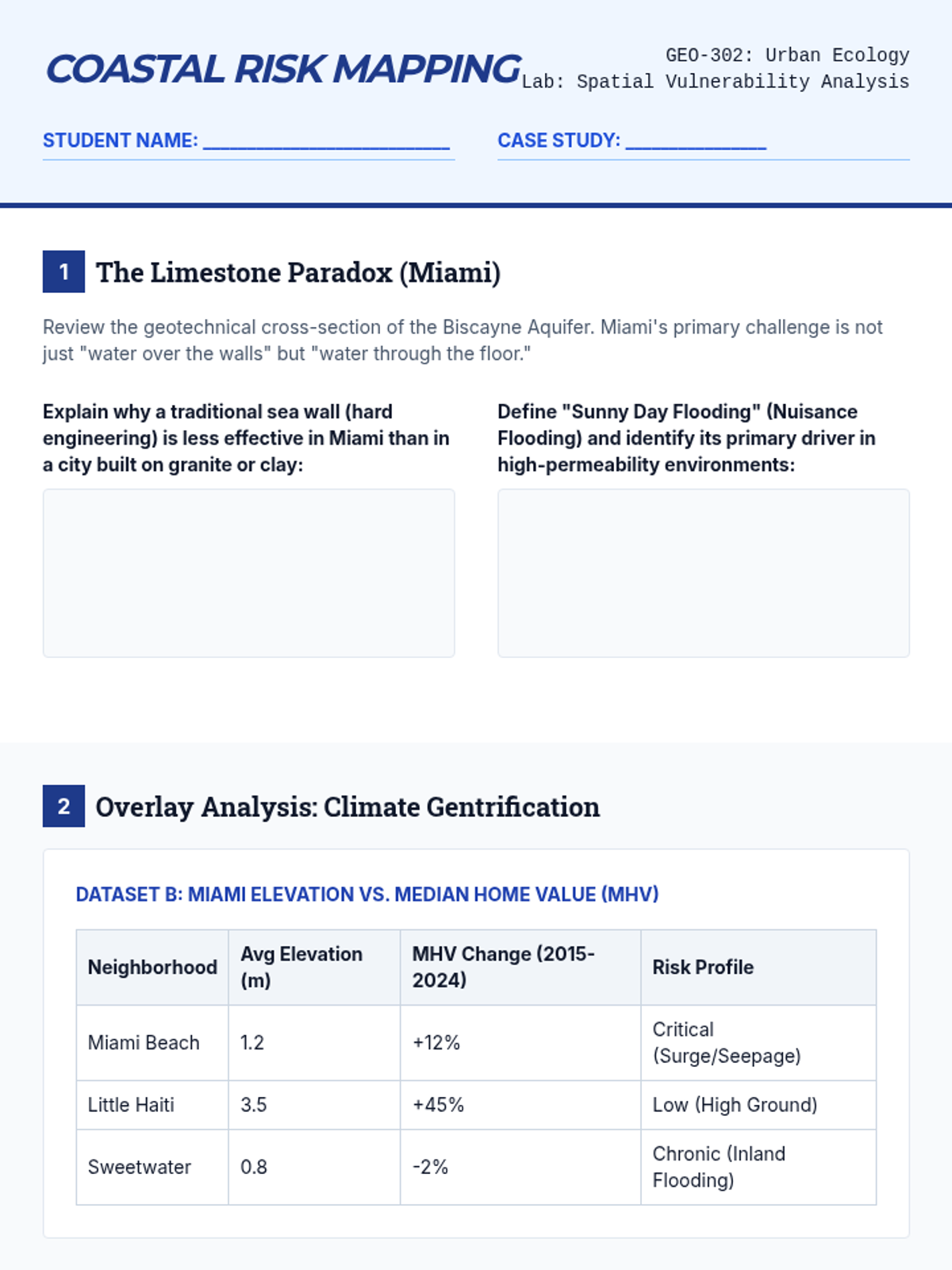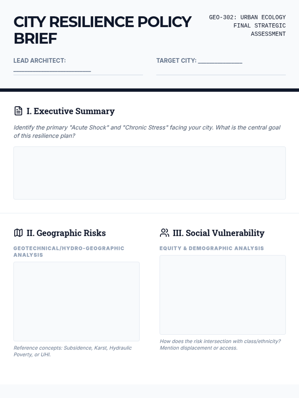 This sequence examines how major metropolitan areas across the Americas adapt to geographic constraints and climate volatility through a comparative case study approach. Students analyze the historical context of site selection and infrastructure development to propose strategic resilience plans addressing environmental crises and socio-economic inequities.