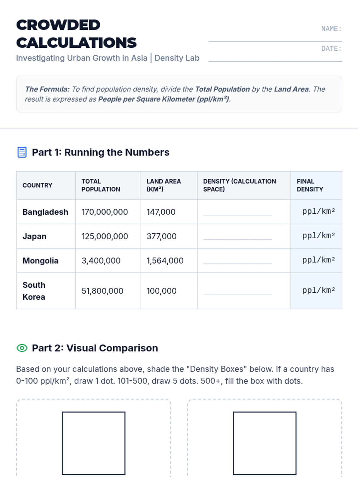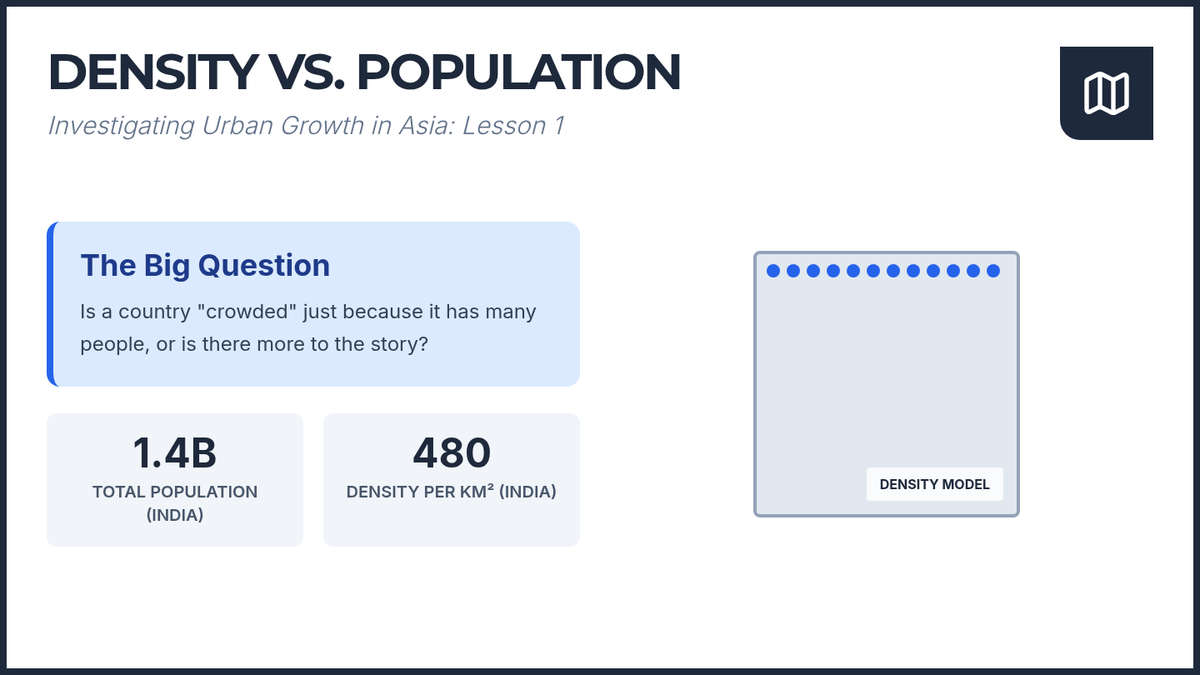 Students investigate the phenomenon of rapid urbanization and high population density in East and South Asia, examining how infrastructure and culture adapt to crowding and land scarcity.