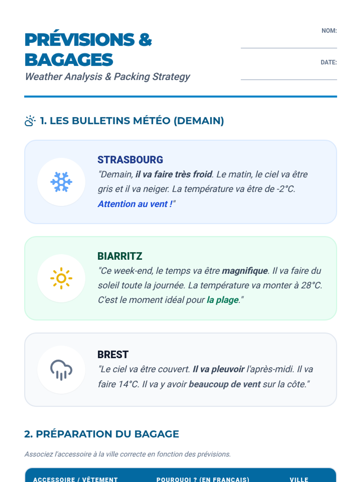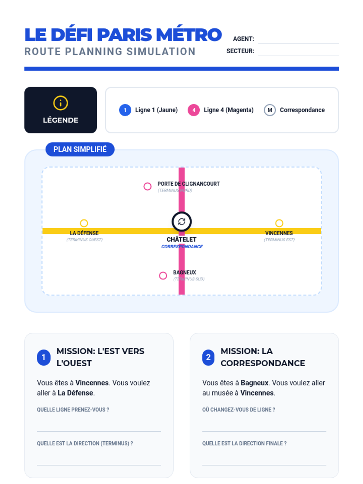A functional French reading sequence for beginners focused on navigating a French-speaking city through authentic travel materials, maps, and schedules.