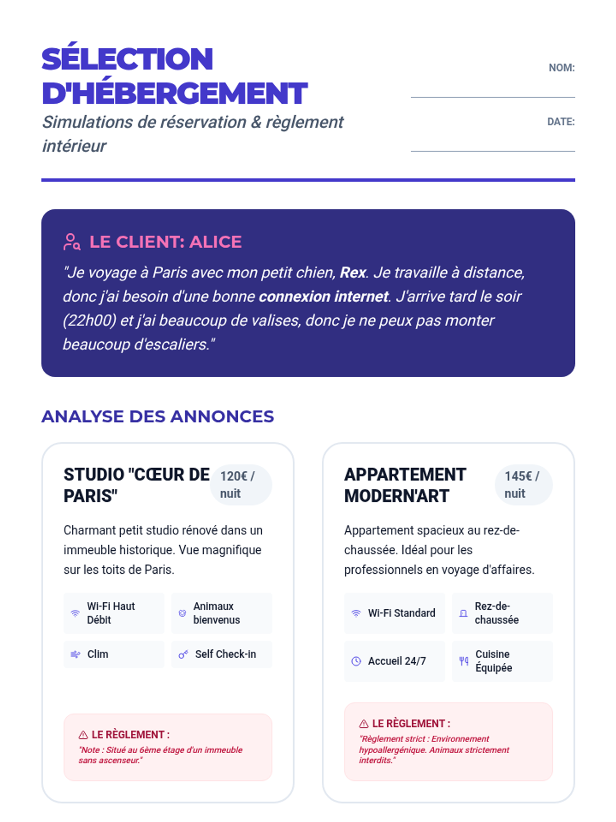 A 3-session English sequence for CAP Cuisine/Restaurant students returning from their internship, focusing on describing roles and daily tasks in a professional kitchen or dining room.