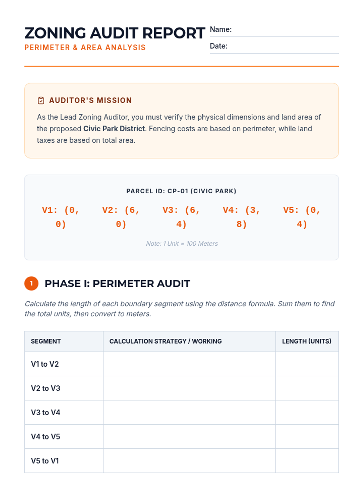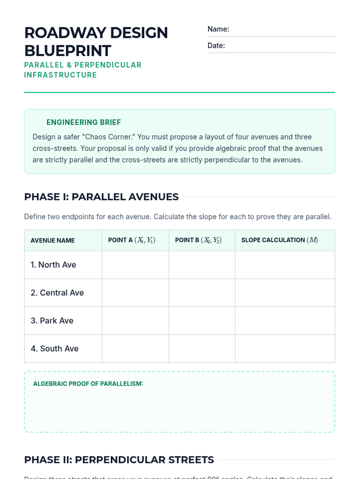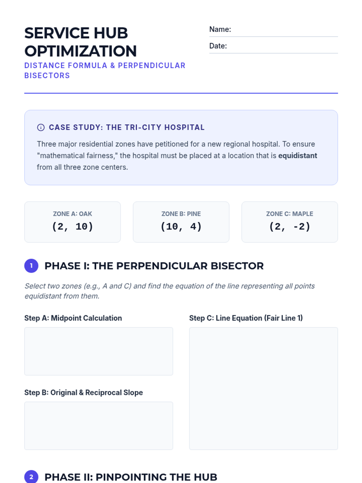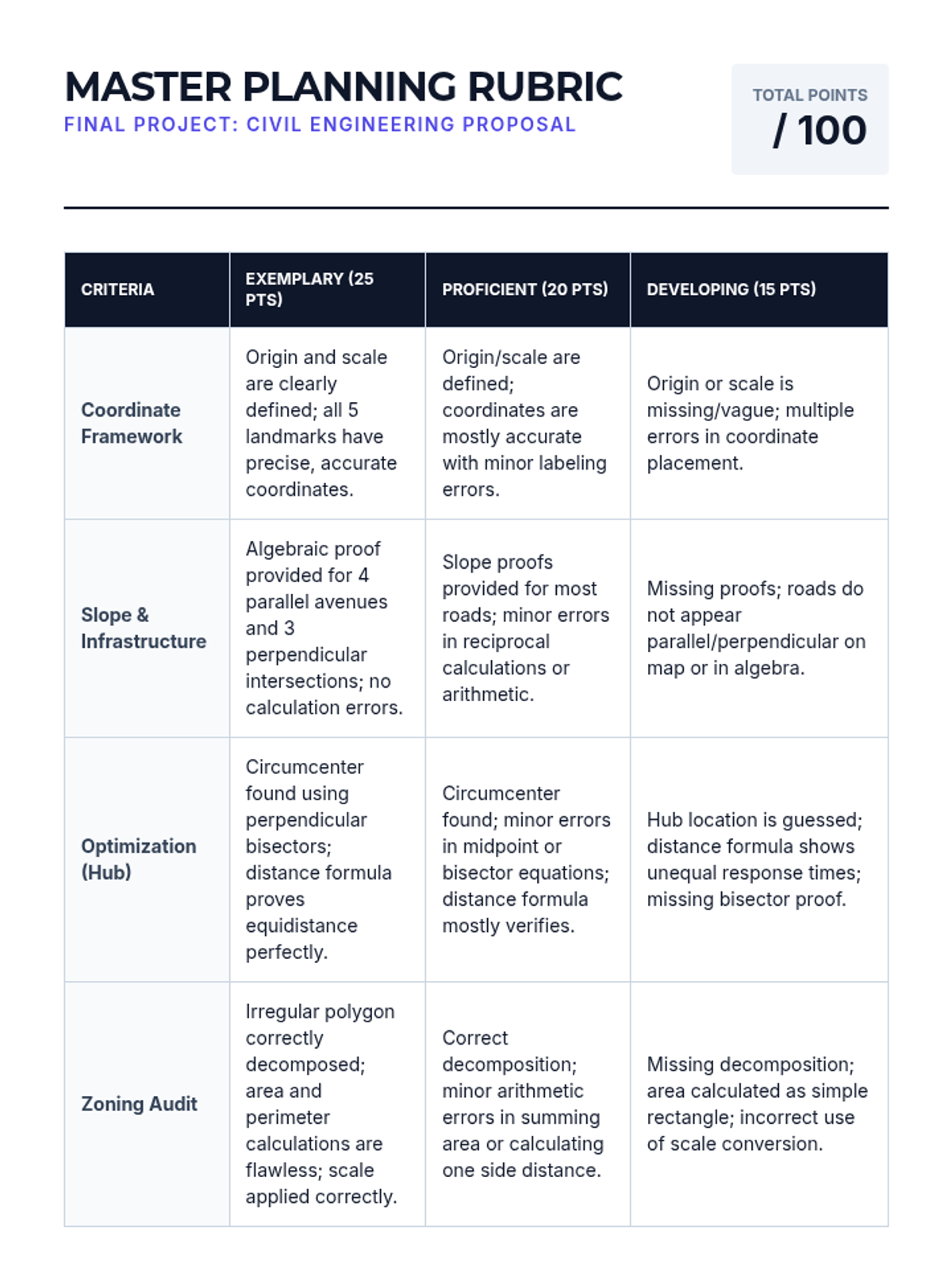 A project-based geometry unit where students apply coordinate geometry and algebraic proofs to urban planning, designing city grids and optimizing infrastructure placement.