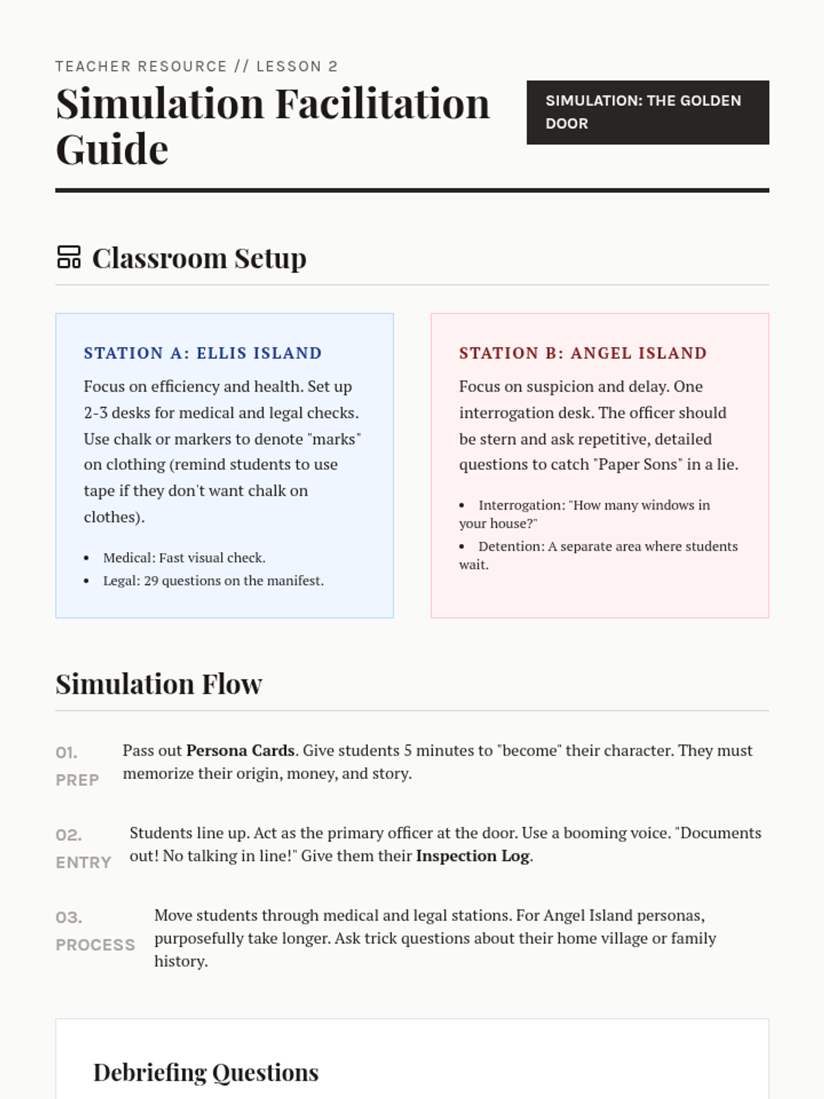 This 8th-grade history sequence explores the transformative period of the Gilded Age through the lens of urbanization and immigration. Students analyze push and pull factors, simulate the immigrant experience at Ellis and Angel Islands, investigate urban living conditions using Jacob Riis's photography, and examine the rise of nativism and social reform movements.