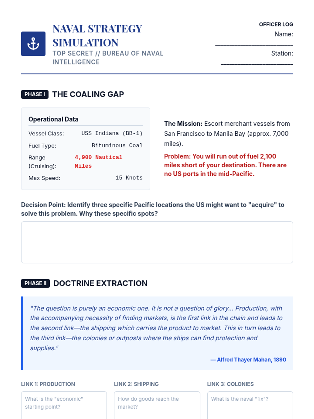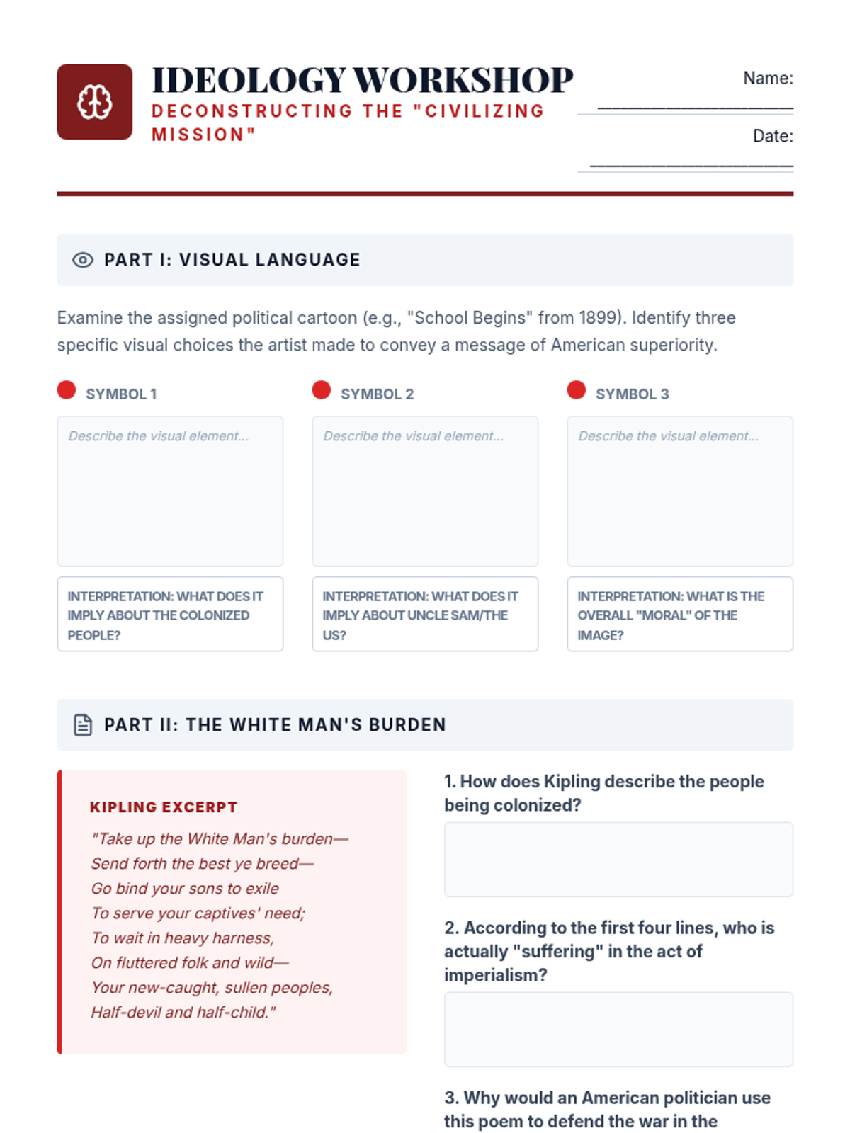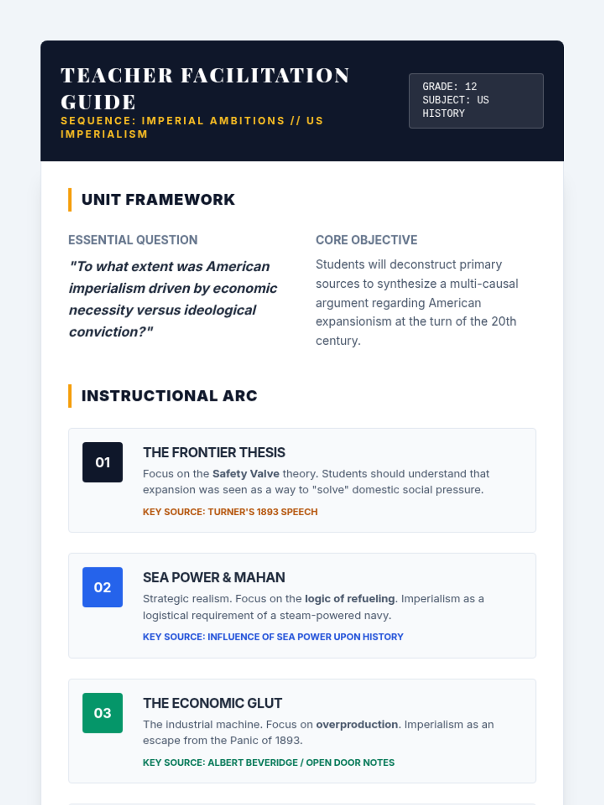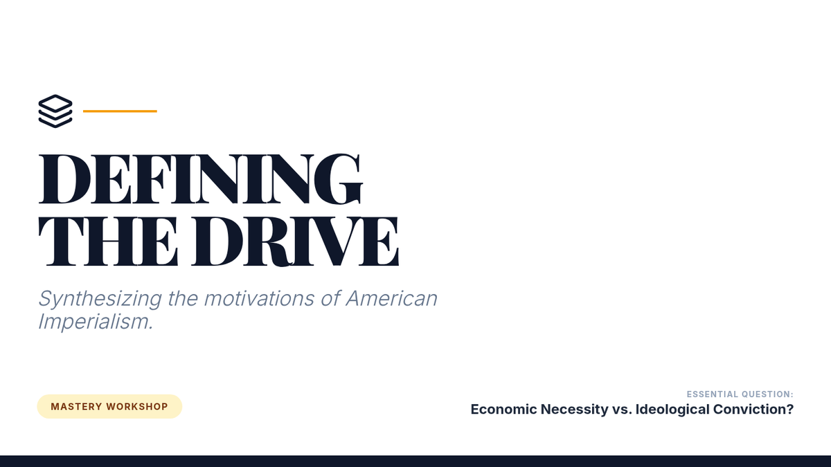A 12th-grade history sequence exploring the transition of the United States into a global power at the turn of the 20th century. Students analyze psychological, strategic, economic, and ideological motivations through primary source analysis and inquiry-based activities.
