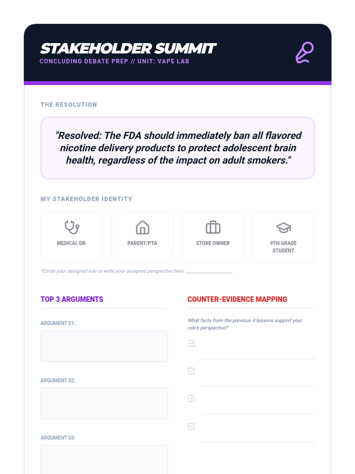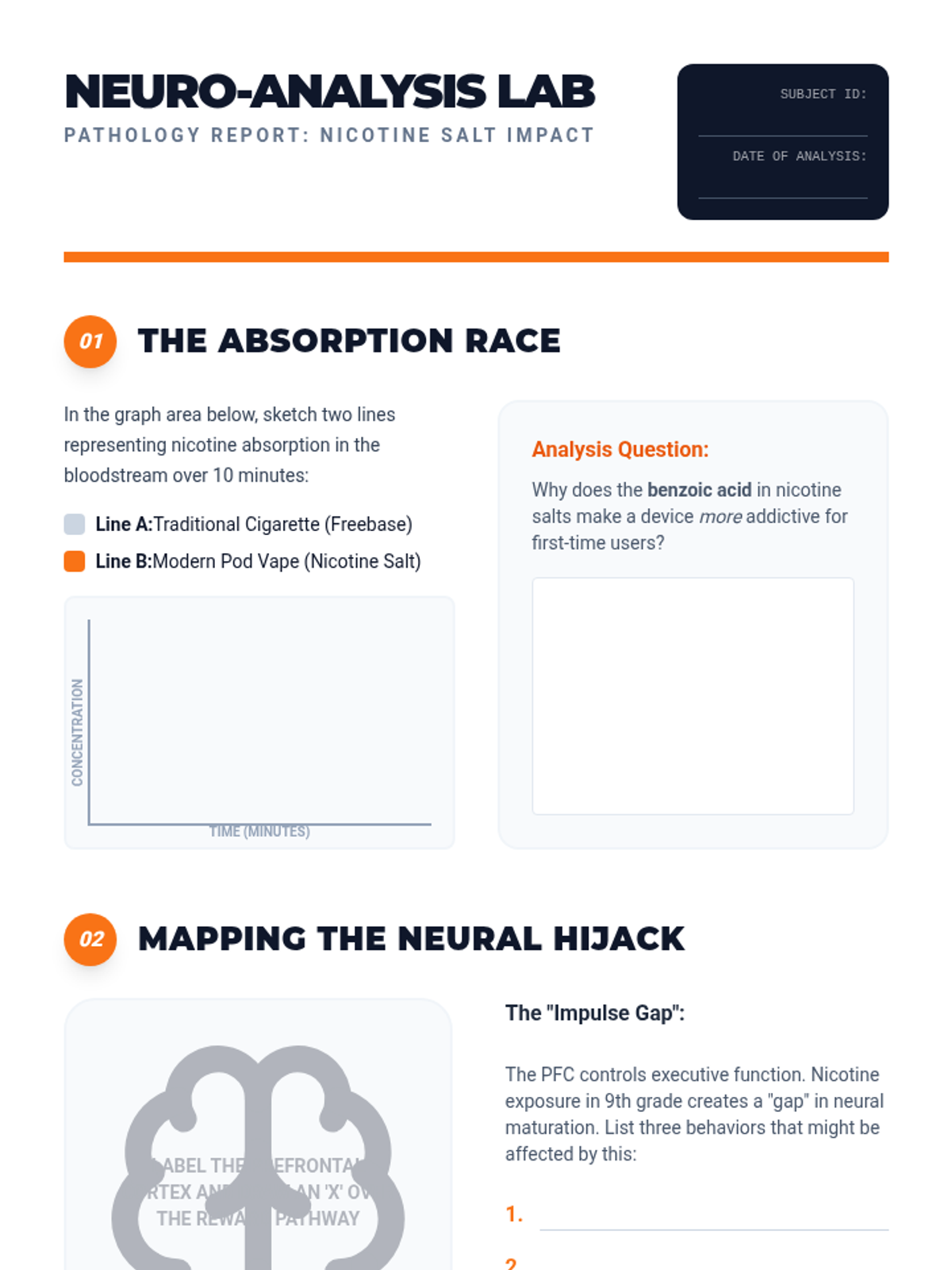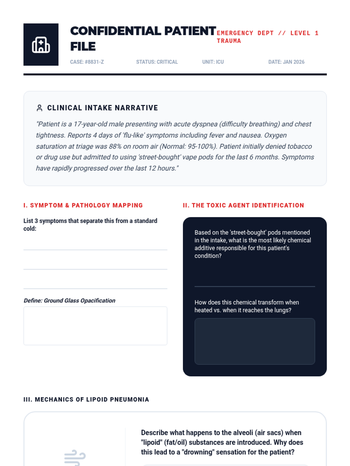 A comprehensive 9th-grade health sequence investigating the chemical, neurological, and physiological impacts of e-cigarettes and vaping. Students transition from deconstructing the physical nature of aerosols to analyzing complex medical case studies and regulatory challenges.