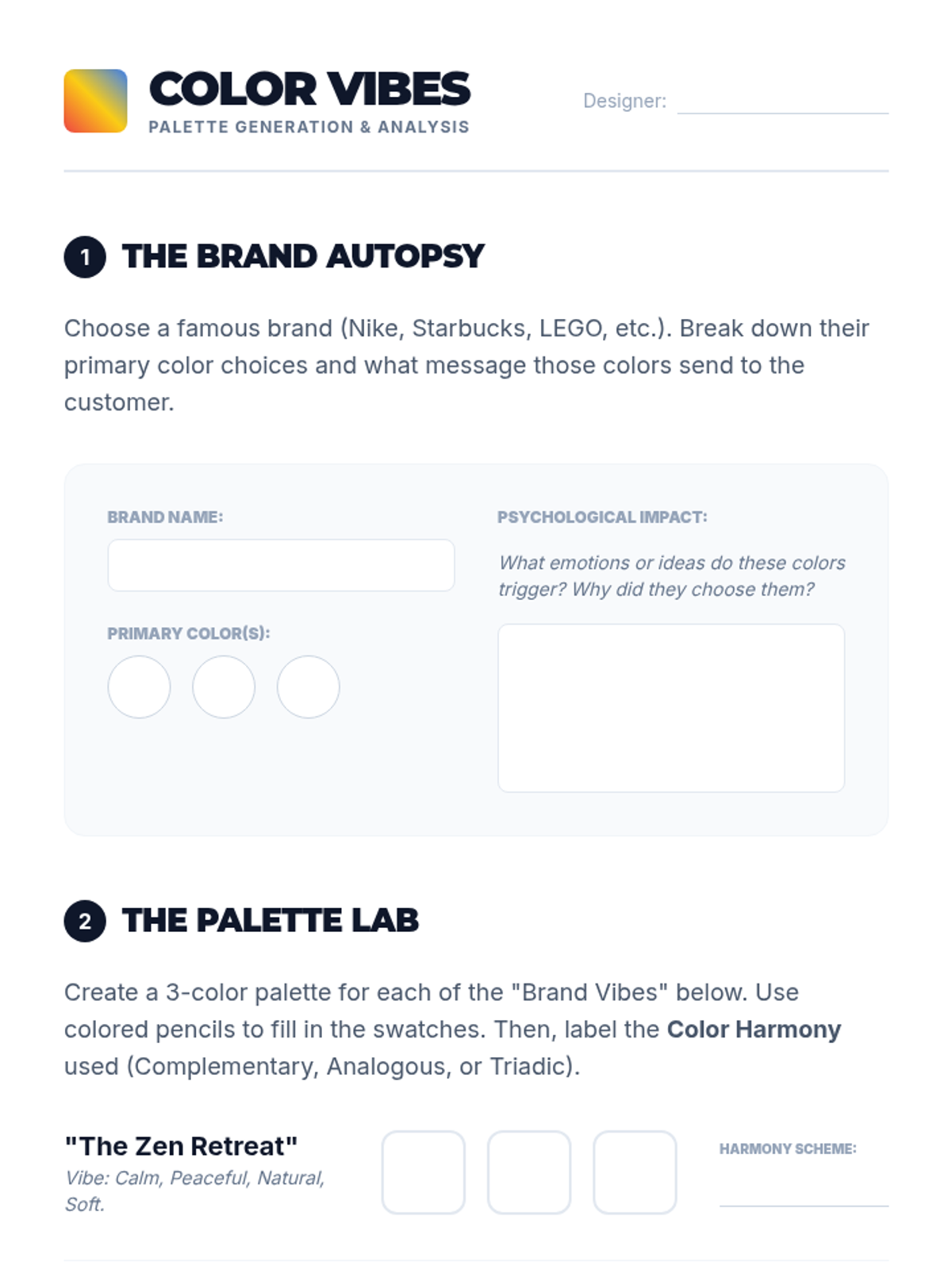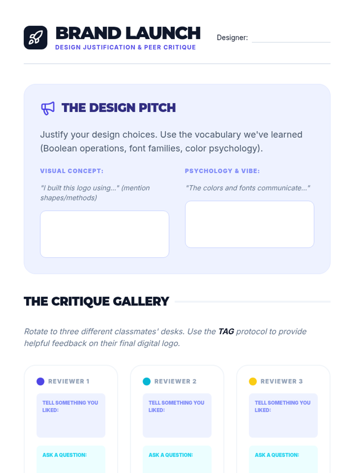 A comprehensive project-based sequence for 7th-grade students exploring the fundamentals of vector illustration, typography, color theory, and brand identity design. Students progress from technical shape manipulation to conceptualizing and digitizing their own personal brand logo.