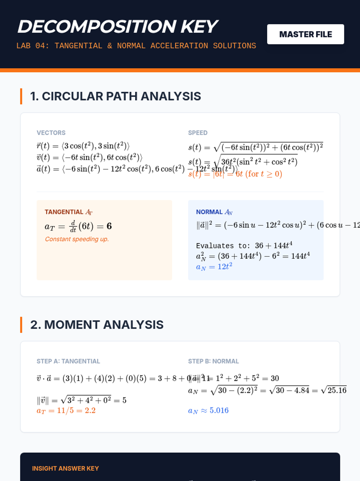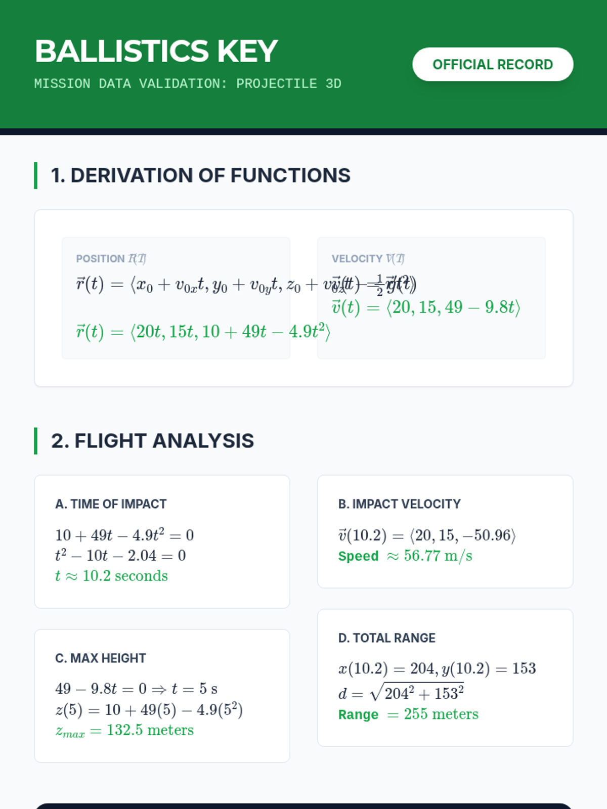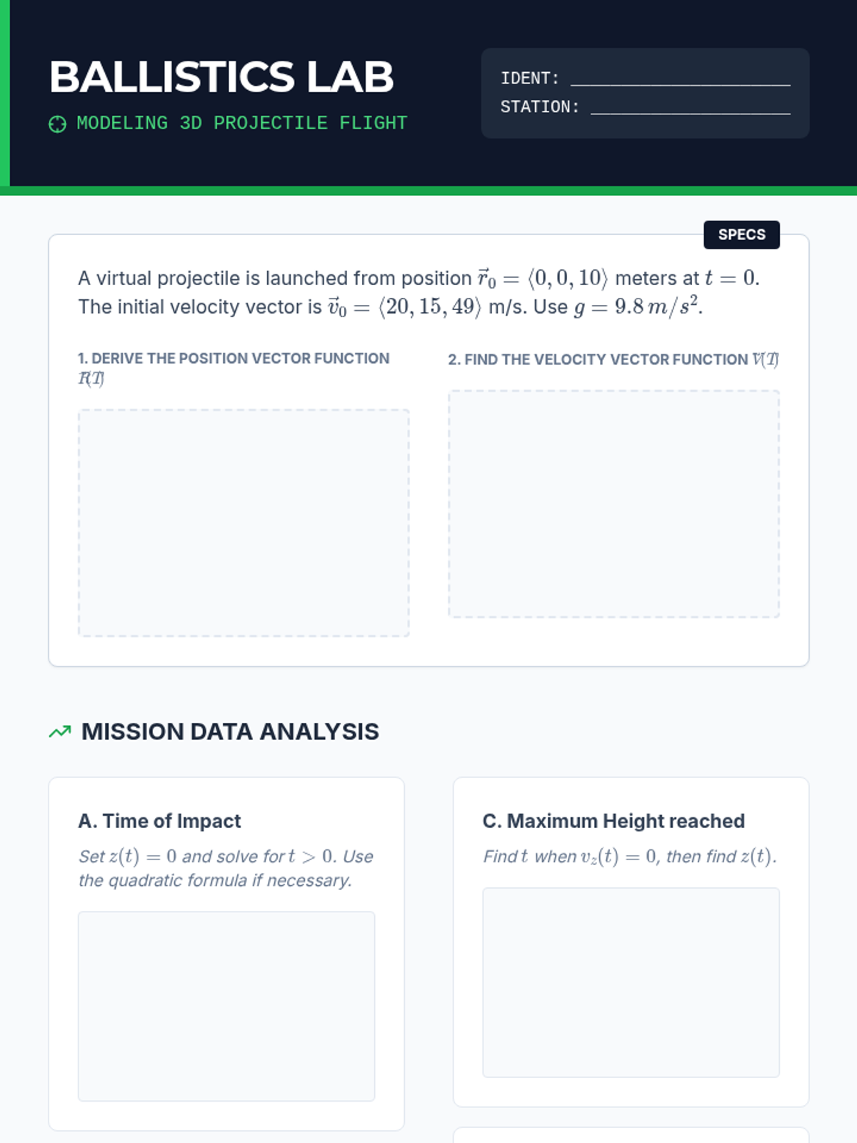 This sequence applies vector calculus to particle motion in two and three dimensions, interpreting derivatives and integrals as velocity, acceleration, and displacement to model real-world kinematics.