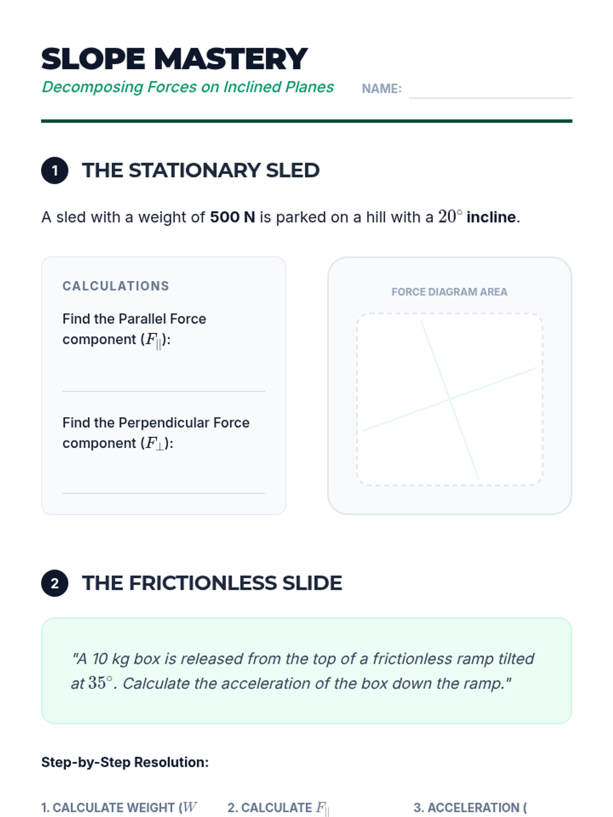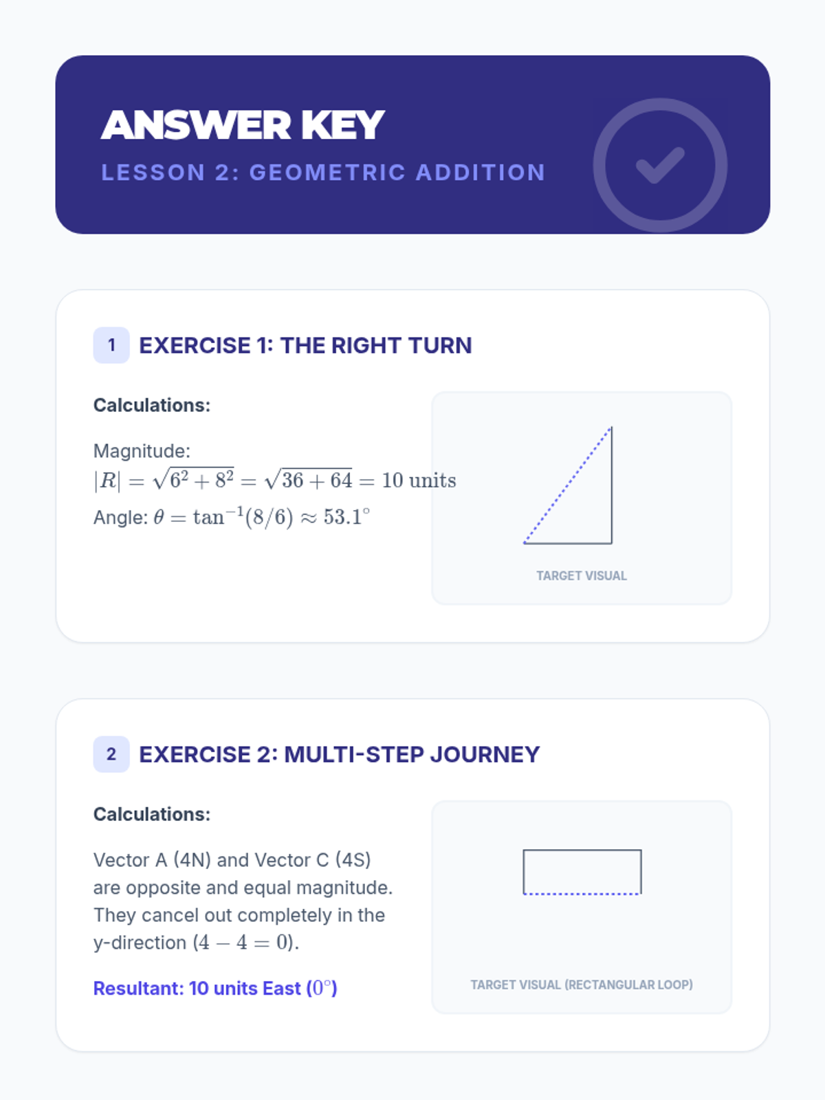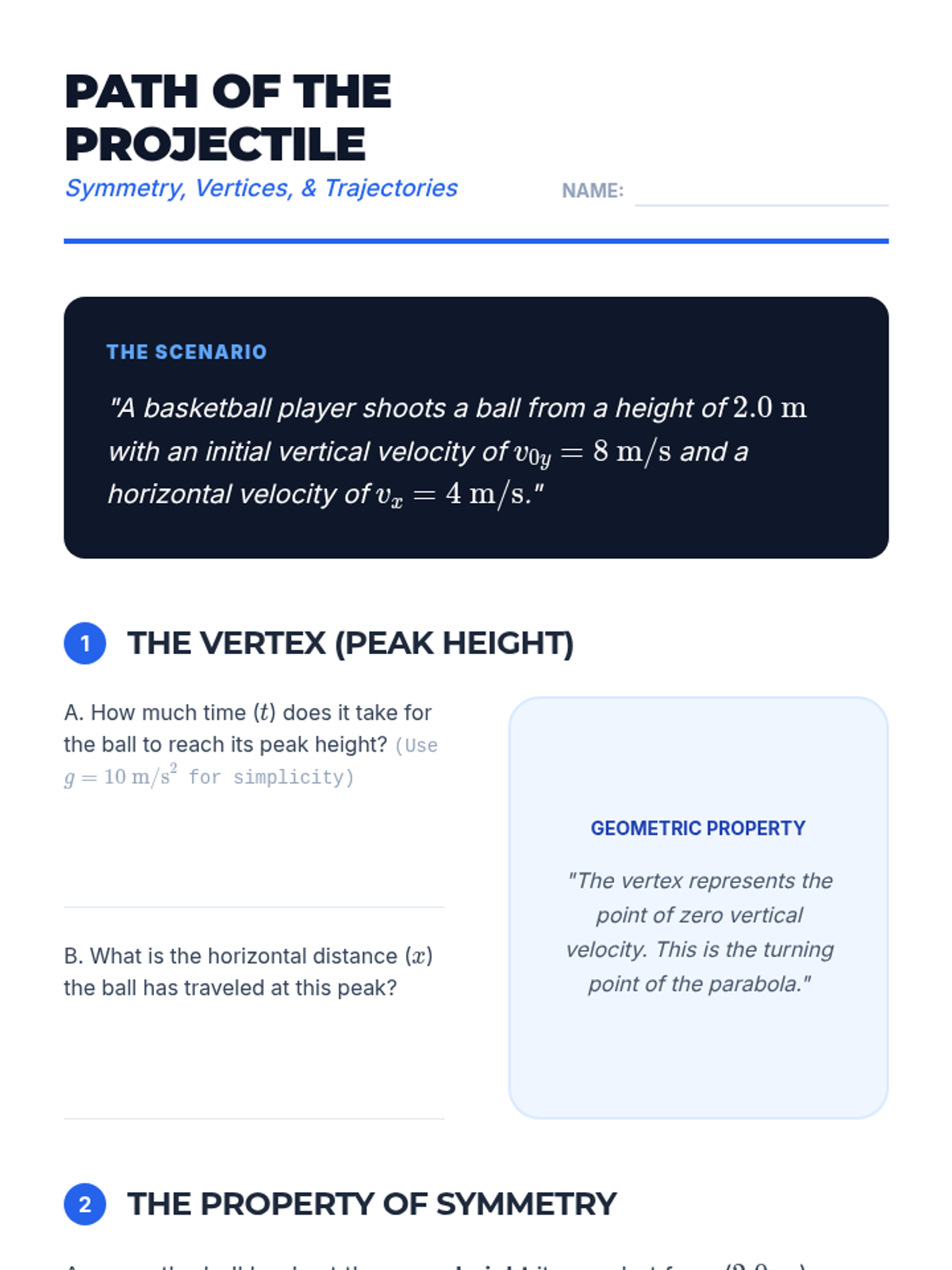 This skill-building sequence focuses on the application of coordinate geometry to solve physics problems involving vectors and kinematics. Students progress from 2D coordinate systems to 3D spatial vectors and parabolic trajectories, mastering the translation of physical motion into geometric models.