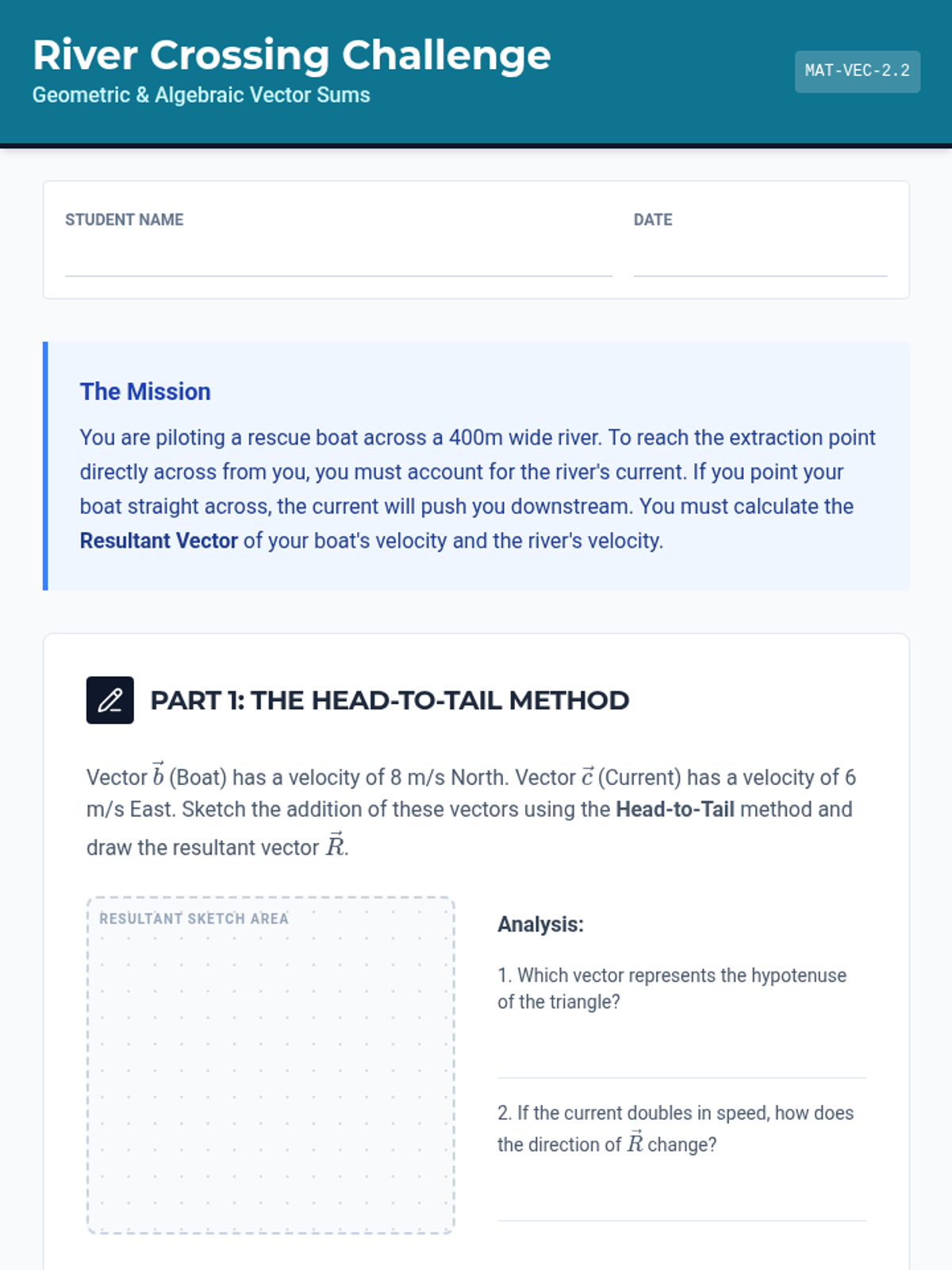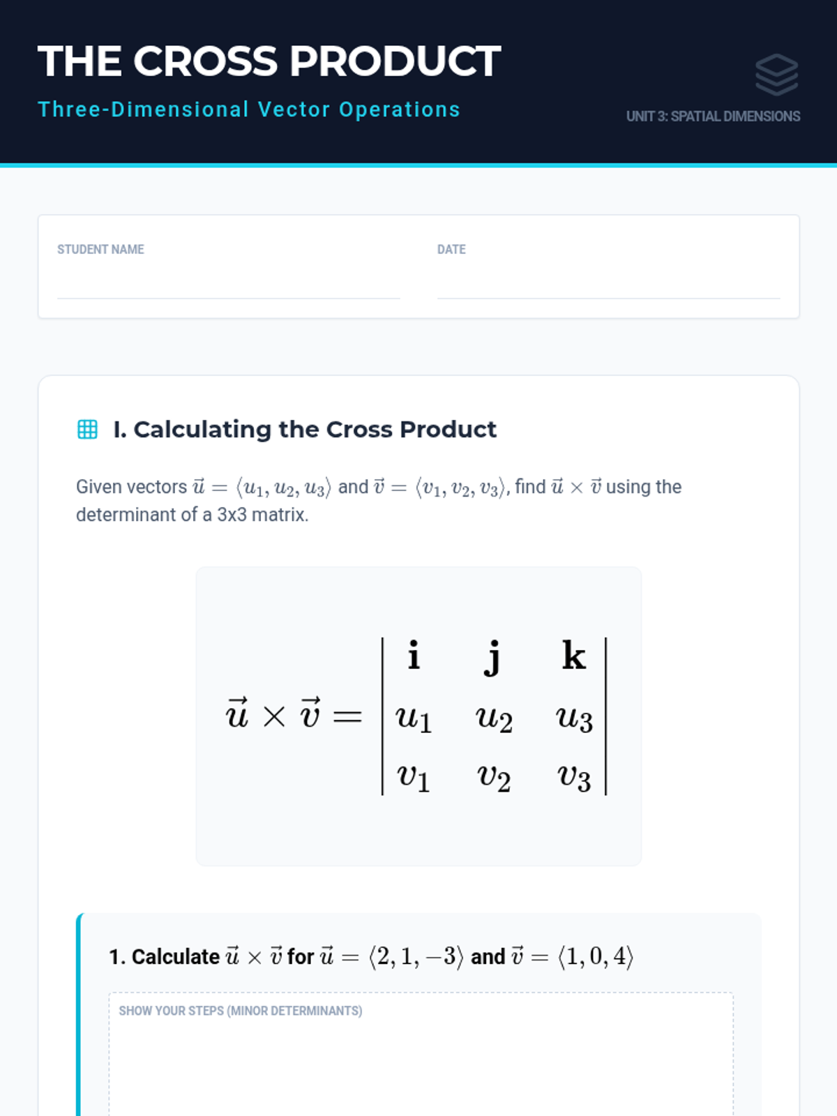 A comprehensive 11th-grade mathematics unit on vector operations, transitioning from basic 2D component forms and geometric representations to advanced 3D cross products and real-world applications in physics and navigation.