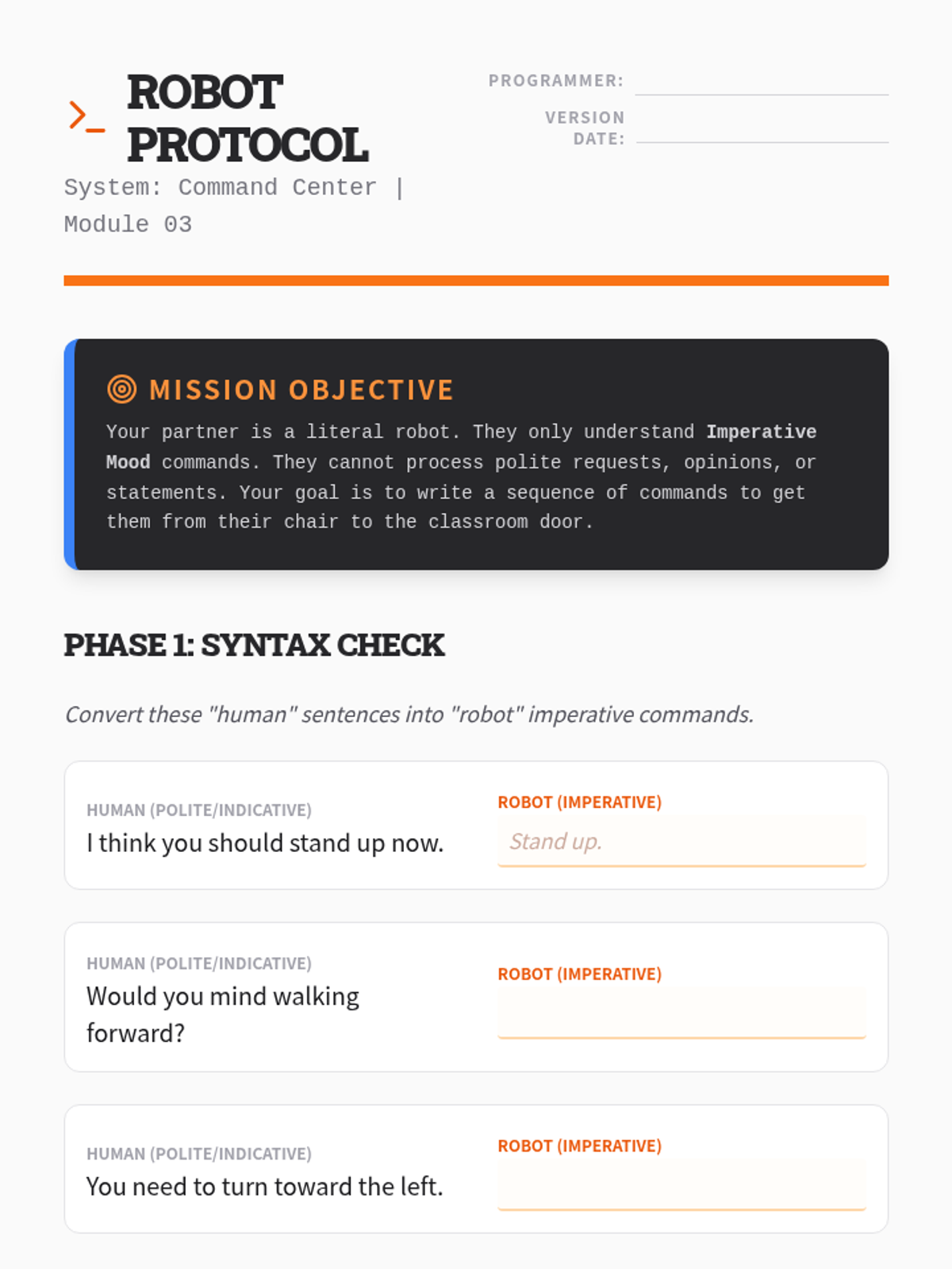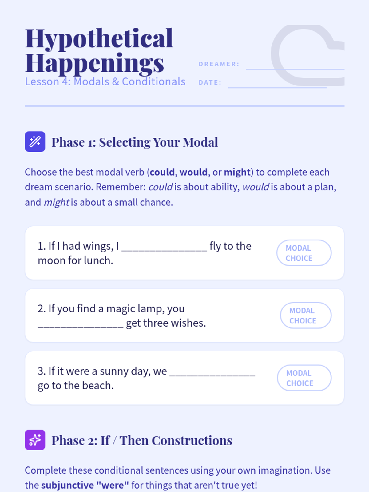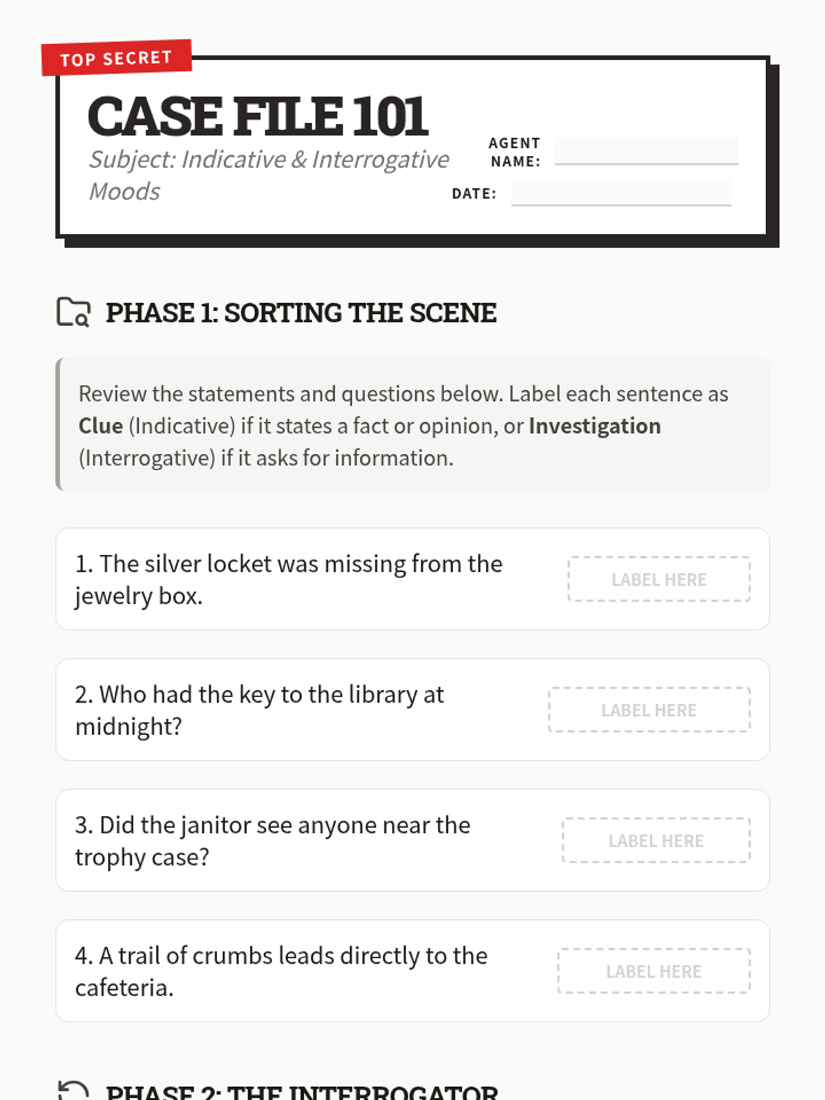 A comprehensive unit for 4th-grade students covering simple and progressive verb tenses, as well as indicative, interrogative, imperative, and conditional moods through a mix of detective-themed inquiries and workshop-style practice.