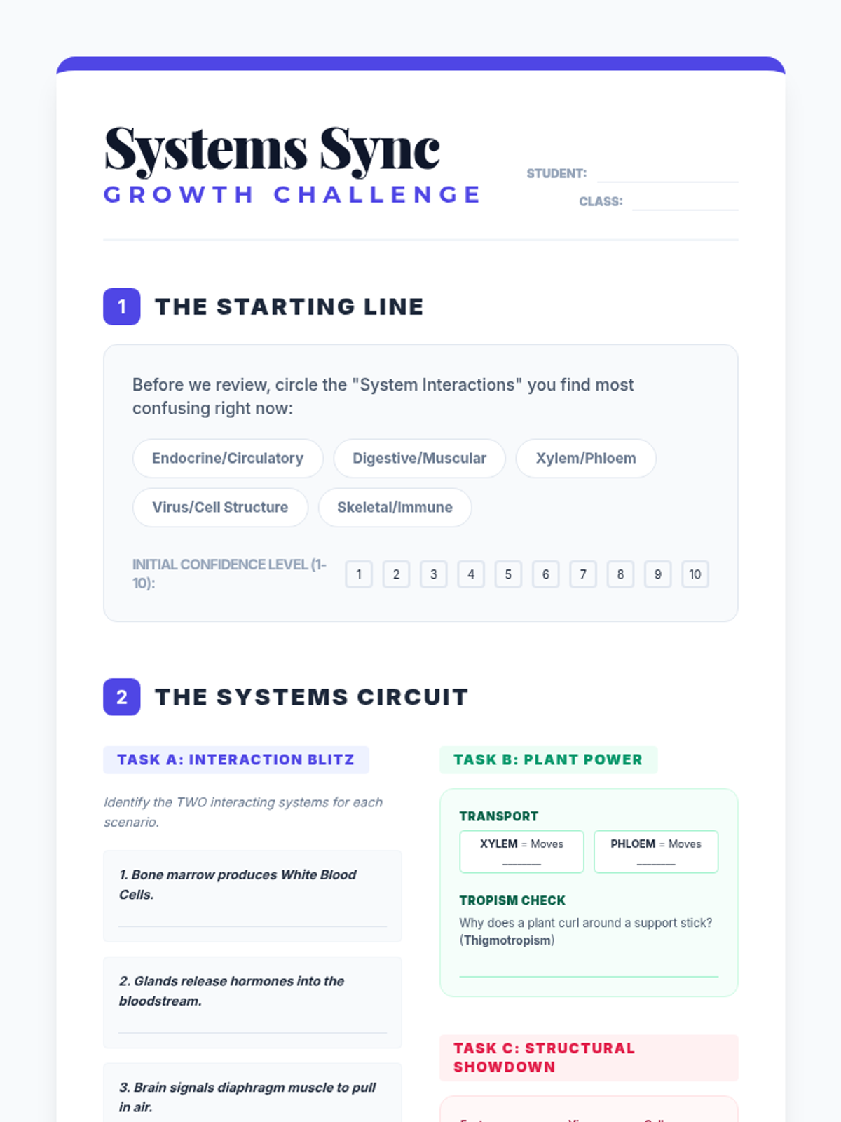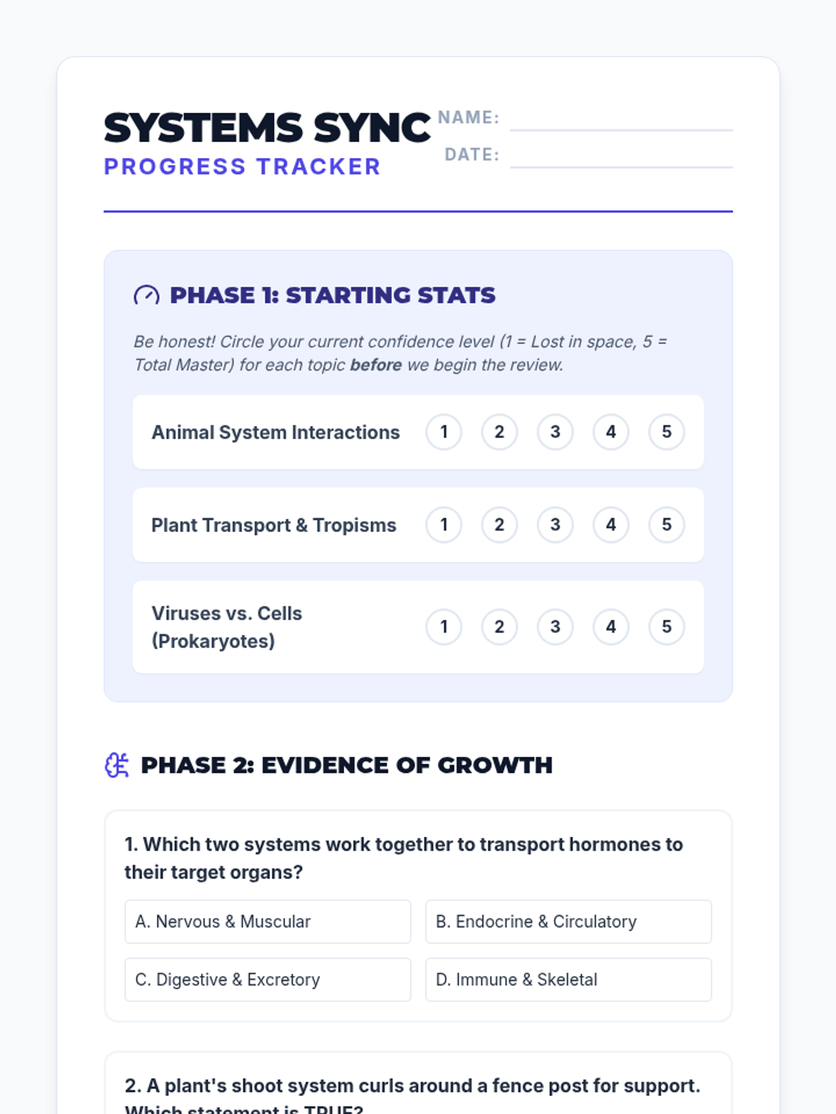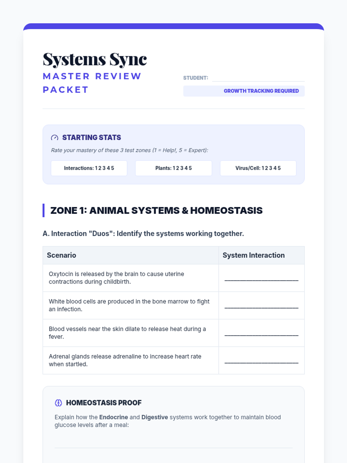 A collection of unit review materials for middle school science, specifically targeting 6th grade living things and 7th grade body systems. These resources mirror local assessments to ensure student readiness.