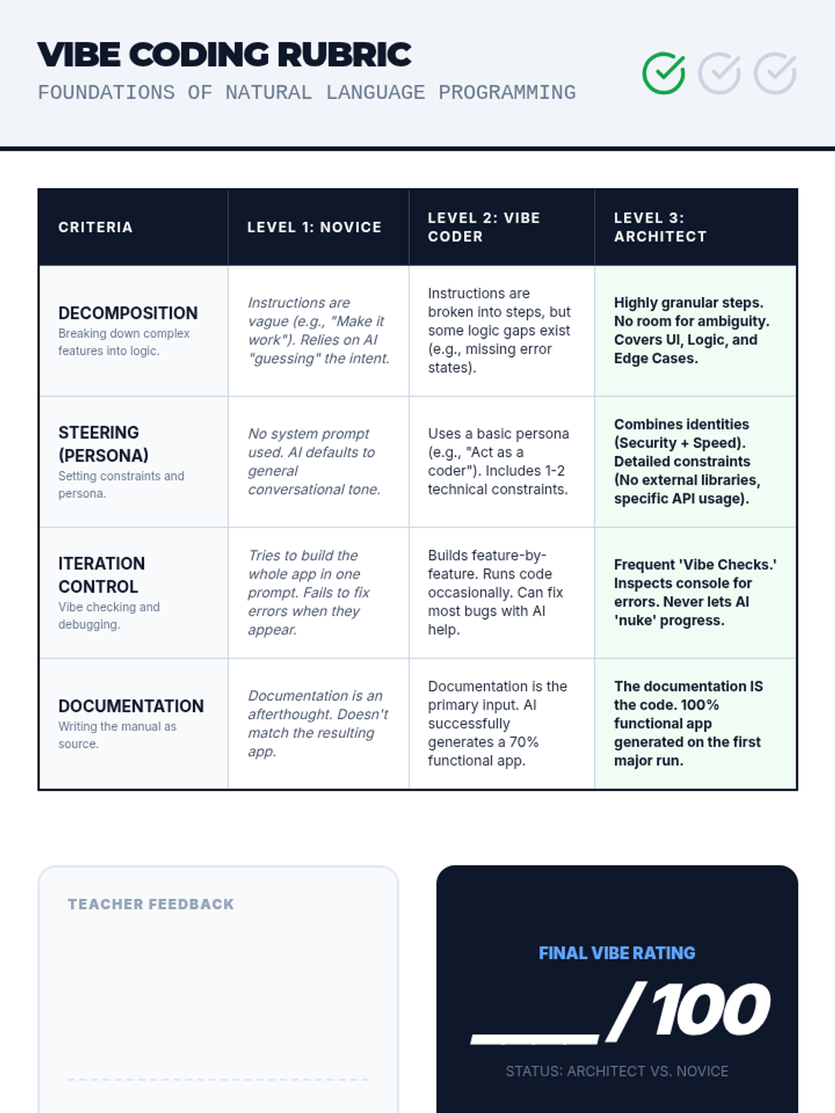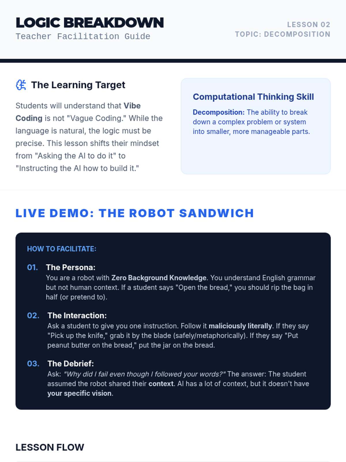 This sequence explores the transition from traditional syntax-based programming to natural language 'vibe coding'. Students will learn about the history of abstraction, computational thinking through decomposition, and the art of prompt engineering to build software with AI.