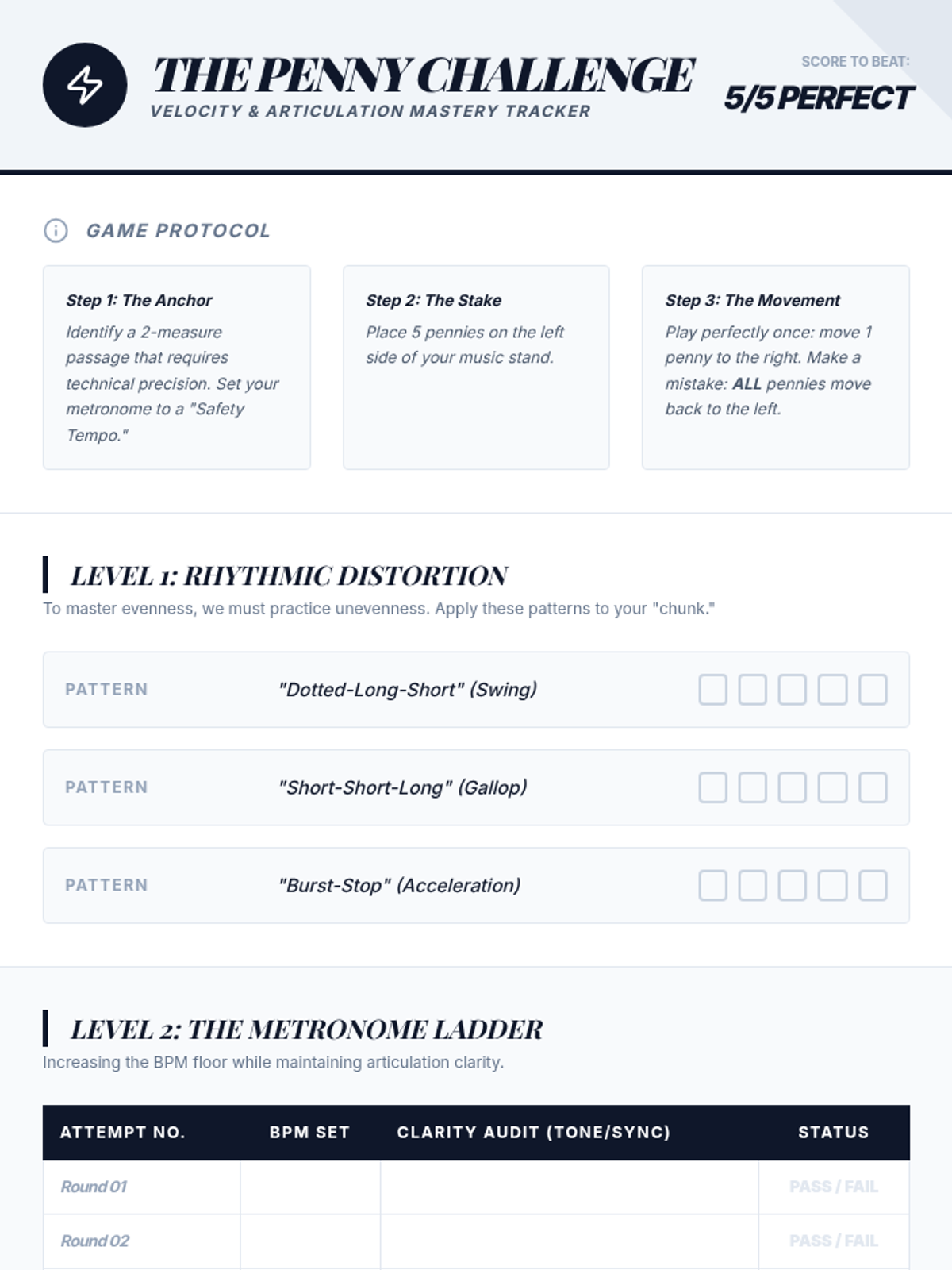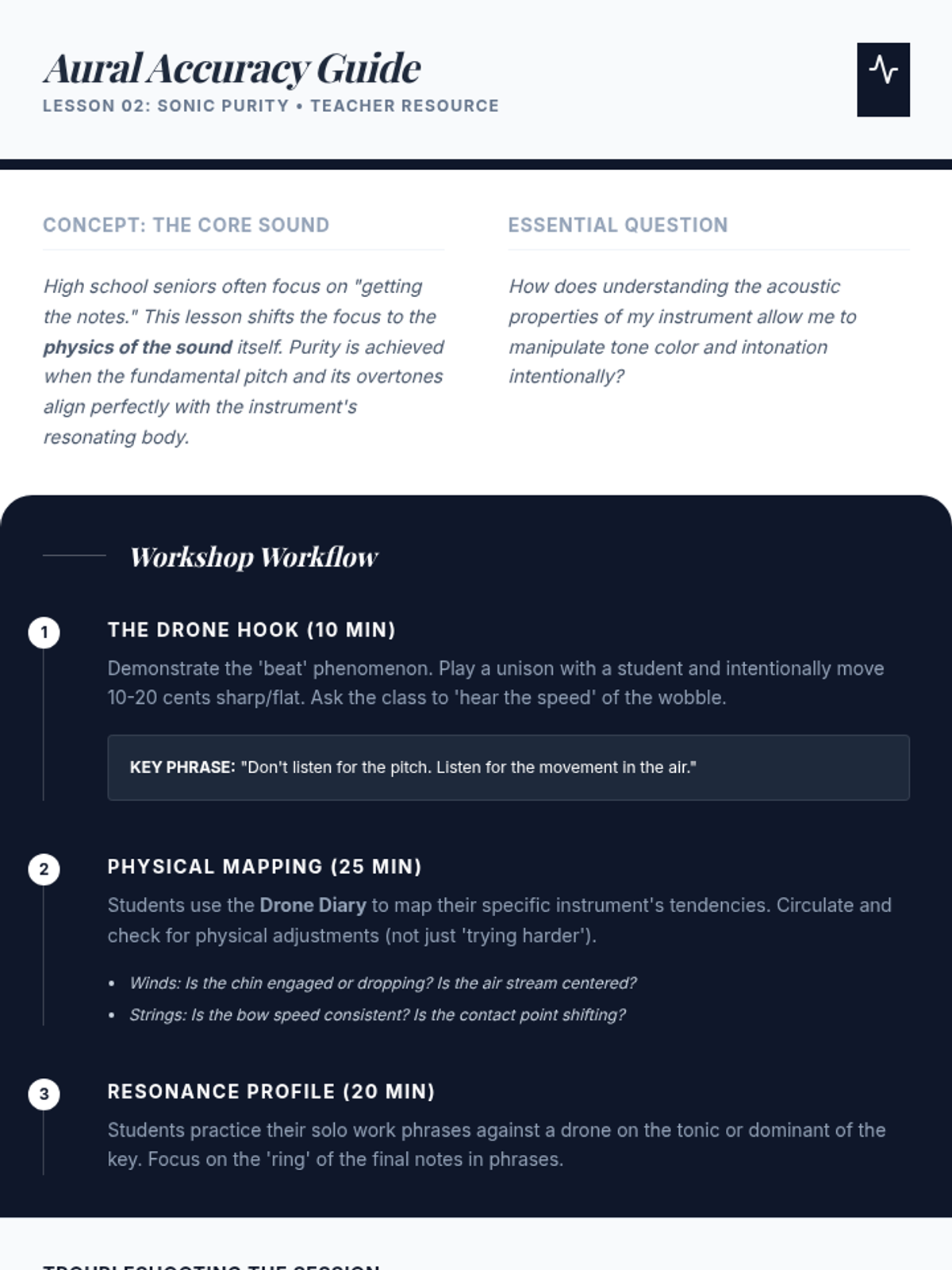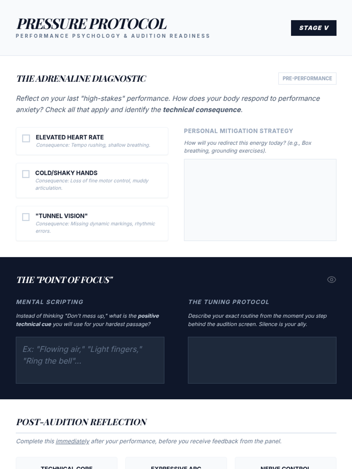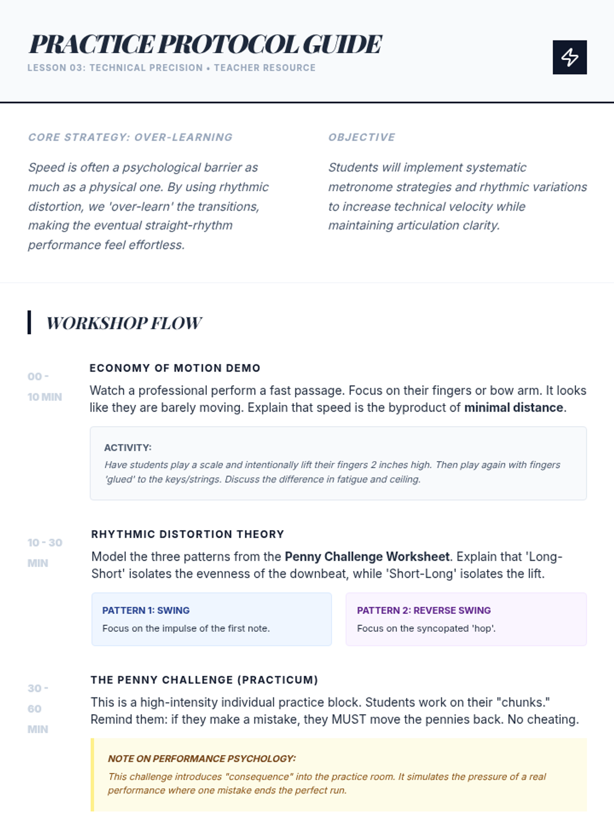 A comprehensive 5-lesson sequence designed for advanced high school musicians to bridge the gap between technical mechanics and expressive artistry. Students engage in self-diagnostic analysis, master technical strategies for tone and velocity, and conclude with a professional-style mock audition.