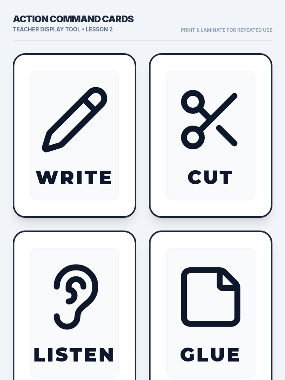 A specialized sequence designed to support 4th-grade students with working memory challenges by teaching them to use visual icons and checklists as external memory aids. The sequence builds from symbol recognition to independent task completion using visual command lines.