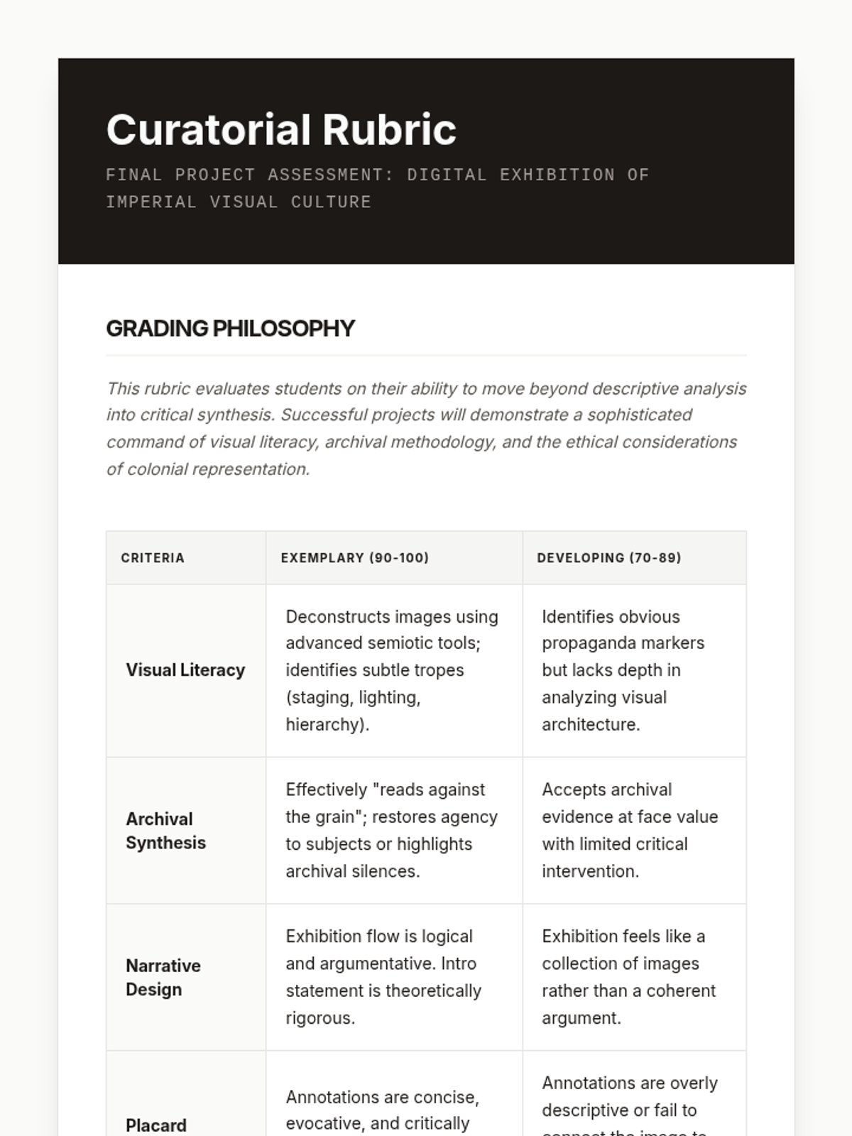 A graduate-level sequence exploring how visual culture, including journalism, cartoons, photography, and exhibitions, was used to construct racial hierarchies and manufacture public consent for US overseas expansion. Students will develop visual literacy and critical archival skills, culminating in a curated digital exhibition project.
