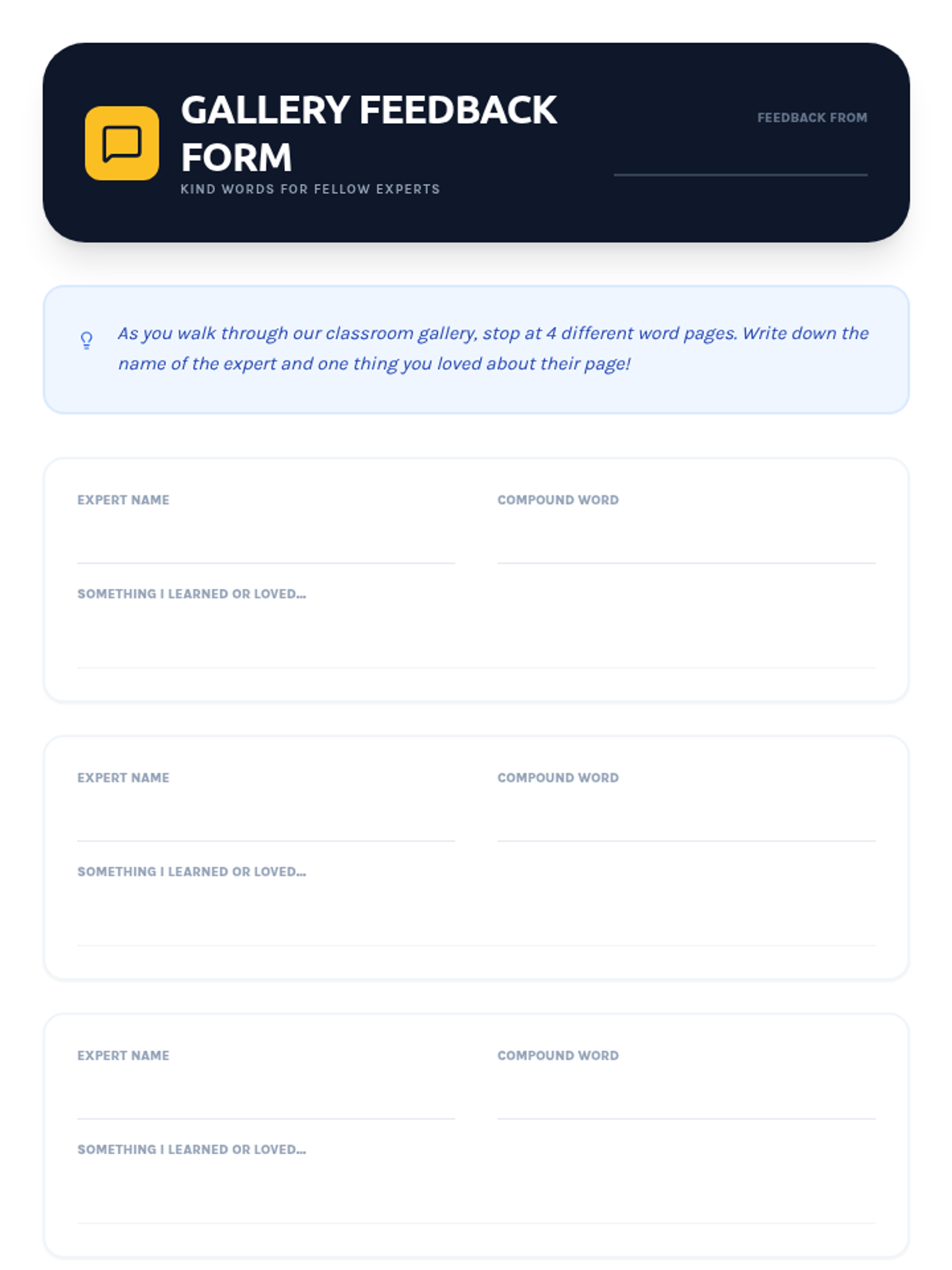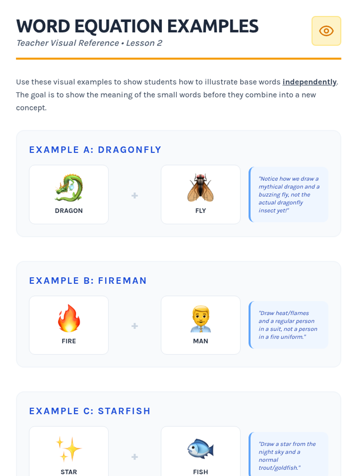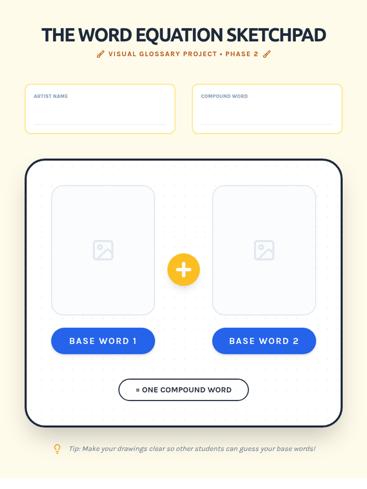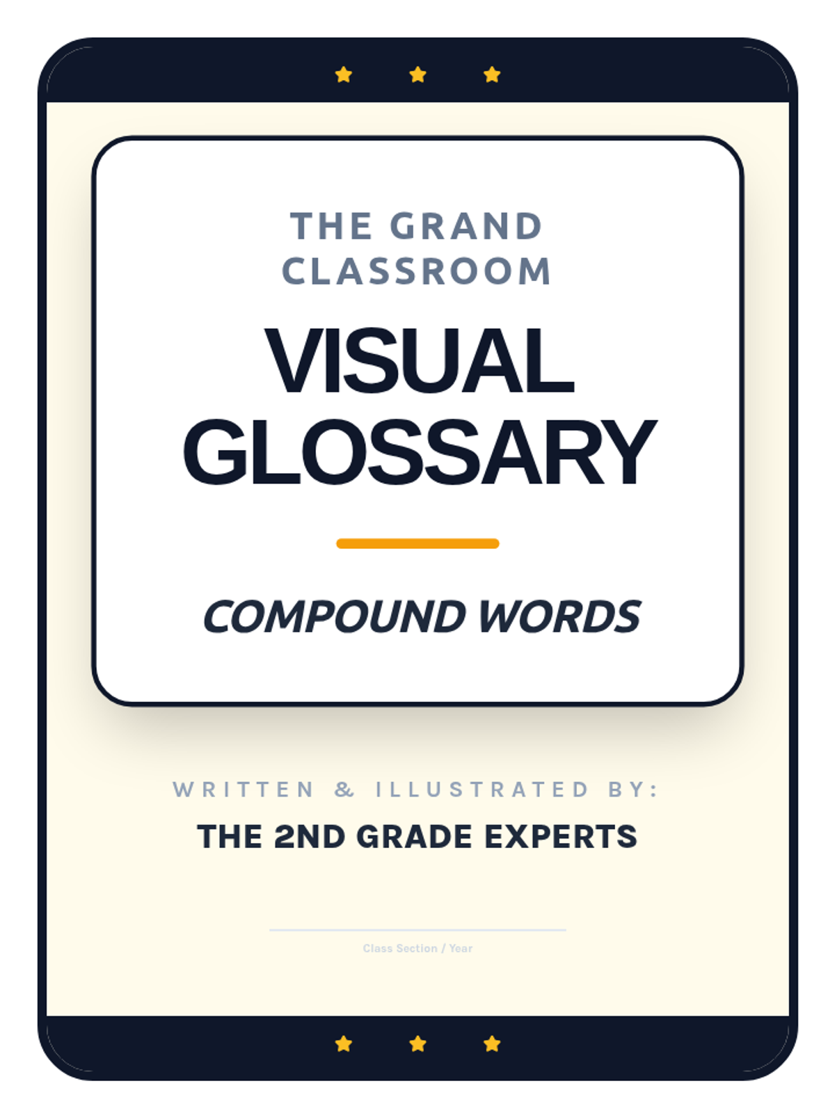A project-based unit where 2nd-grade students create a 'Visual Glossary of Compound Words'. Students research, illustrate, and define compound terms to publish a collaborative book for their classroom library, focusing on word structure and visual communication.
