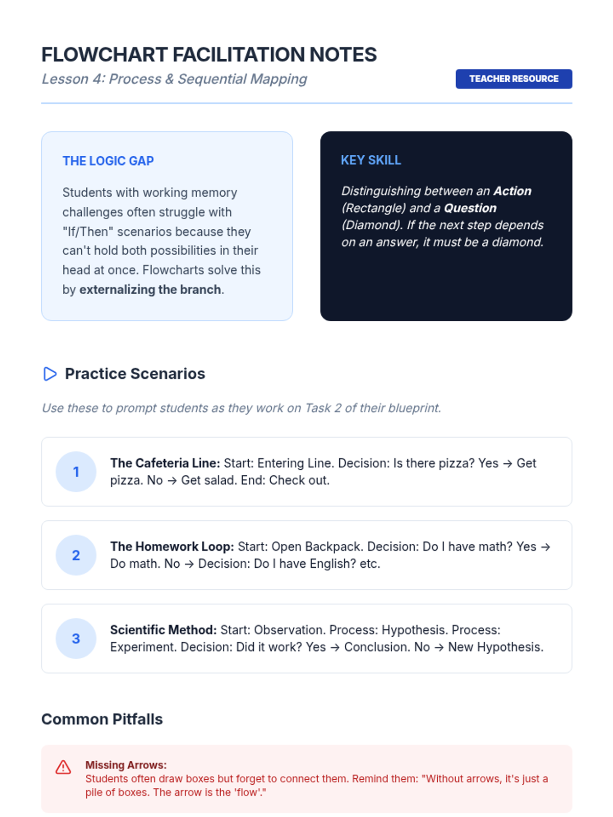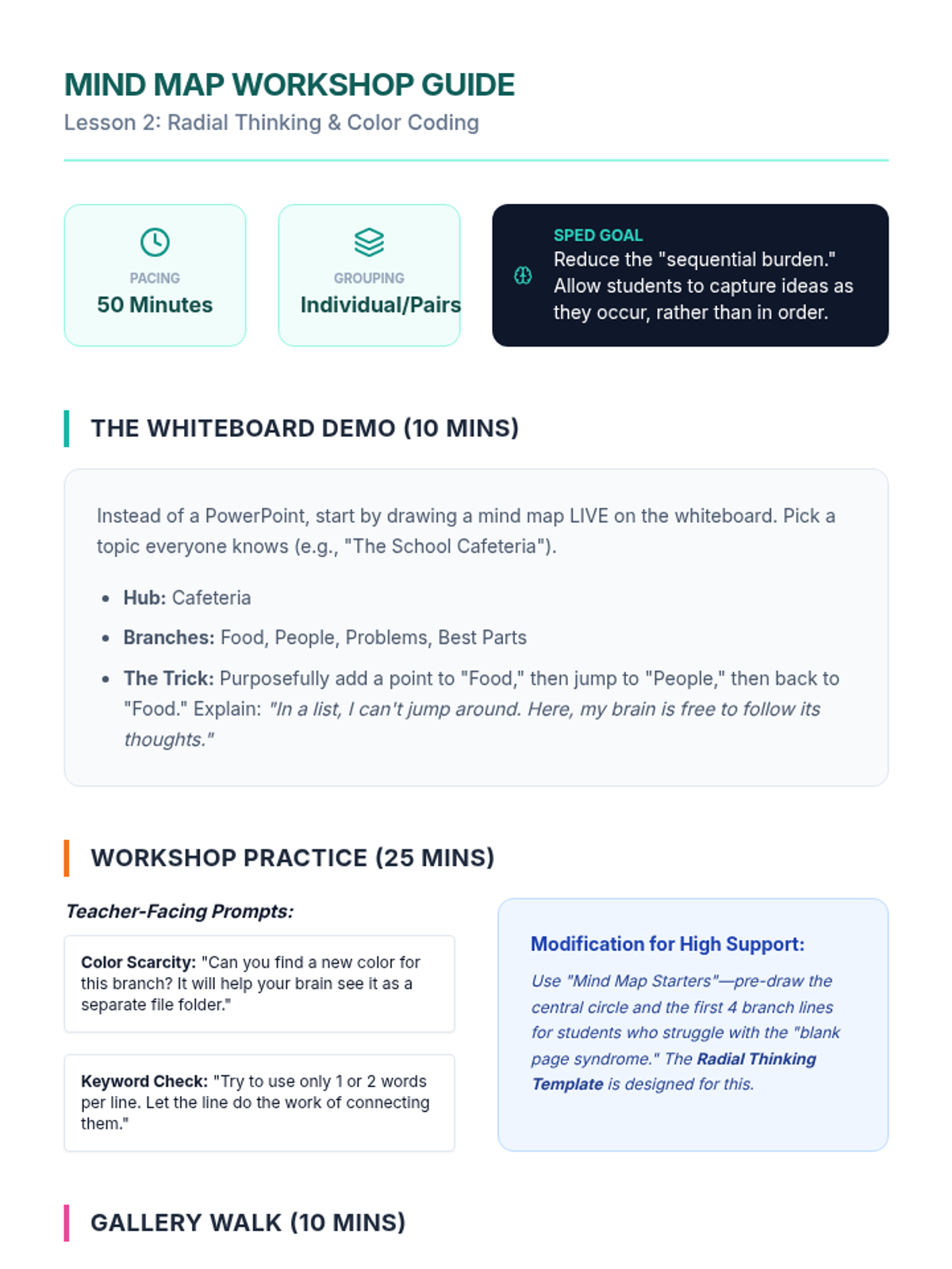 A comprehensive sequence designed for 9th-grade students who struggle with working memory and linear note-taking. This unit focuses on visual mapping, mind mapping, sketchnoting, and flowcharting as strategies to spatialized information and reduce cognitive load.