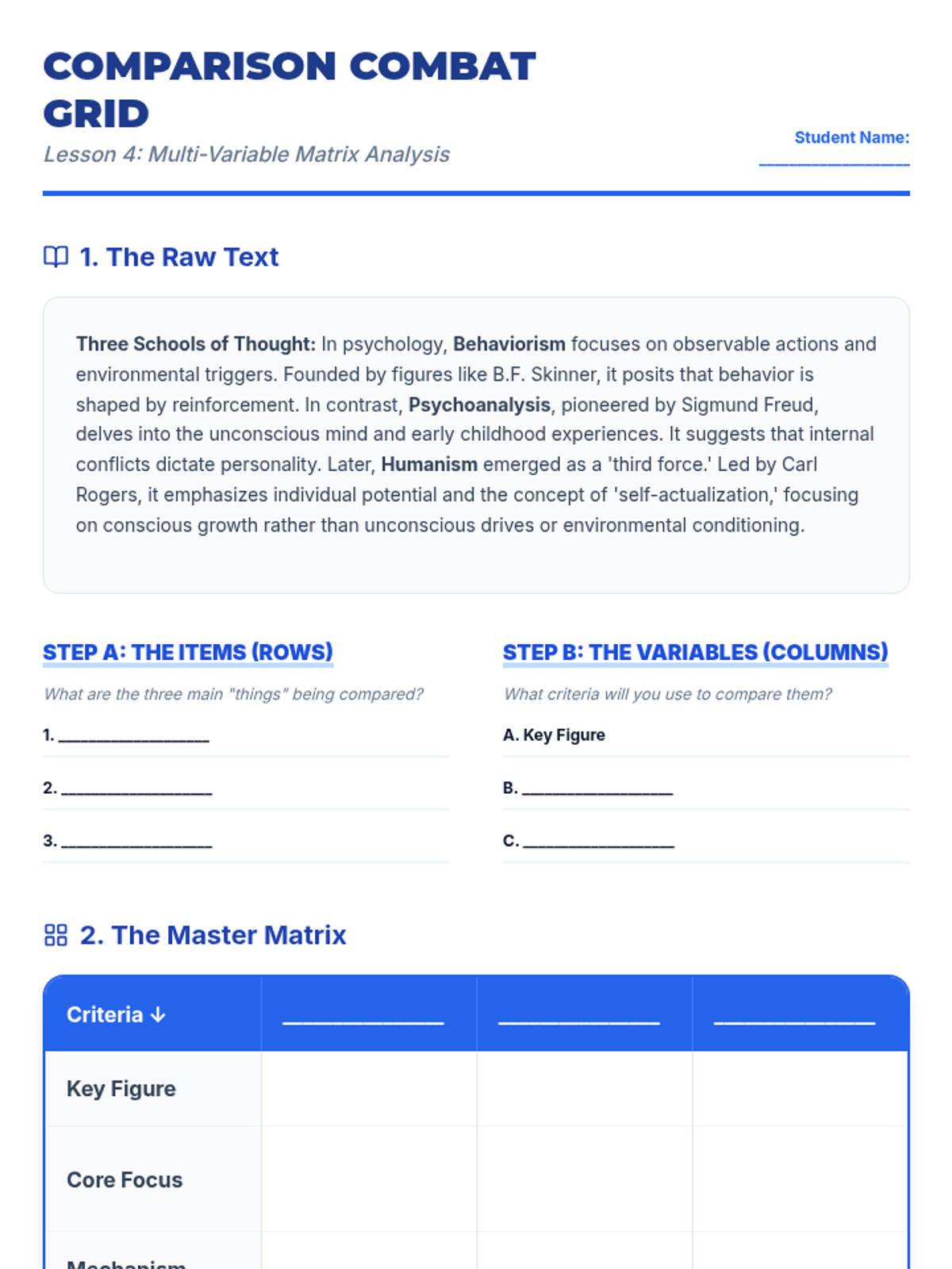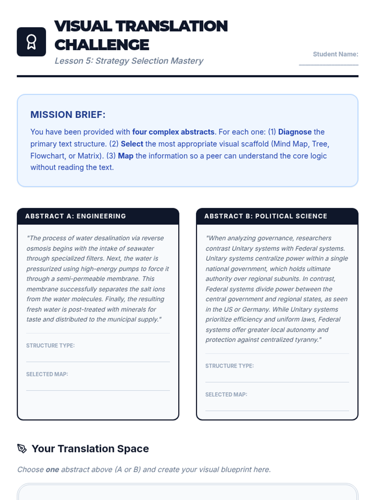 A comprehensive sequence designed for undergraduate students with working memory deficits, focusing on externalizing cognitive load through structural text analysis and visual mapping techniques. Students learn to match academic text structures with specific graphic organizers to enhance comprehension and retention.