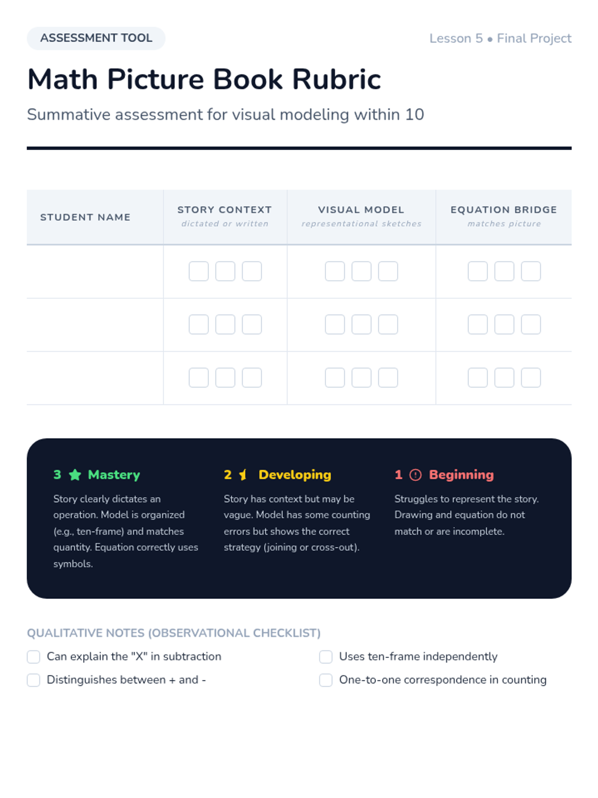 This Kindergarten math sequence teaches students to solve addition and subtraction word problems using visual drawing strategies. Moving from physical objects to representational sketches, students master 'drawing to add' and 'crossing out to subtract' within 10.