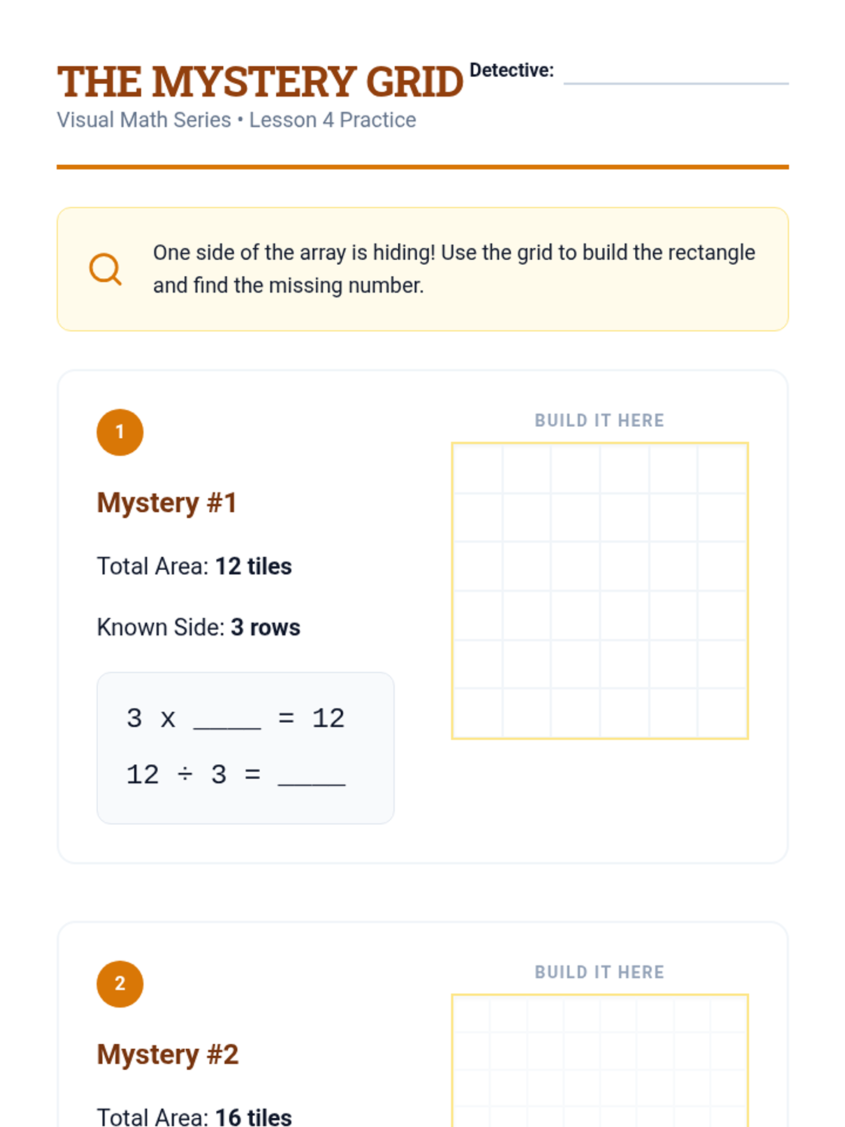 A specialized math sequence for 3rd Grade students focusing on visual strategies for multiplication and division. This unit uses arrays, equal groups, and area models to build conceptual understanding for students who benefit from spatial and visual support.