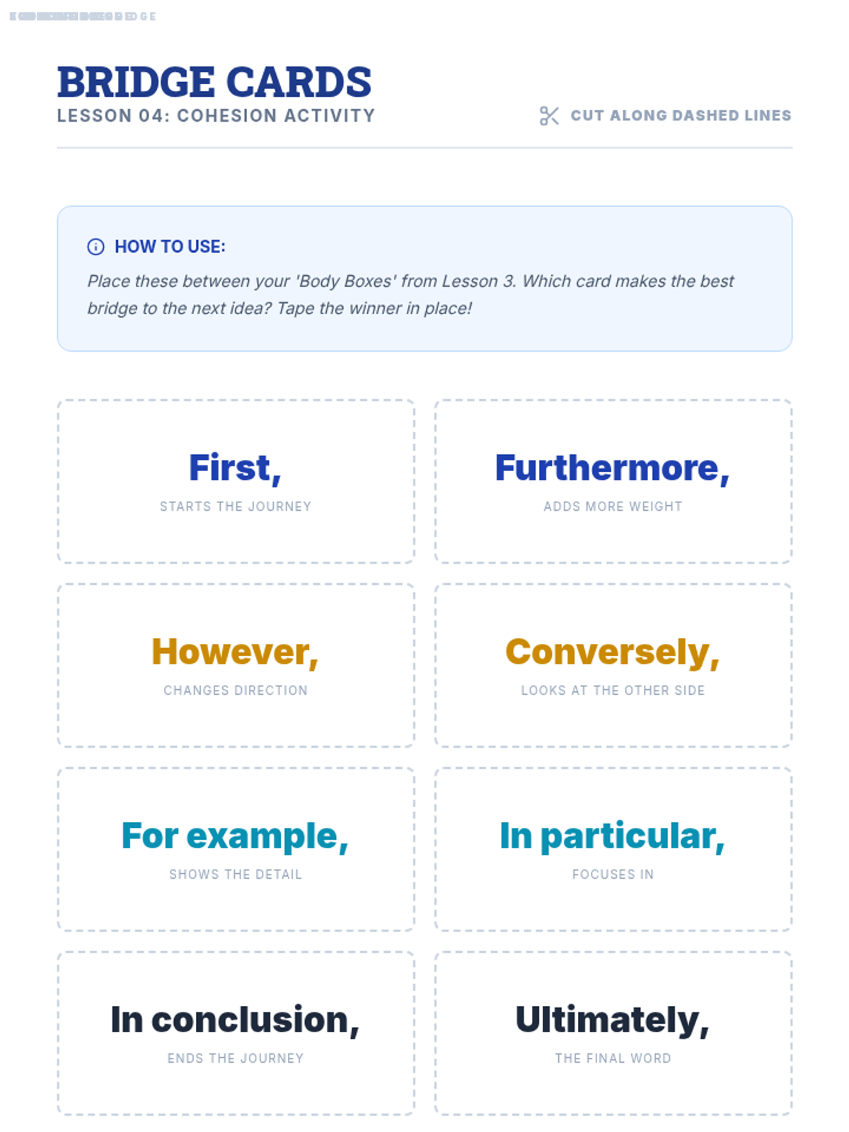 This writing sequence helps 9th-grade students with executive functioning challenges master expository structure through visual graphic organizers. Students progress from categorizing ideas to building thesis statements, aligning evidence, and drafting a cohesive essay.