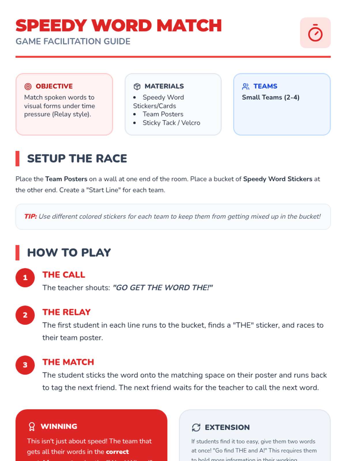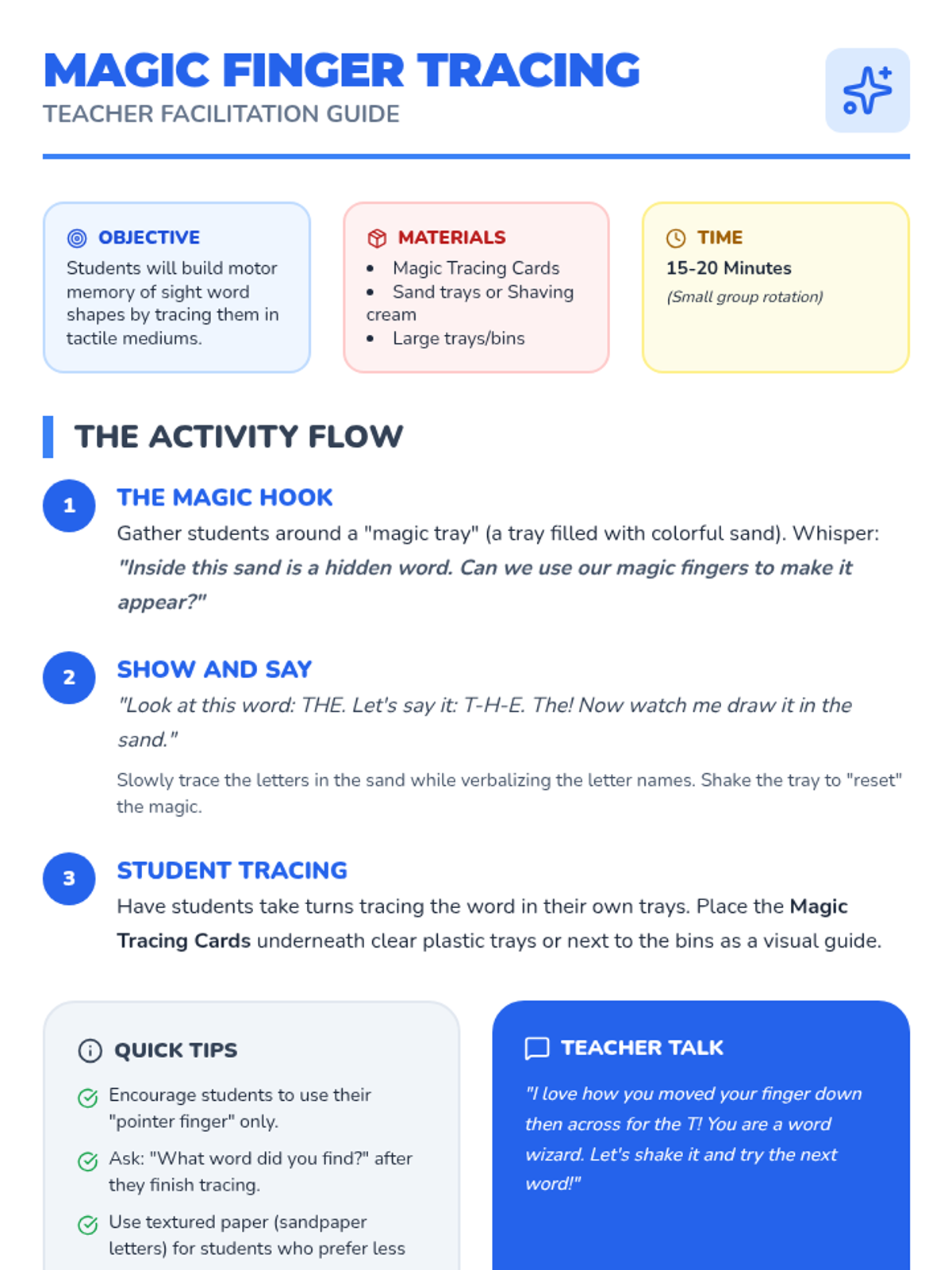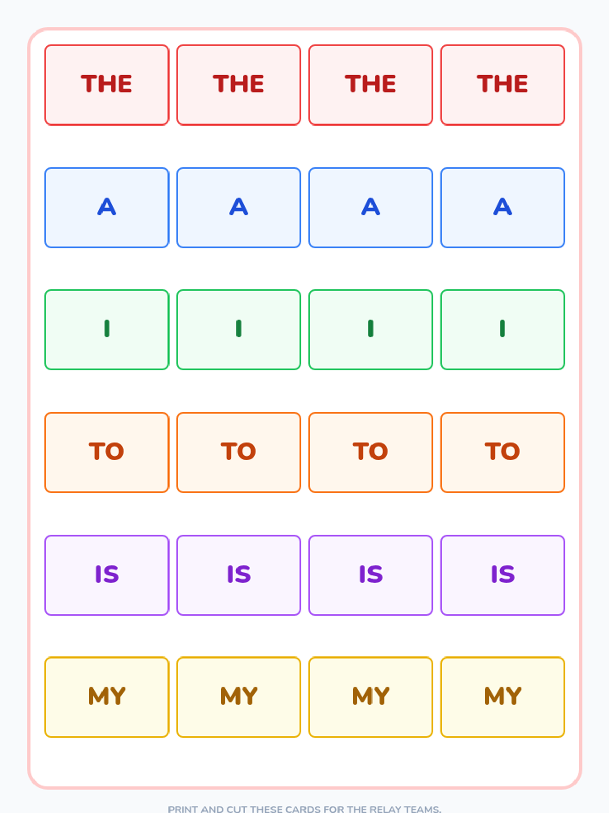 A multi-sensory Pre-K sequence focused on visual recognition of high-frequency irregular words through tactile, gross motor, and play-based activities. Students interact with words like 'the', 'a', 'I', and 'to' using sand, dough, and movement to build early reading foundations.
