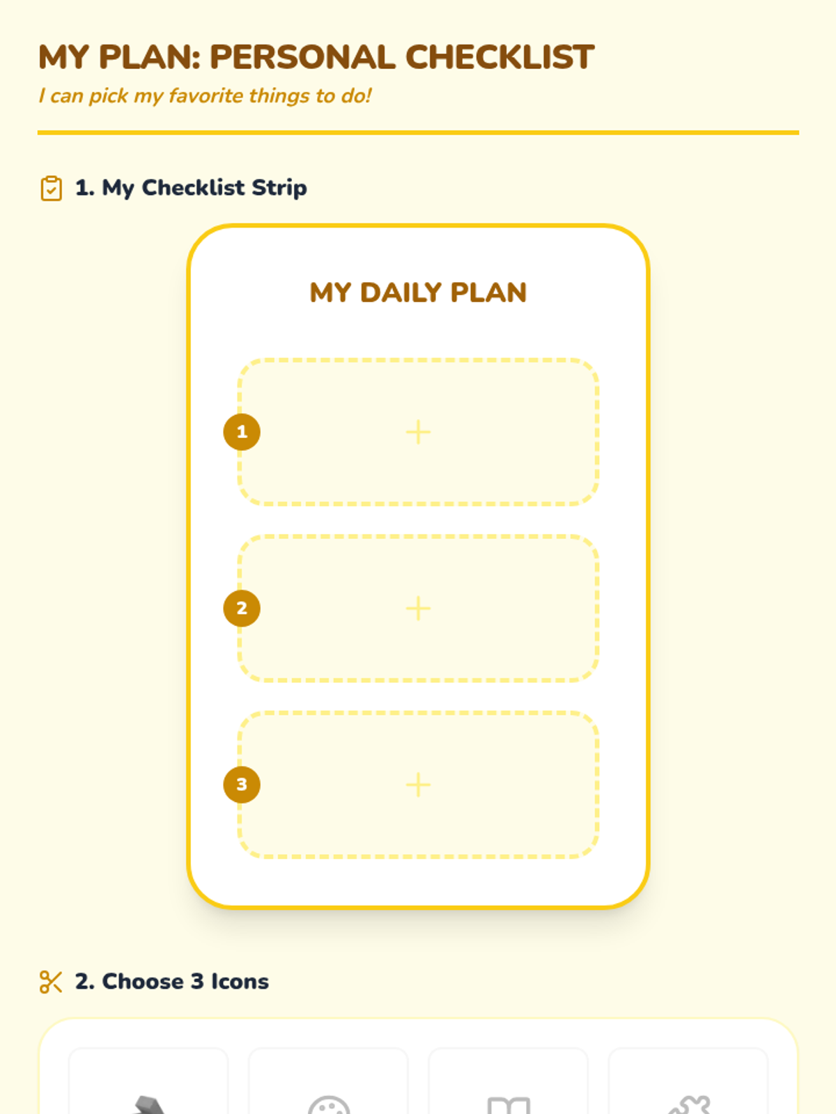 A foundational sequence for Pre-K students to develop working memory skills using visual supports. Students move from simple object-to-picture matching to using multi-step visual schedules and personal checklists.