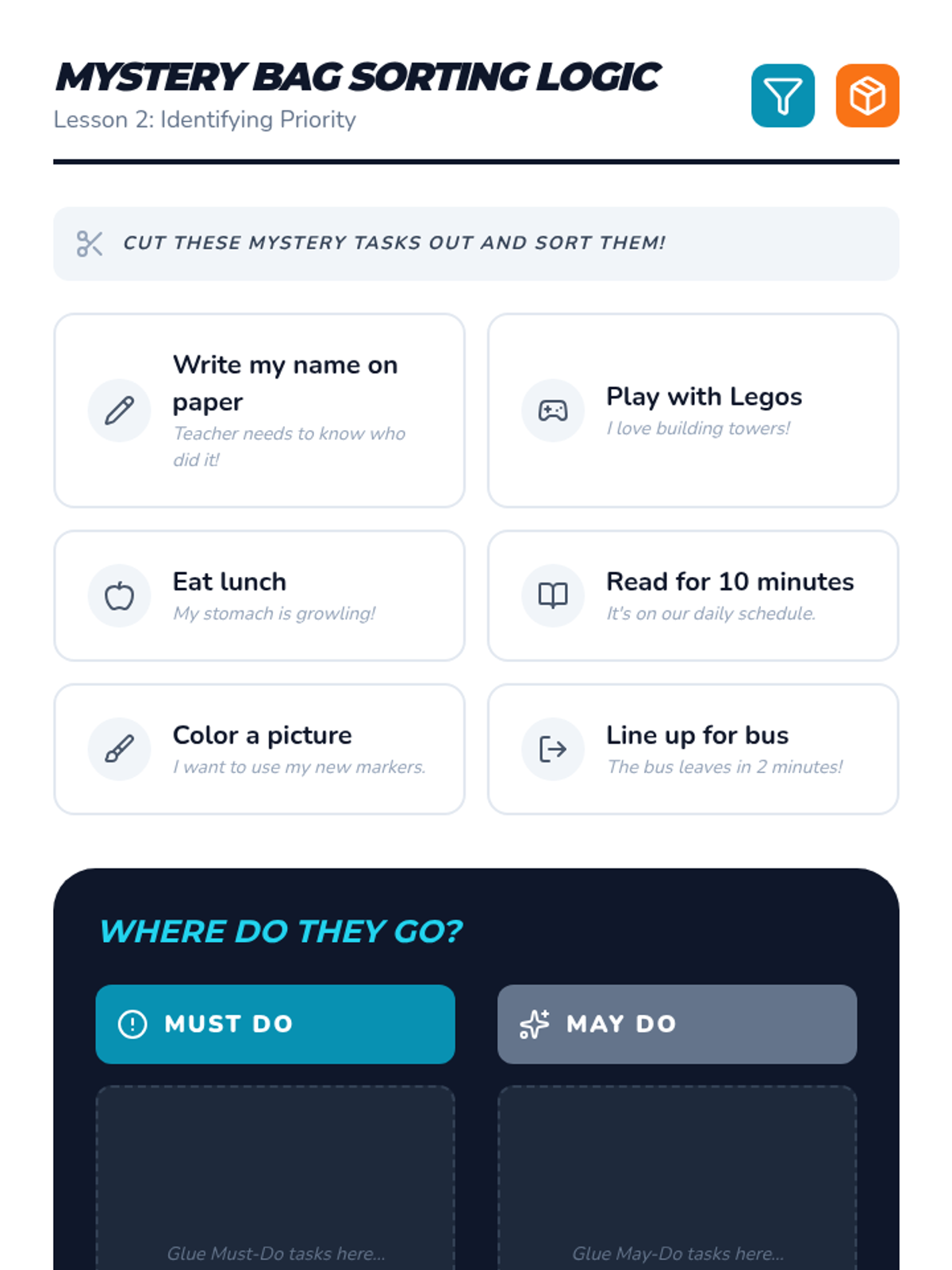 A 5-lesson sequence for 3rd-grade students in special education focused on externalizing tasks, categorizing them by priority, and creating visual systems for self-management.