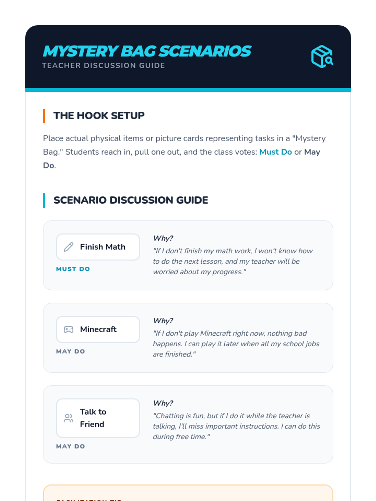 A 5-lesson sequence designed for 3rd-grade students to transition from general problem-solving to self-advocacy. Students learn to distinguish between complaining and advocating, identify appropriate sources of help, draft personal advocacy scripts, and create a physical 'Help Menu' tool for daily use.