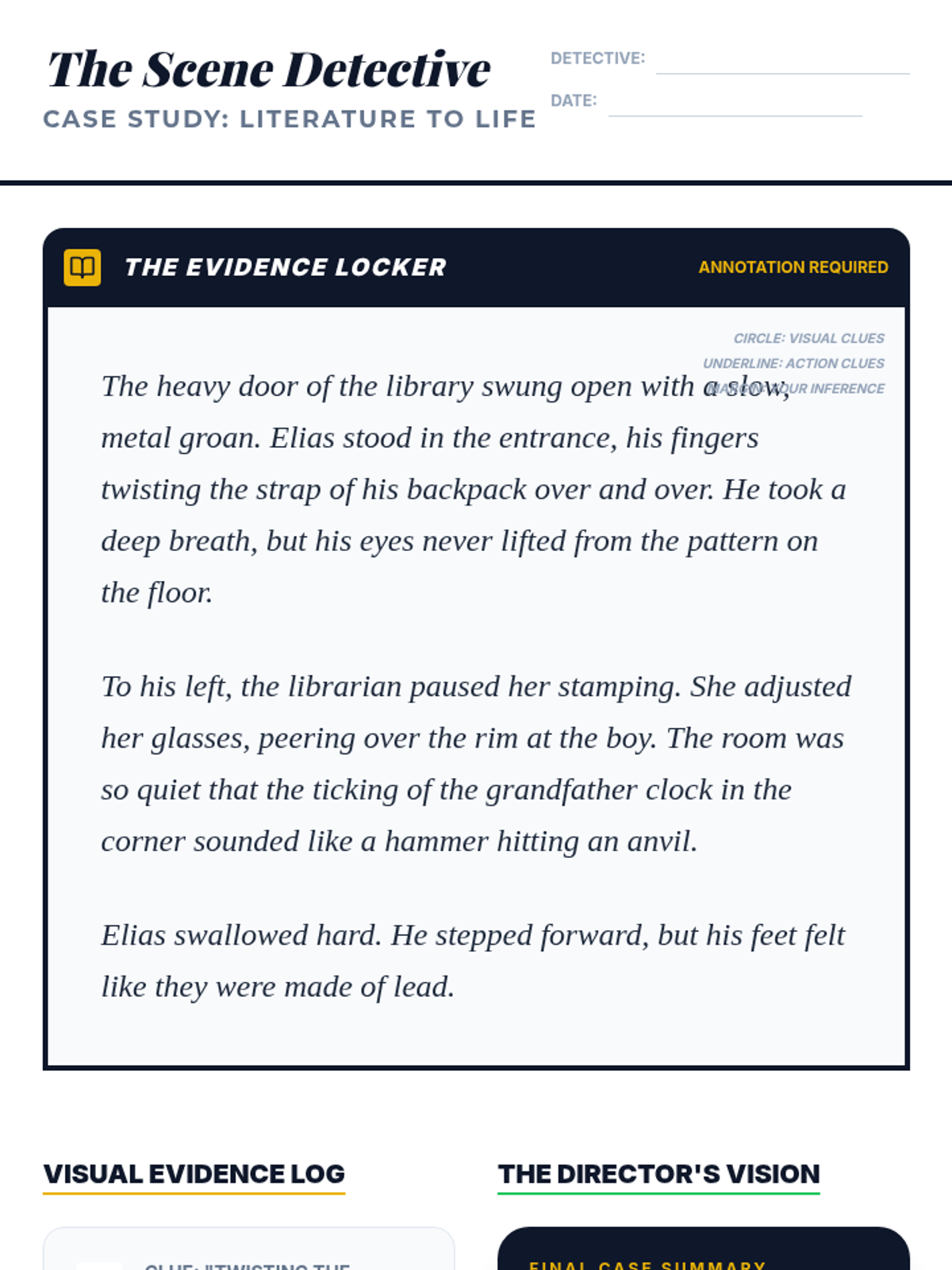 This sequence helps 9th-grade students who struggle with reading fluency build inference skills by first mastering visual analysis in films and images before transitioning those cognitive strategies to written text.