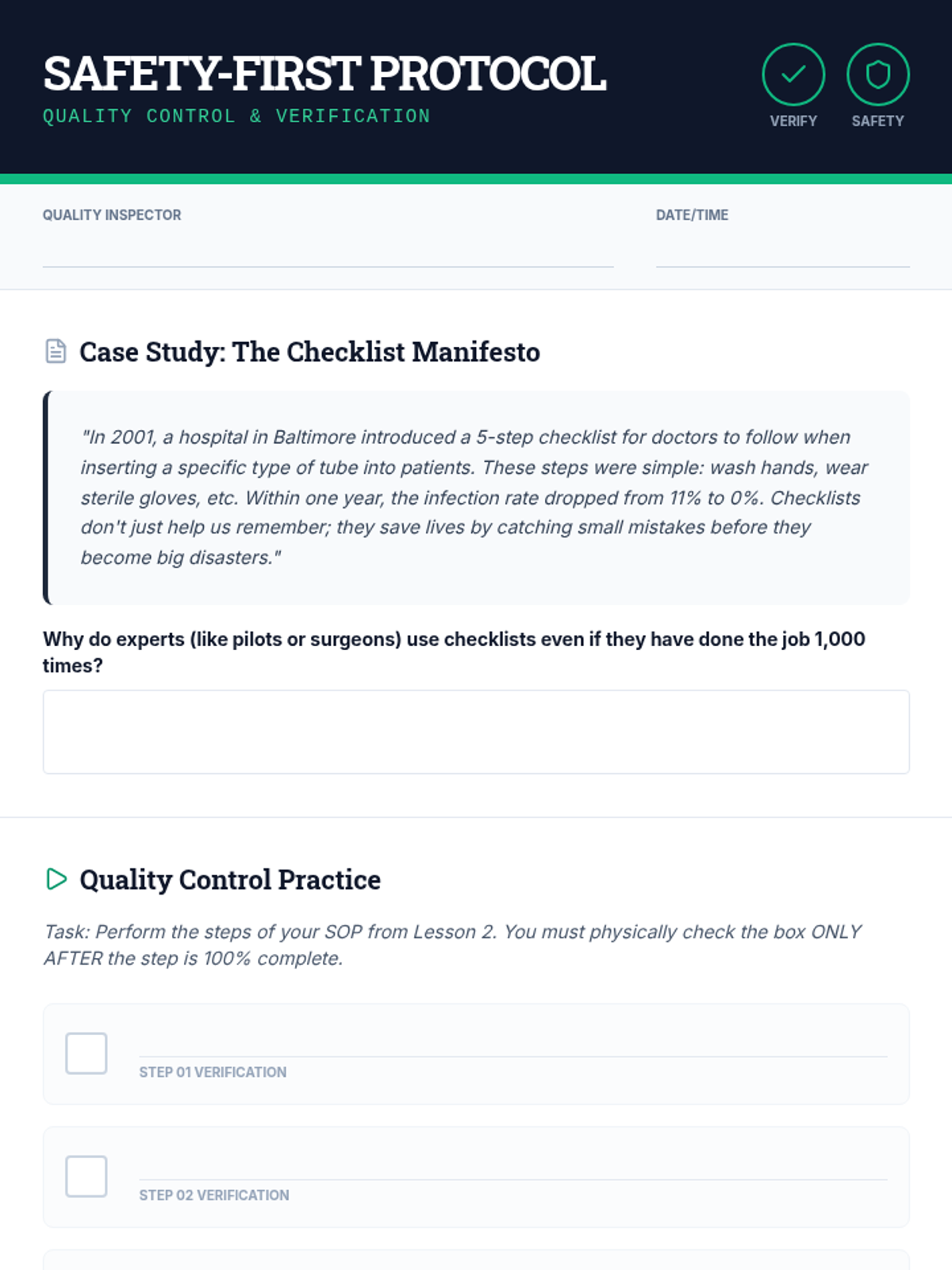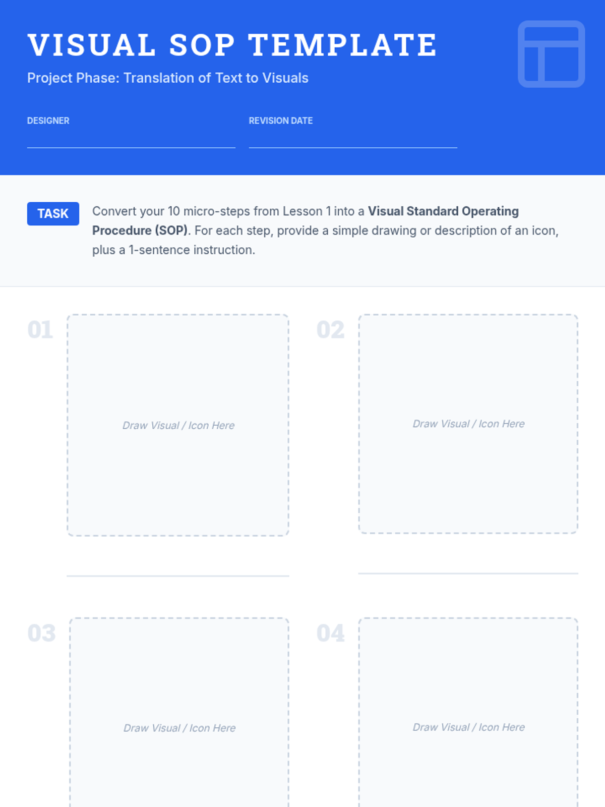 This sequence prepares 12th-grade students for vocational independence by teaching them to deconstruct complex tasks into visual Standard Operating Procedures (SOPs). Students will progress from basic task analysis to managing timed workflows and peer-reviewing instructional clarity, mirroring professional industry standards.