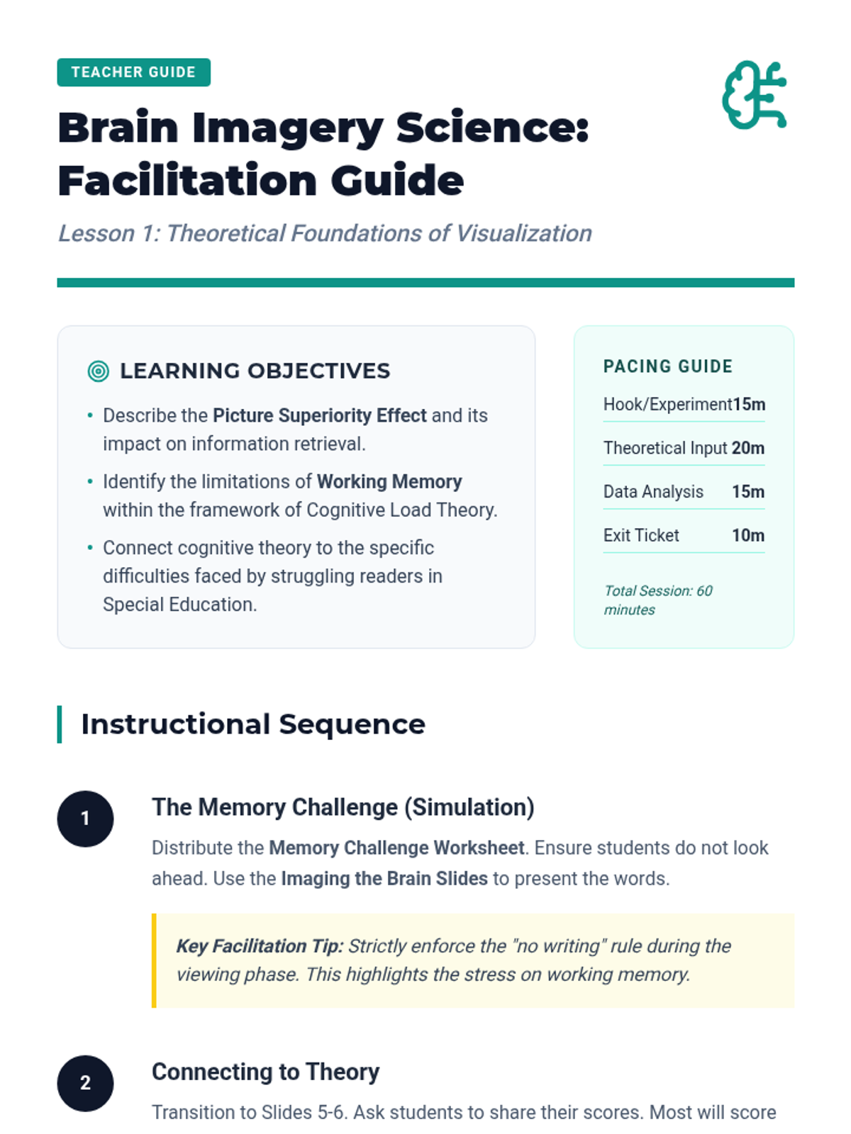 This sequence grounds undergraduate students in the cognitive science behind visualization as a reading intervention. Students explore Dual Coding Theory, cognitive load, and neurological barriers like aphantasia to understand the 'why' behind mental imagery in literacy.